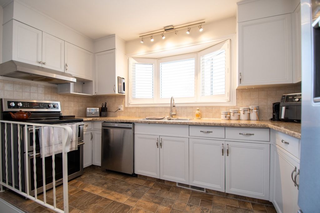 • Functional eat-in kitchen with newer high-end stainless steel appliances.