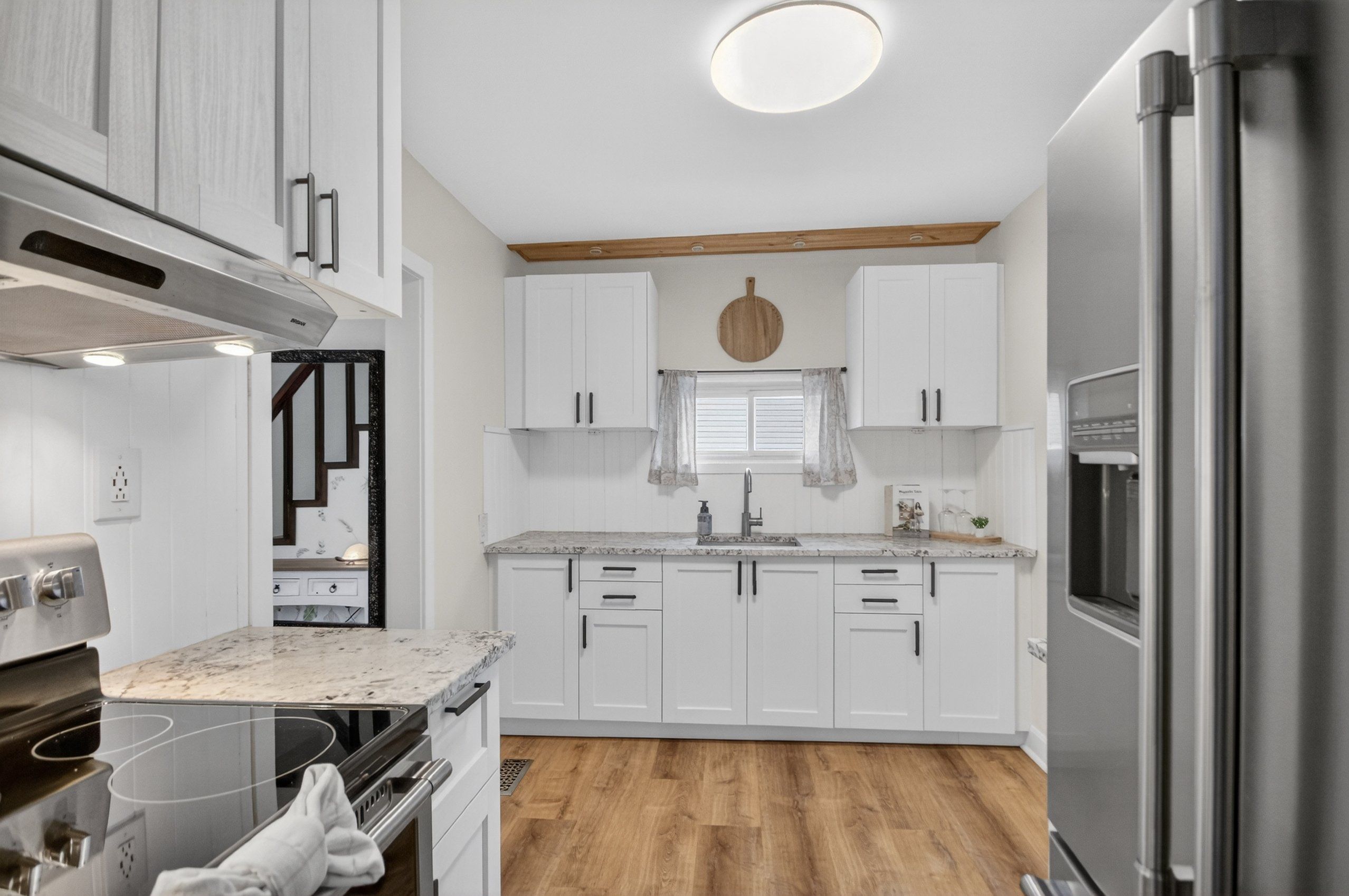 First time home buyers/investors/retirees! Seize the opportunity with this charming country home that offers a paved driveway, detached garage, approx. 1/4 acre lot & low cost ownership!! All within the city of ottawa!! Home features a spacious front entrance with main floor laundry - a rare find, modern dream kitchen (2023) with brazilian white galaxy granite countertops w sleek stainless appliances, expansive living room, dining room with sliding patio door (2021), primary bedroom & bathroom. Upstairs you'll find the second bedroom with an open concept den, ideal for a home office or third bedroom. The entire home has been freshly painted and boasts warm luxury vinyl oak floors throughout (2023), elegant light fixtures, new google nest thermostat, crisp modern trim, updated windows, roof (east side shingles 2020, west side 2021), new black eavestrophs on garage & house- but the magic doesn't stop there! Step outside to enjoy a private interlock patio with hot tub wire readily accessible, large gazebo, fully fenced in yard with storage shed, firepit, and the possibility for endless gardens. Home also offers natural gas bbq lines in front and back of home. Best of all- dazzling gemstone lights on the home & garage, controlled from your phone so you never have to put up christmas lights again! Driveway was resealed this year & can easily fit 6 vehicles! Convenience store across the street with lcbo! Don't miss your chance! 24 hour irrevocable on all offers as per form 244.