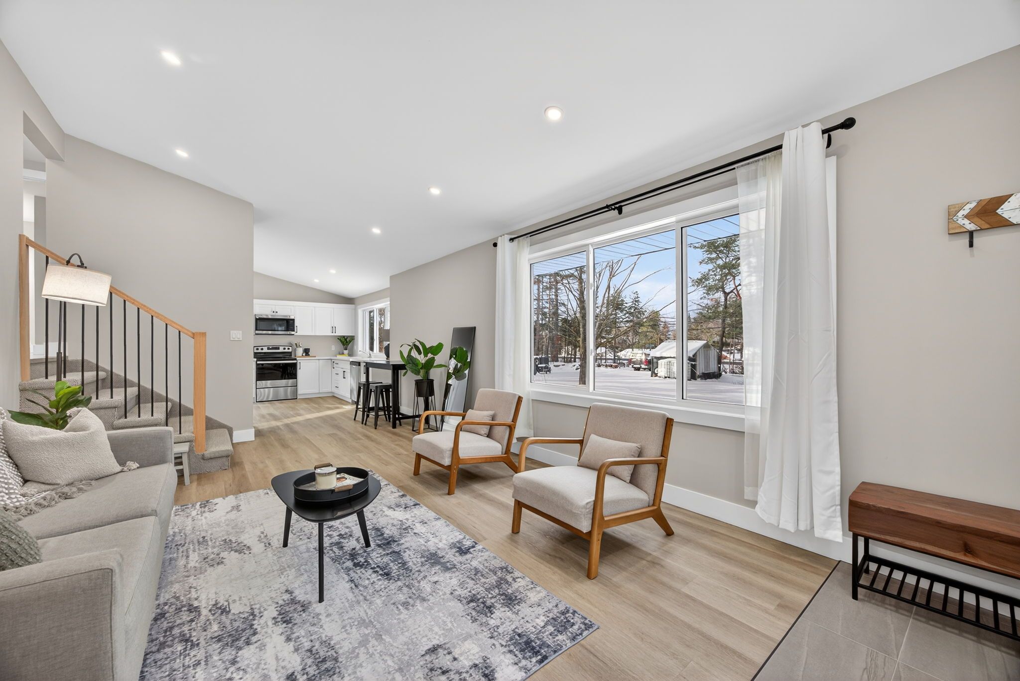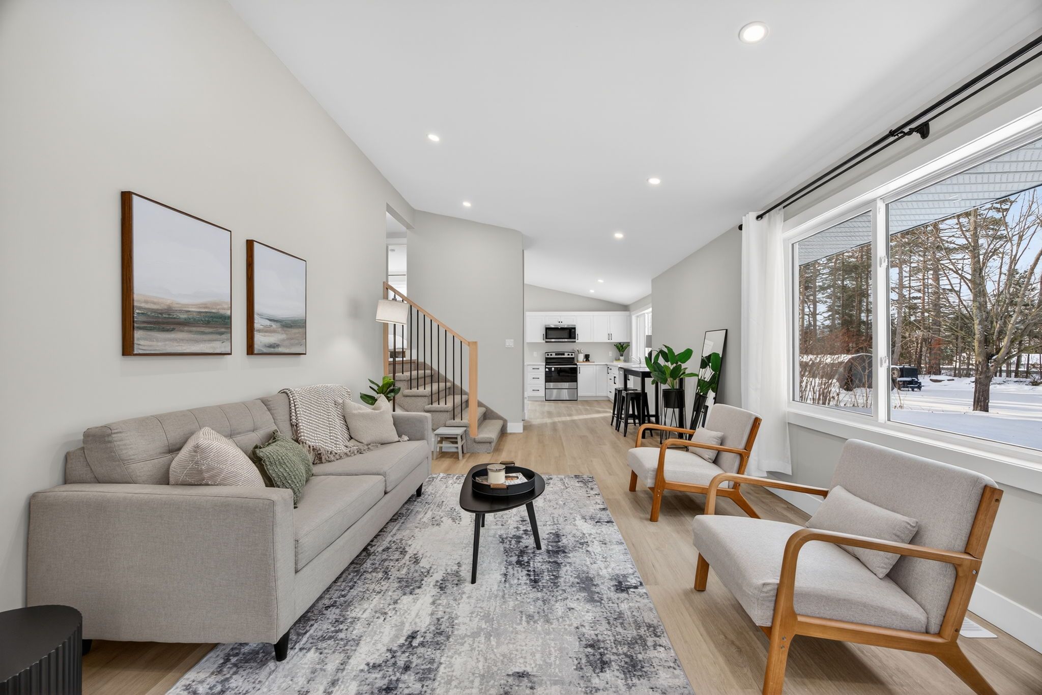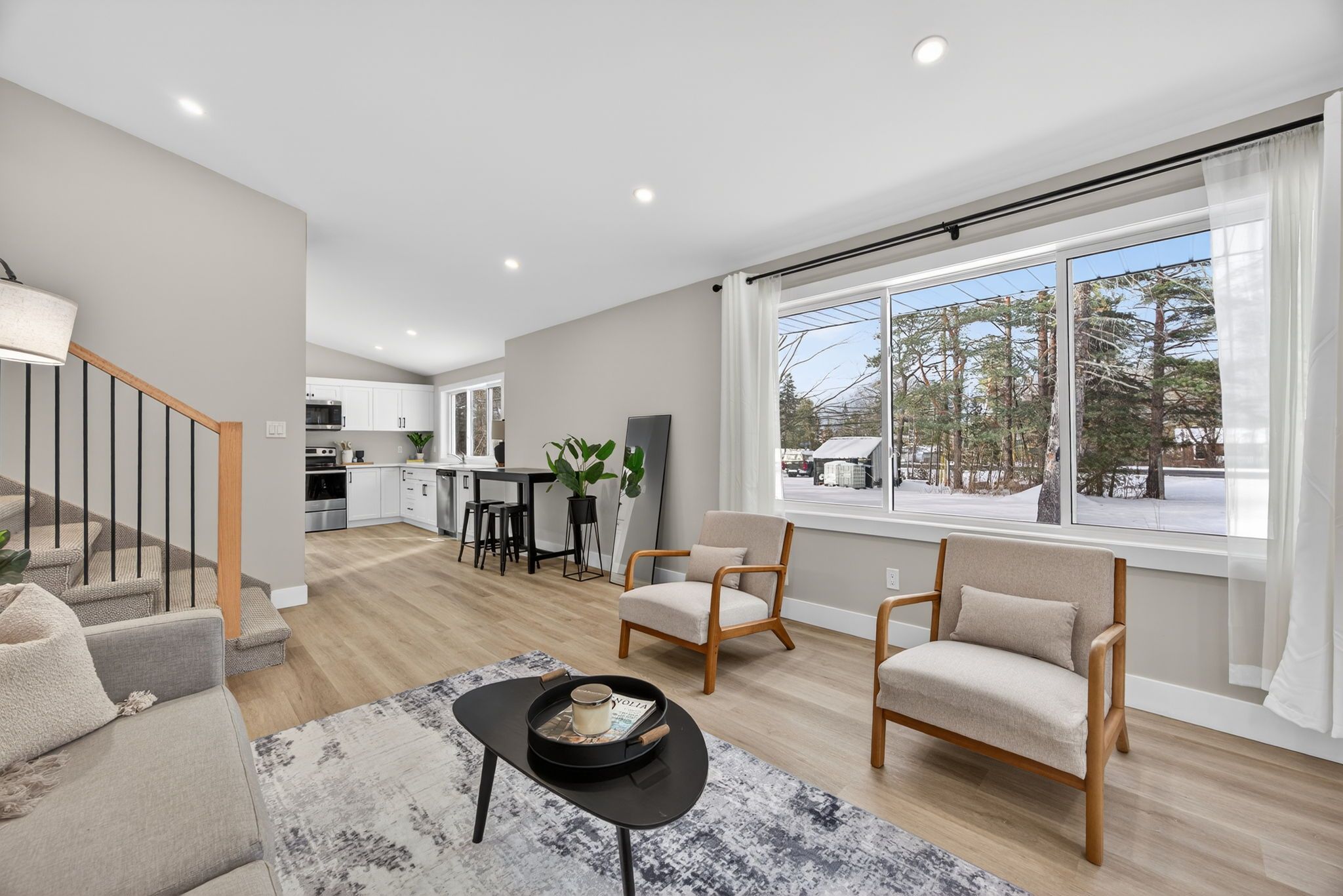• Spacious open-concept living area filled with natural light.