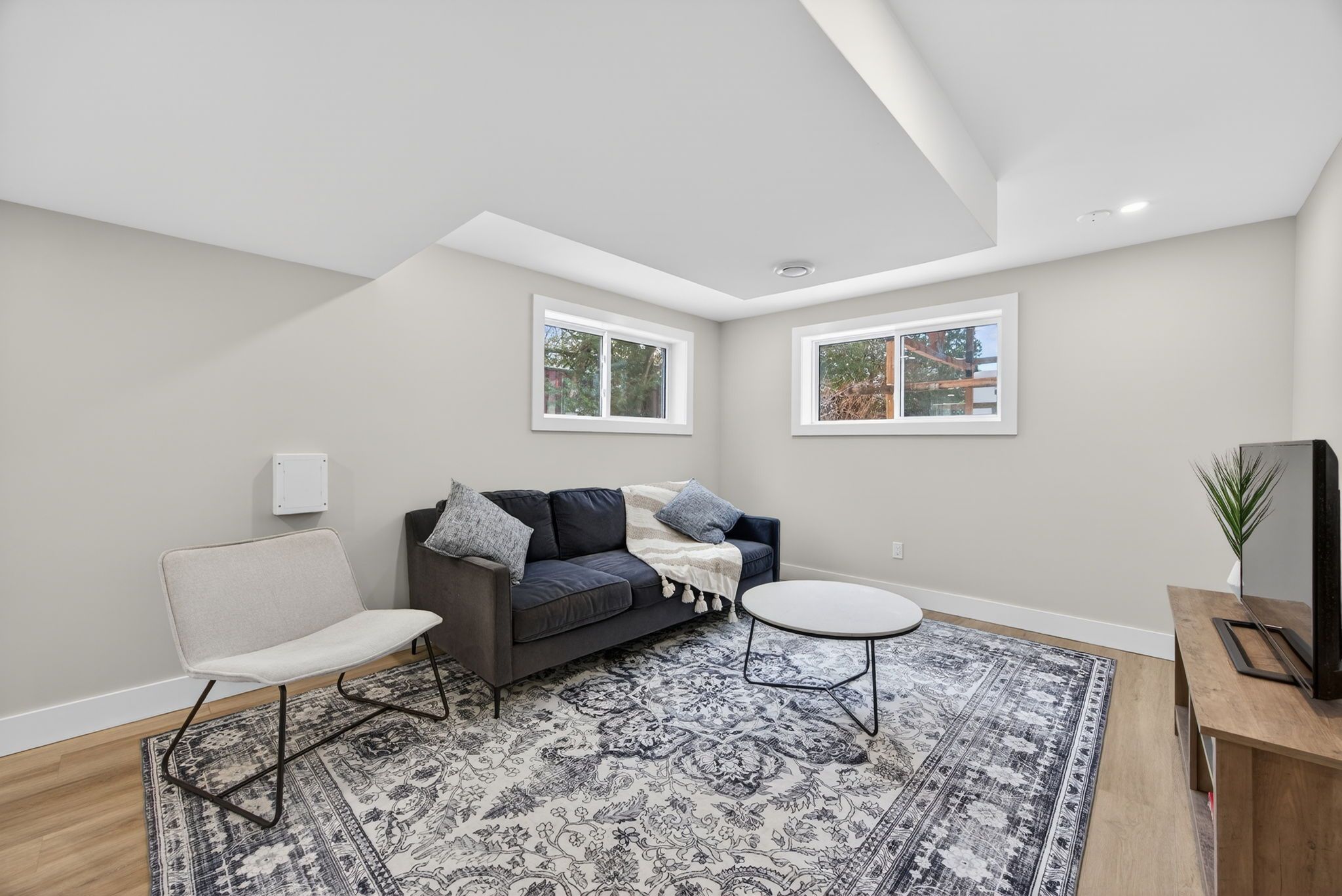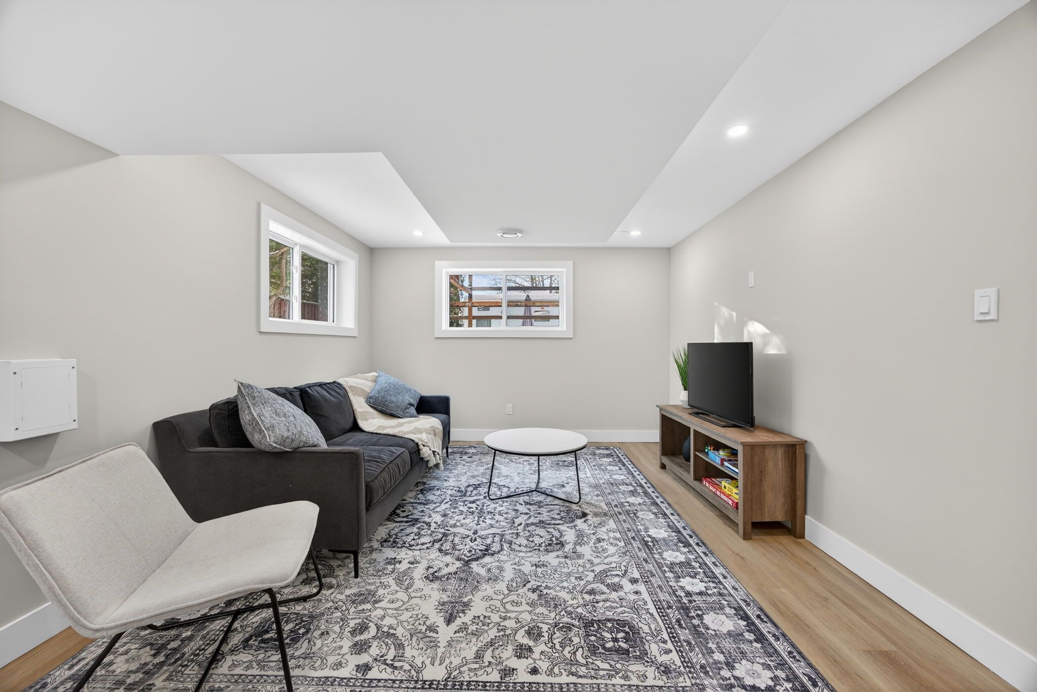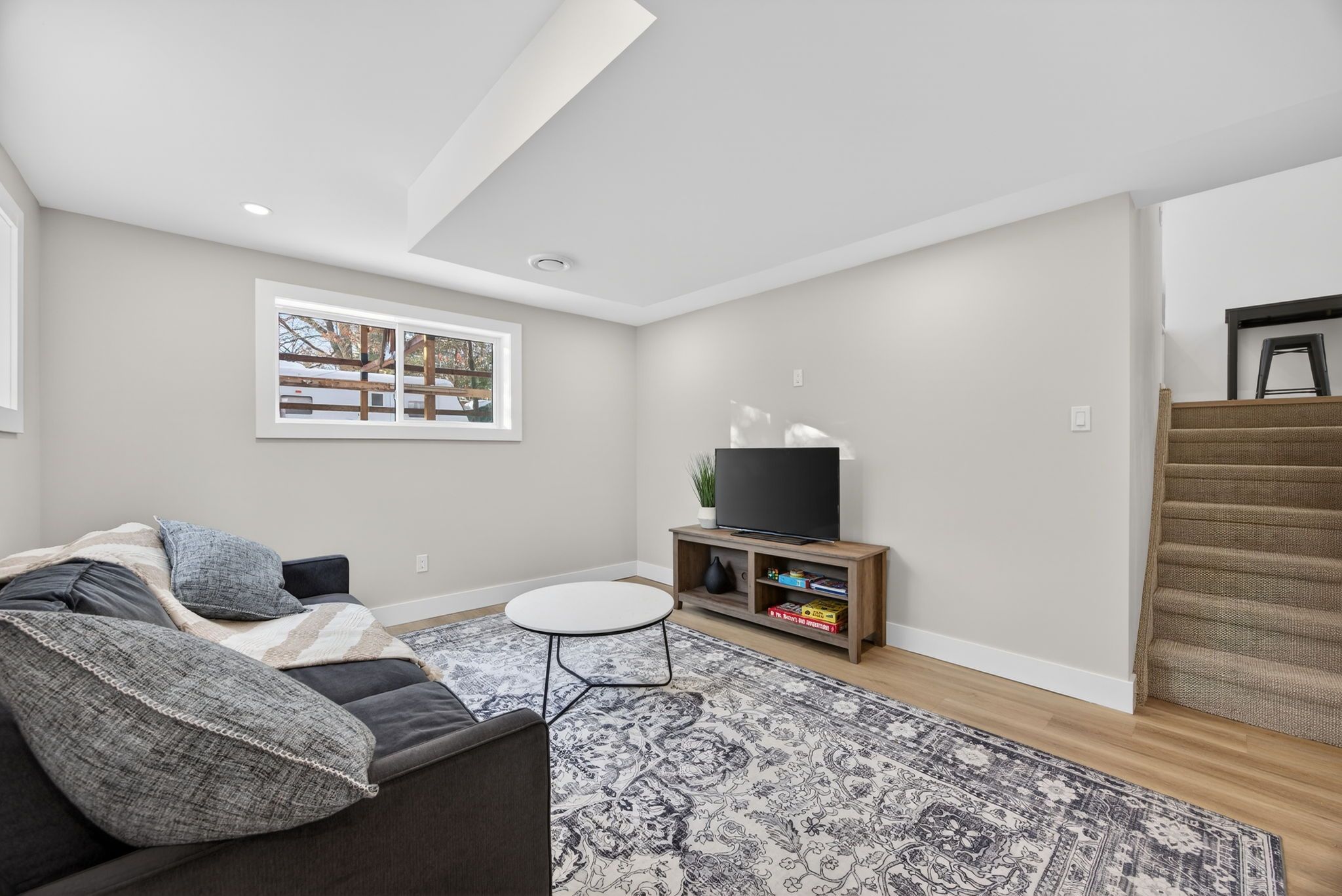 • Spacious open-concept living area filled with natural light.