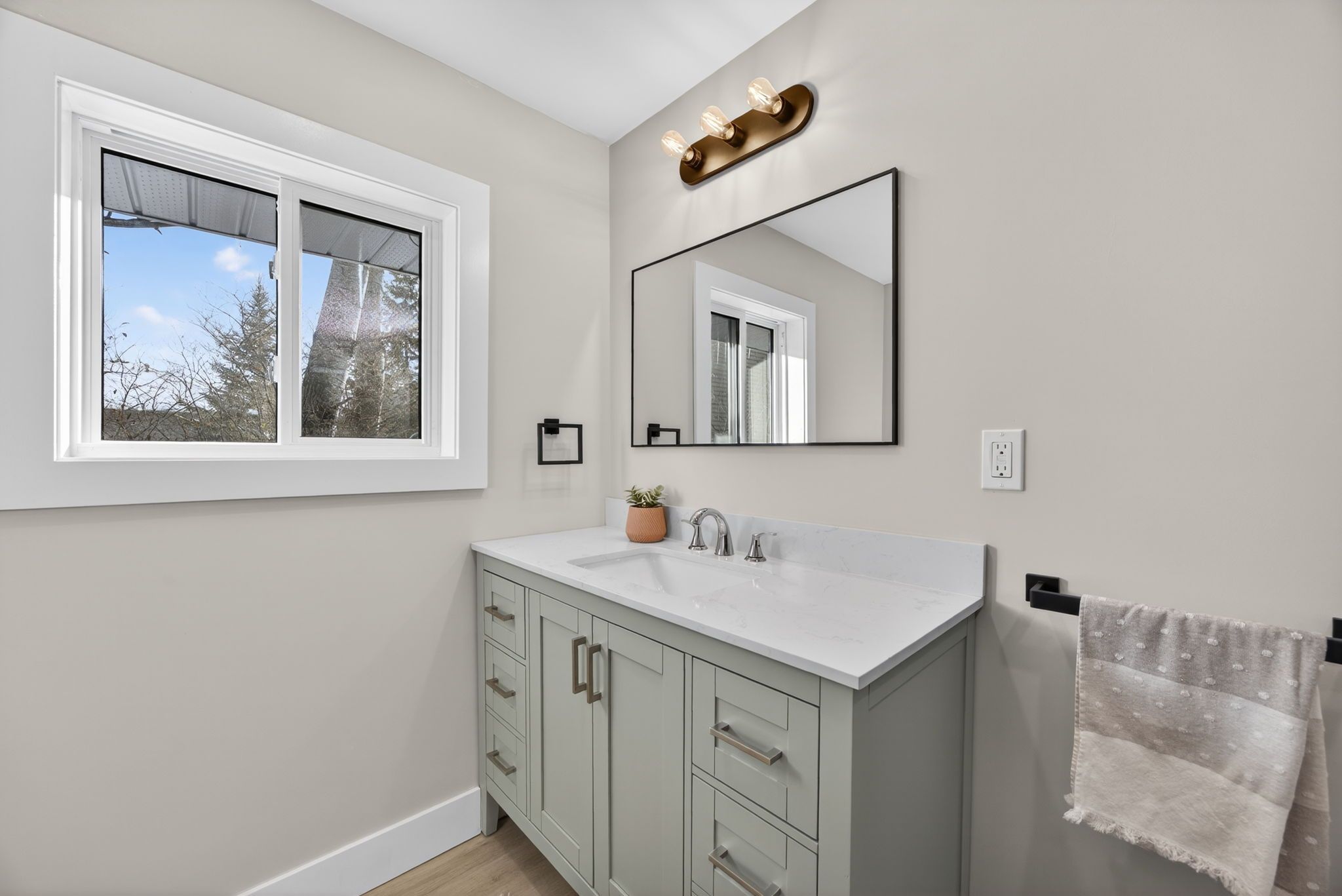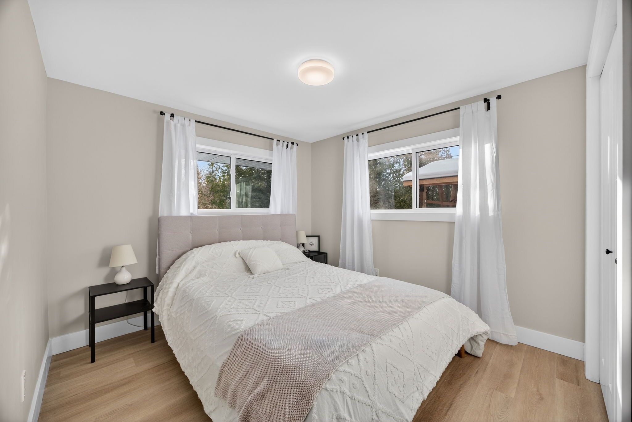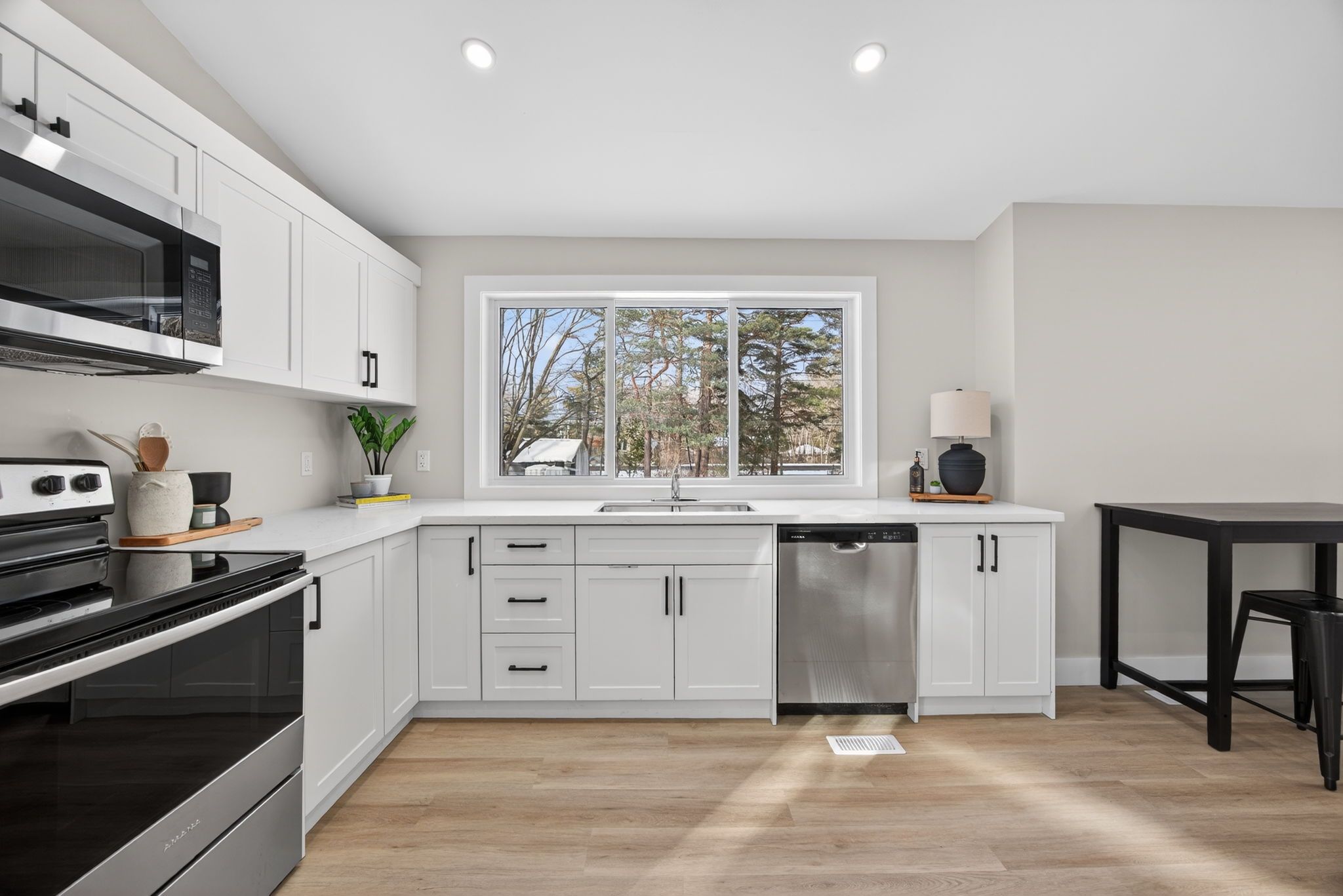 Welcome to 8717 beachwood road in the heart of wasaga beach - a fully renovated, move-in-ready gem that's been completely transformed from the studs up with no expense spared. This bright and modern home boasts all-new electrical service, brand-new plumbing, upgraded insulation, a new roof, new windows and doors, luxury vinyl plank flooring throughout, a stunning custom kitchen with quartz countertops and premium stainless-steel appliances, designer bathroom, and stylish led lighting inside and out. Offering three spacious bedrooms, one full bathroom, and an open-concept living area drenched in natural light, it's the perfect blend of contemporary comfort and laid-back beach vibe. Ideal as a year-round family home, a carefree weekend cottage, or a high-demand short-term rental chalet, its unbeatable location puts you just a 5-minute stroll from the sandy shores of wasaga beach and only a quick 15-minute drive to blue mountain village and the ski hills. Surrounded by trails, parks, shops, and restaurants, this turn-key property delivers four-season living at its finest - simply unpack and start enjoying the best of wasaga beach today!