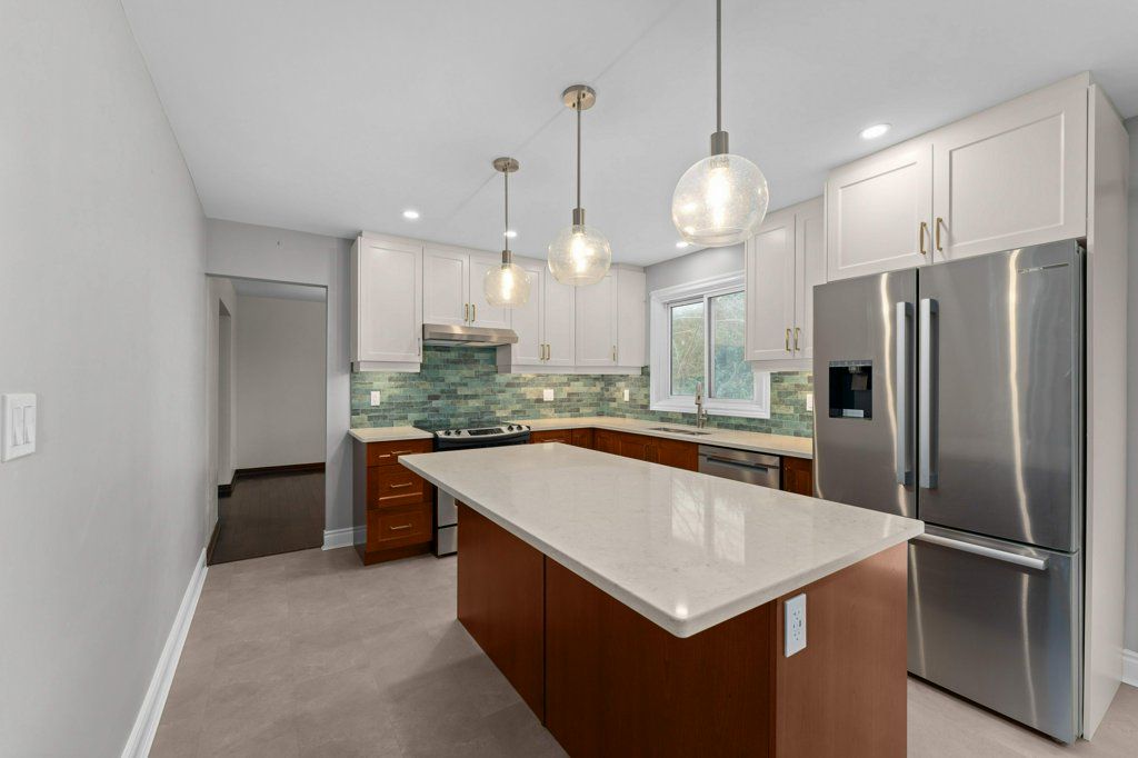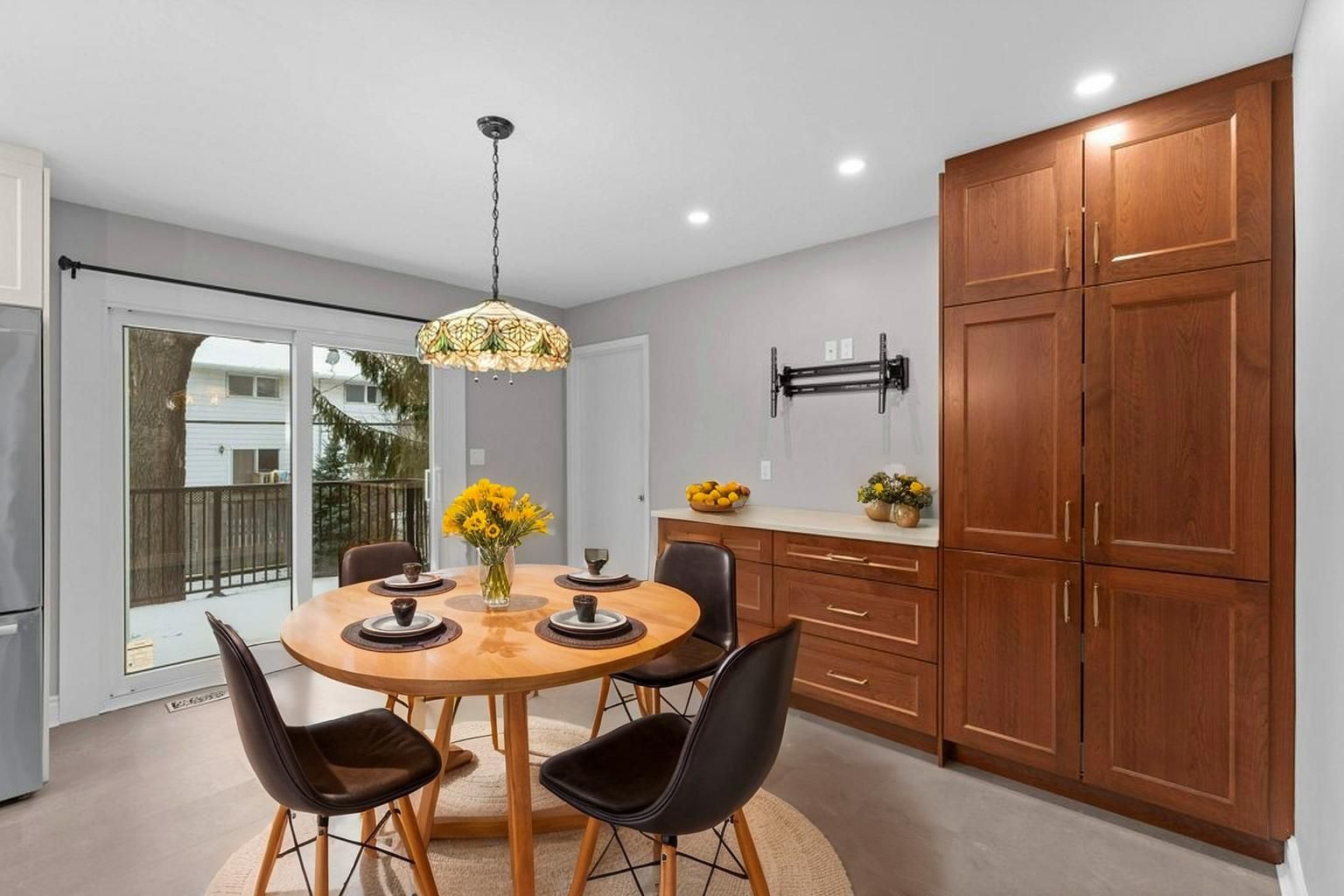 Welcome to 873 danbury road, located in kingston's west end where timeless charm meets modern comfort. This beautifully maintained family home welcomes you with a covered porch. Inside, the foyer offers a coat closet and a convenient main-level 2-piece bathroom. The warm and inviting living room features a stone-framed wood-burning fireplace and flows effortlessly into the spacious dining area - perfect for gatherings and entertaining. The heart of the home is the remodeled (2024) eat-in kitchen, showcasing quartz countertops, a stylish tiled backsplash, a large island, pull-outs drawers throughout for optimal storage and function. Enjoy under-cabinet lighting, pot lights and a pantry area with additional counter space and pull-outs - a chef's delight! The kitchen looks unto a fully fenced backyard which features a new (2025) pressure-treated wood deck with sleek aluminum railing. Convenience is key with a side entrance and entry from the garage into a spacious mudroom, providing plenty of space for everyday essentials. The upper-level features four bedrooms with gleaming hardwood floors and a 4-piece bathroom with dual access enhances convenience from the spacious primary bedroom with its large walk-in closet. The fully finished basement adds even more living space, complete with a wood-burning fireplace enclosed in brick, a den perfect for a home office or playroom, laundry room and a cold storage room for added functionality. Blending style, comfort, and everyday practicality, 873 danbury road is move-in ready and waiting for your family to call it home! Home inspection available.