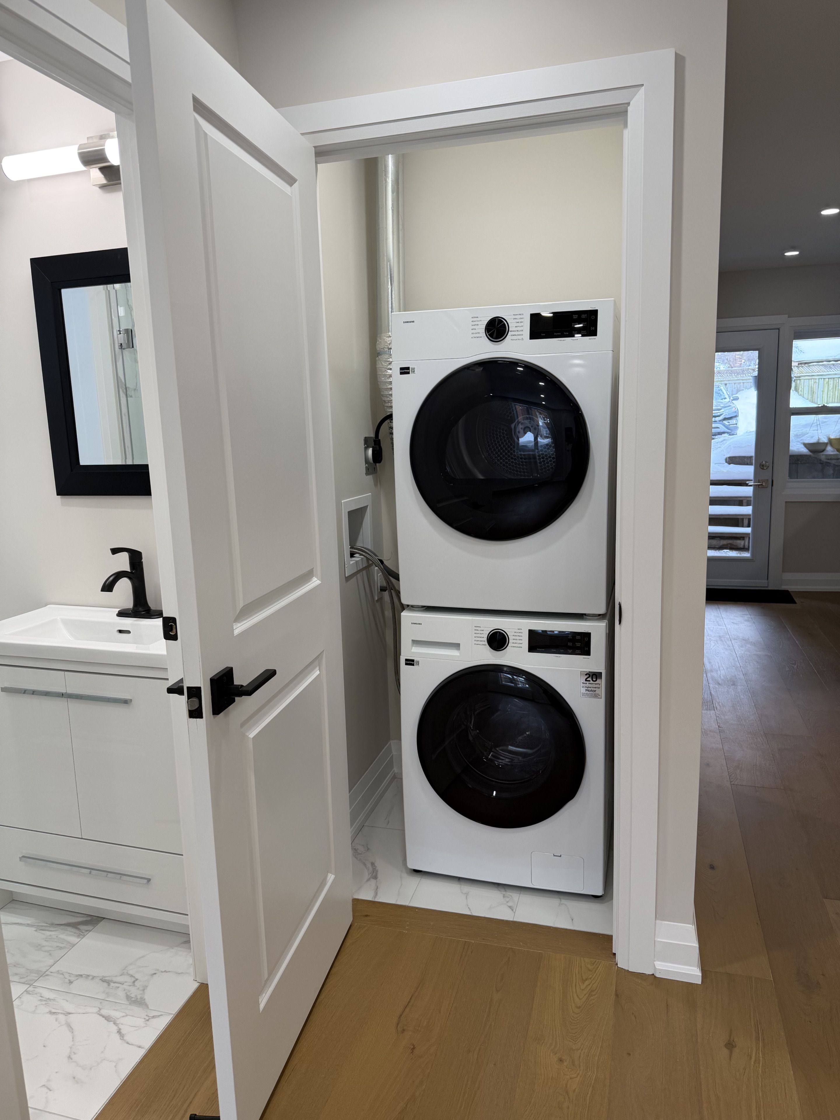 Welcome to this fully renovated, bright and modern 1 bedroom, 1 bathroom suite with parking in the heart of leaside/east york, one of toronto's most sought-after neighbourhoods. Thoughtfully designed with style and comfort in mind, this unit features a spacious open-concept layout, abundant natural light, and high-end finishes throughout. Enjoy a sleek new kitchen complete with stainless steel appliances, including a brand-new fridge, dishwasher, microwave, oven, washer, and dryer, along with ample storage. The well-appointed living space is perfect for professionals or couples seeking both functionality and contemporary design. Located just steps from transit, grocery stores, shops, cafés, and restaurants, this suite offers the ideal blend of urban convenience and quiet residential charm that leaside is known for. A rare opportunity to enjoy comfort, accessibility, and modern living in one of toronto's most vibrant communities.