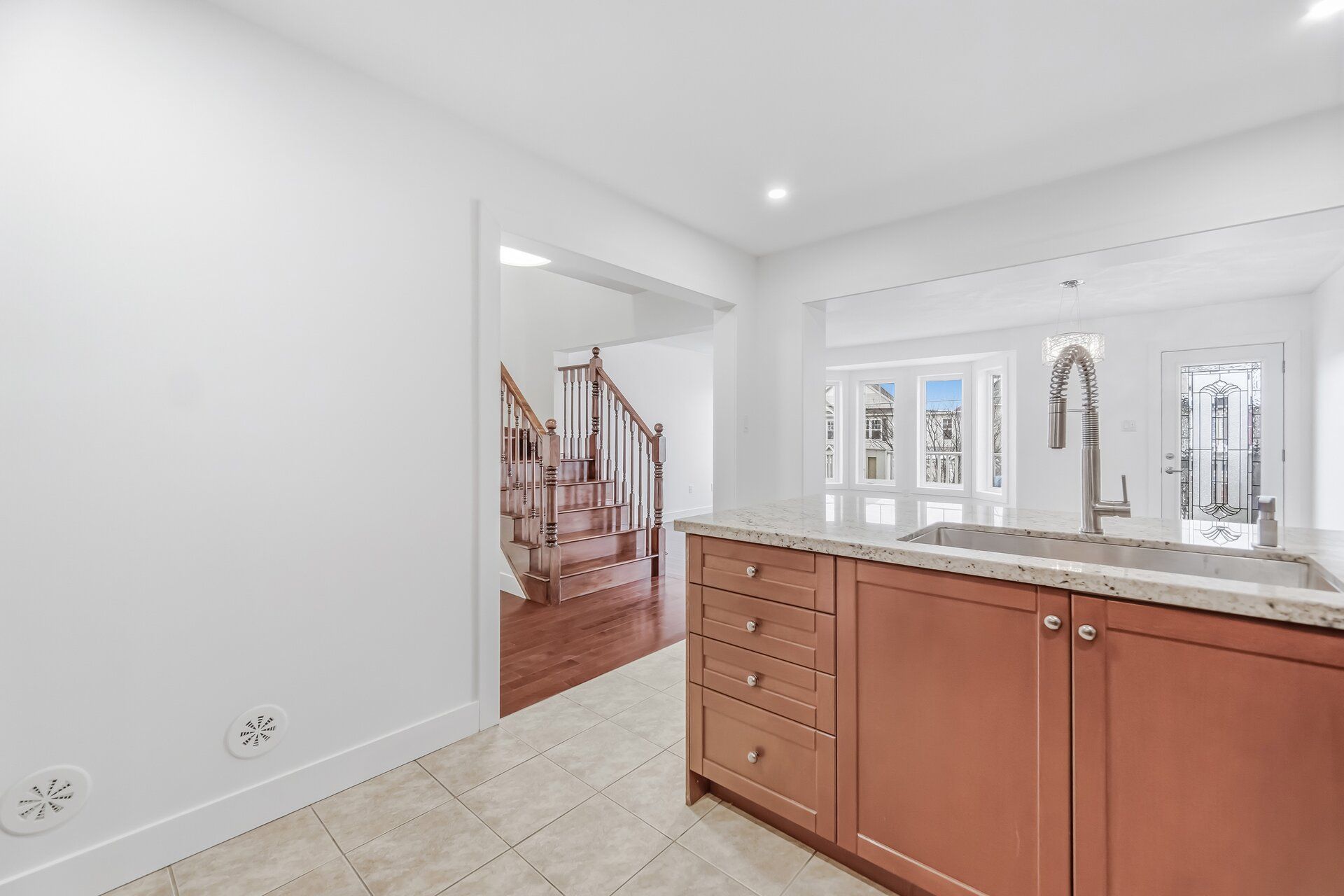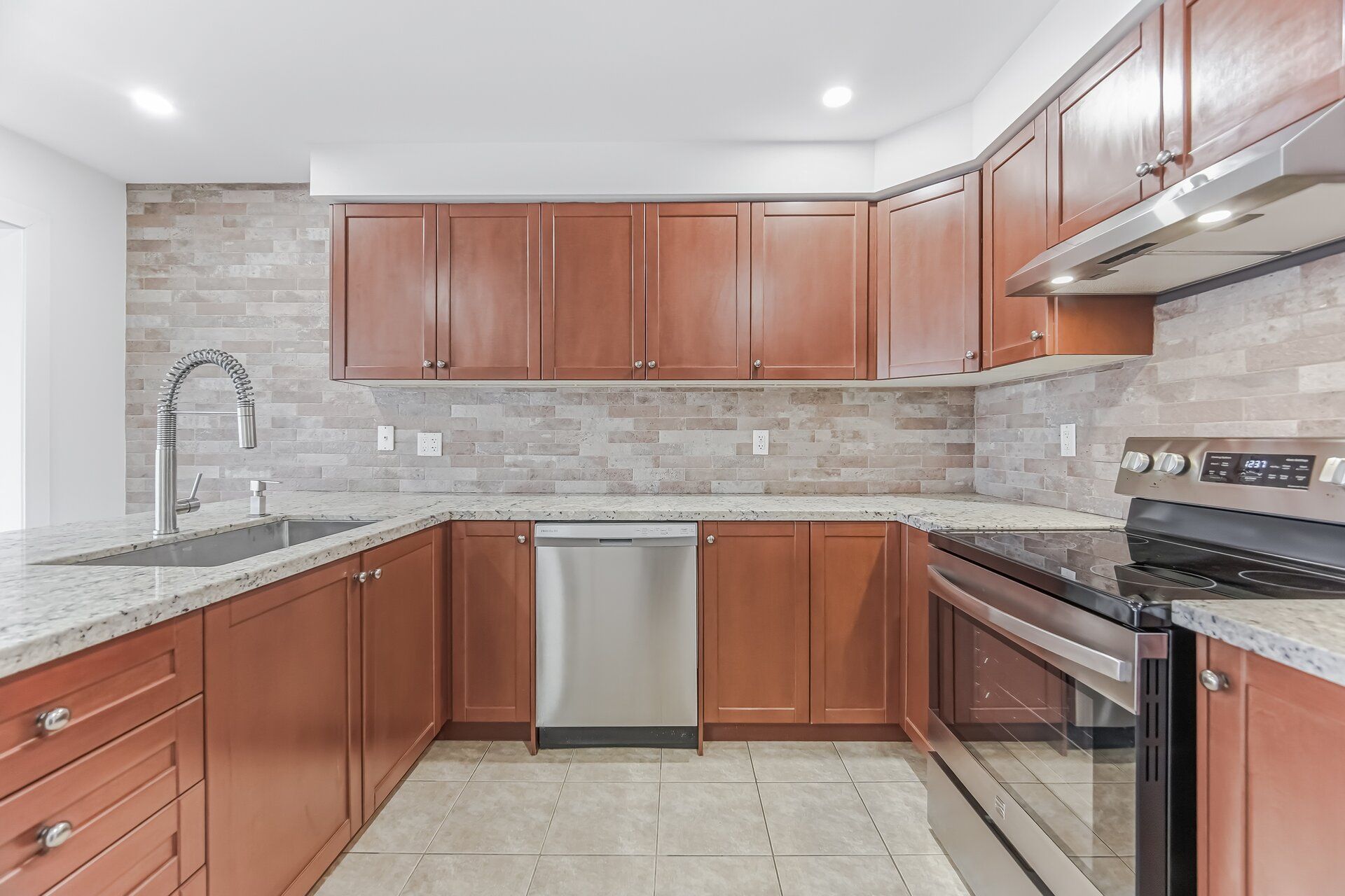 • Spacious eat-in kitchen with granite counter and new stainless steel appliances.