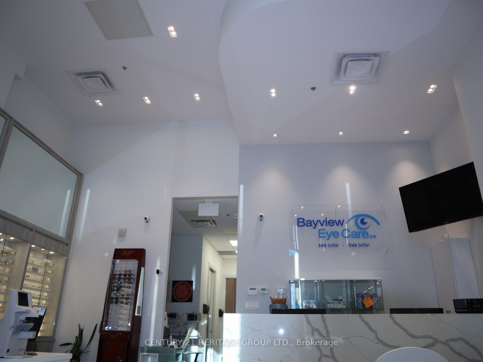 Street view commercial property on busy bayview ave intersection in high demand richmond hill. Total size 950 sq. Ft. With high ceilings. Units can be divided into two smaller units: 390 sq ft and 560 sq ft. Each unit has its own hvac and water. Over $150,000 in upgrades from original build. Currently used as an optometrist clinic. Convenient location on the ground floor of a residential condo. Easy access to hwy 7 and 407. Parking behind building, in underground garage, on street and across the street in large plaza. Perfect for a professional office or any retail use. Must see!