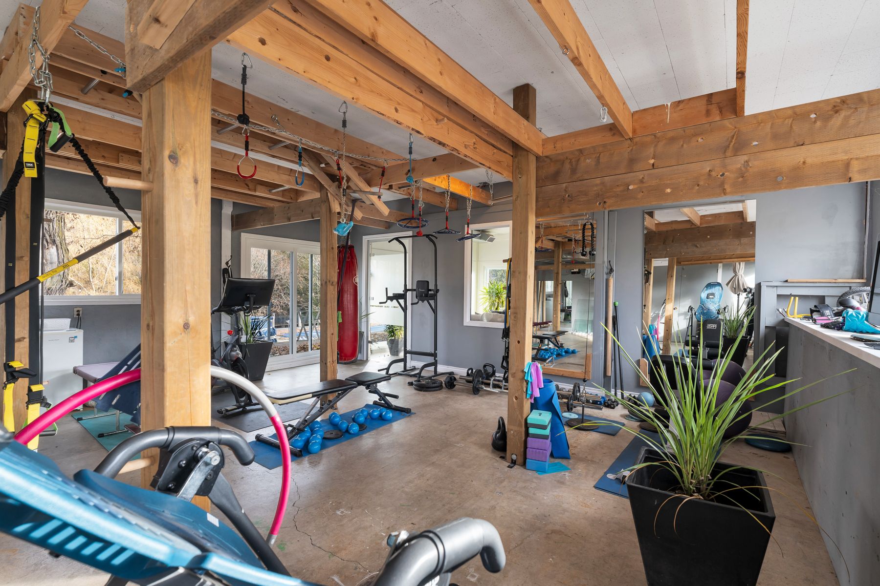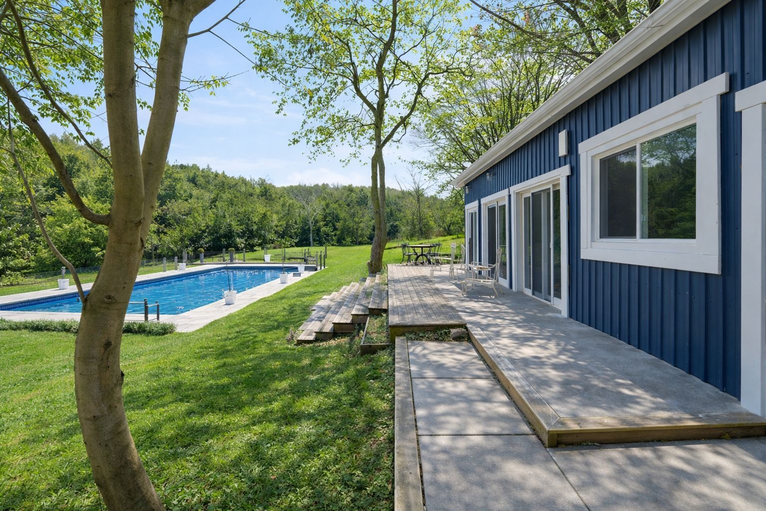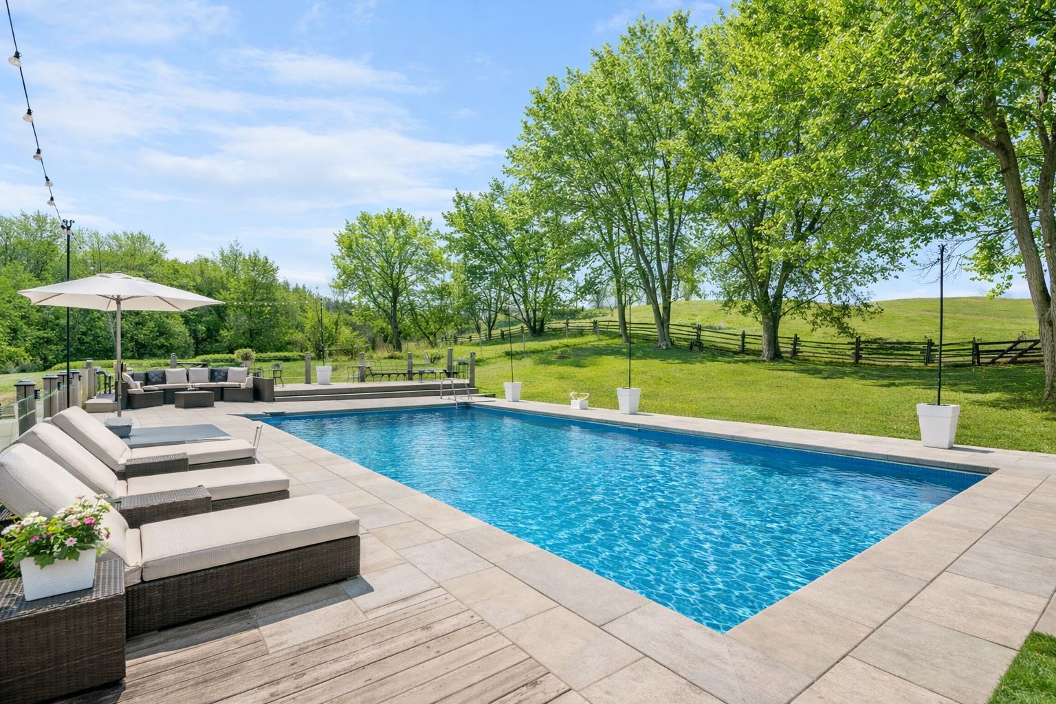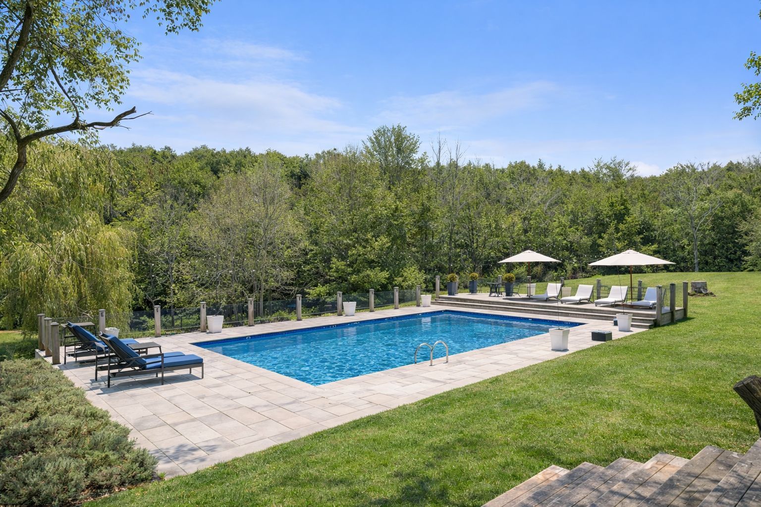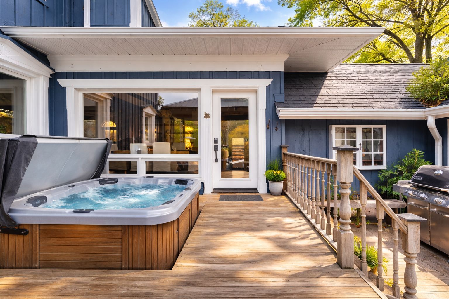 • Outdoor cedar deck with hot tub and saltwater pool for relaxation.