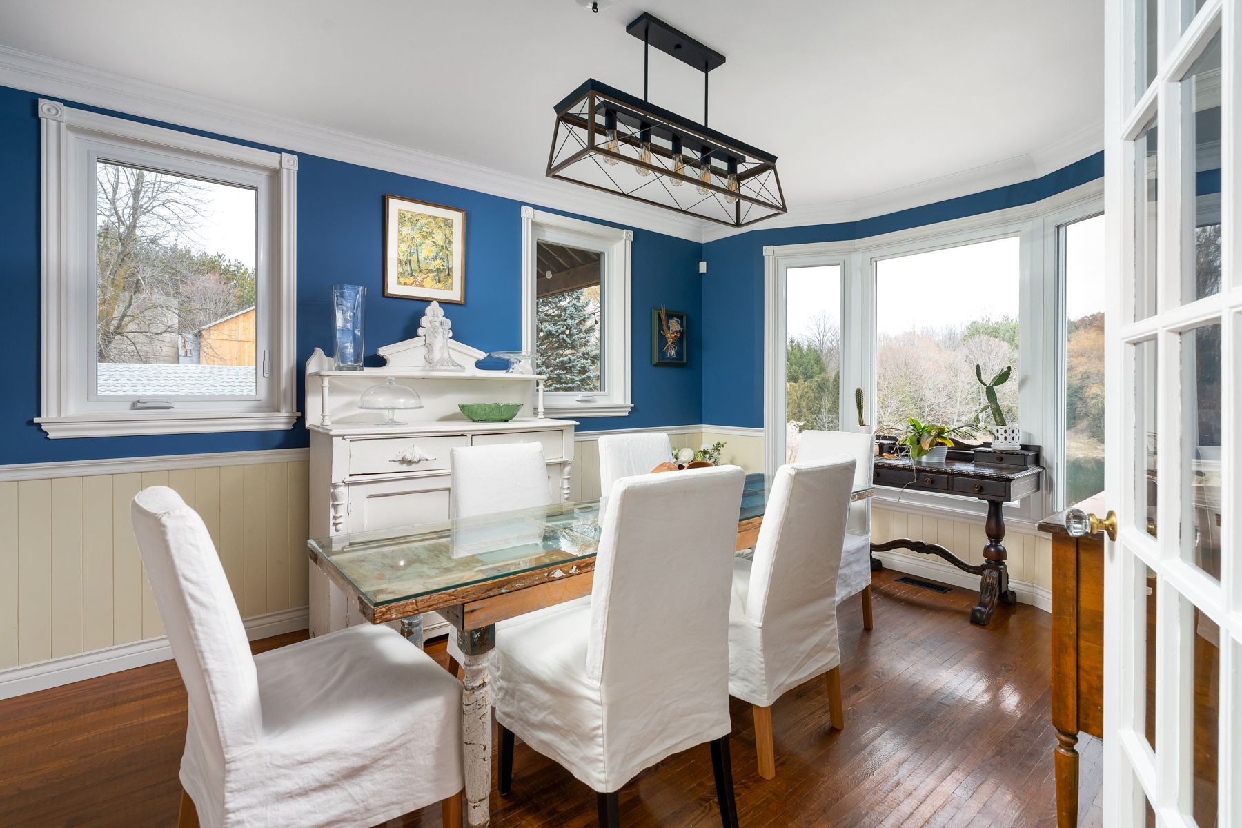 Tucked into the rolling hills of mulmur, heaven-on-fifth feels like a storybook brought to life. This remarkable nine-bedroom victorian farmhouse has been thoughtfully reimagined into a refined modern country retreat, blending timeless charm with elevated design. Whether you're seeking a private family escape, an income-generating opportunity, or a forever home, this property offers exceptional versatility. A winding drive carries you through mature forest, across a gentle river and past a tranquil private pond, revealing a serene setting surrounded by annabelle hydrangeas and towering trees. Inside, warm pine floors, exposed beams, and expansive open-concept living spaces create an inviting atmosphere ideal for both everyday living and entertaining. Enjoy formal living and dining rooms, a beautifully updated kitchen, a large family room, and an impressive games room with a built-in wet bar. The second level features a peaceful primary suite with a walk-in closet, spa-inspired open shower, and private water closet, alongside three additional bedrooms and a four-piece bath. The third floor offers a secondary suite with ensuite plus a flexible bedroom or office. The lower level completes the home with three additional bedrooms. Outdoors, a cedar deck with a built-in hot tub and multiple dining areas overlooks a new saltwater pool, creating a true resort-style experience. With year-round amenities including a games room and gym, this turnkey property is equally suited as a recreational retreat, full-time residence, or destination investment. Ideally located just 80 minutes from toronto, minutes to mansfield ski club, and close to creemore, mad river golf club, and collingwood, heaven-on-fifth offers privacy without compromise. A truly one-of-a-kind opportunity to live, host, and unwind.