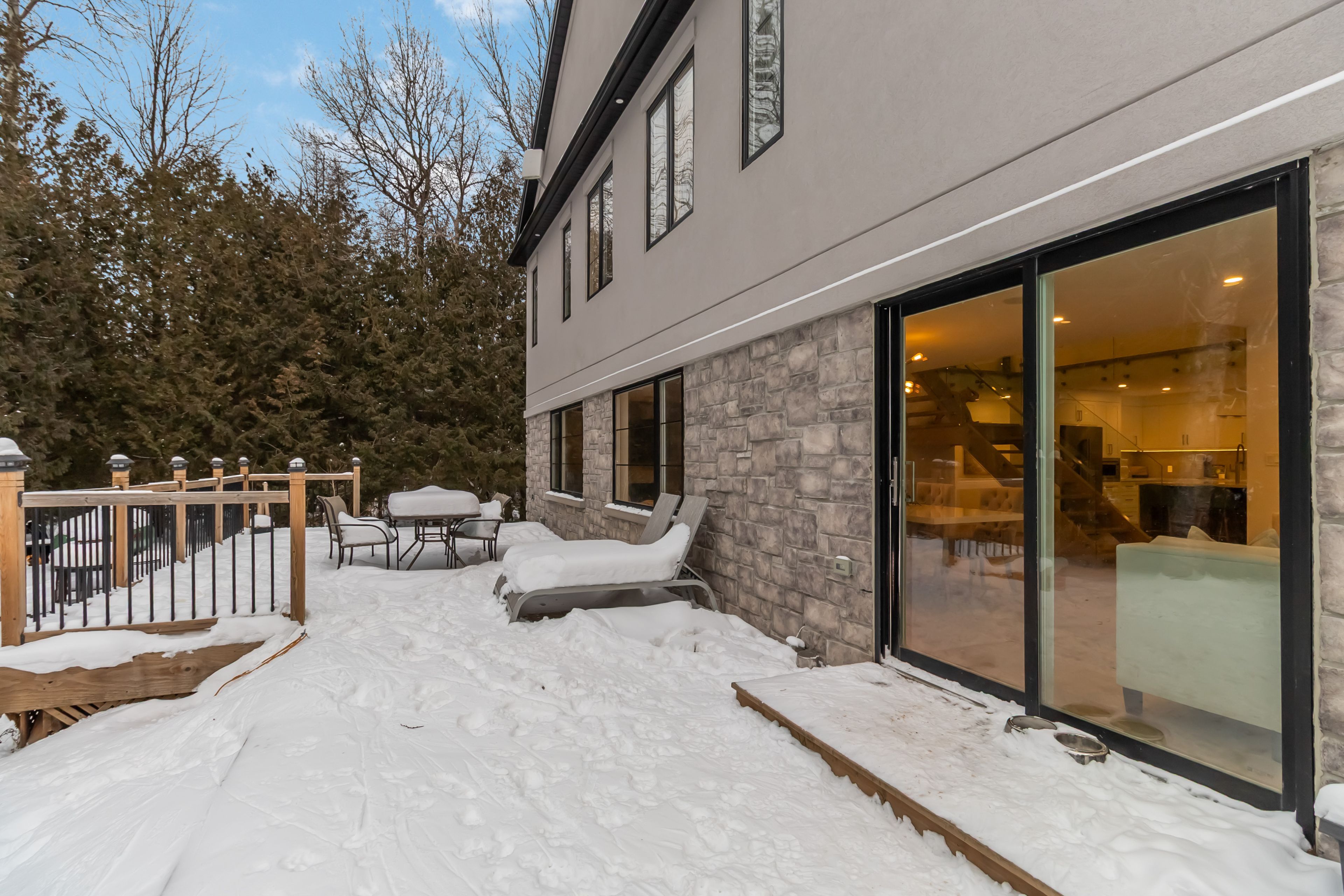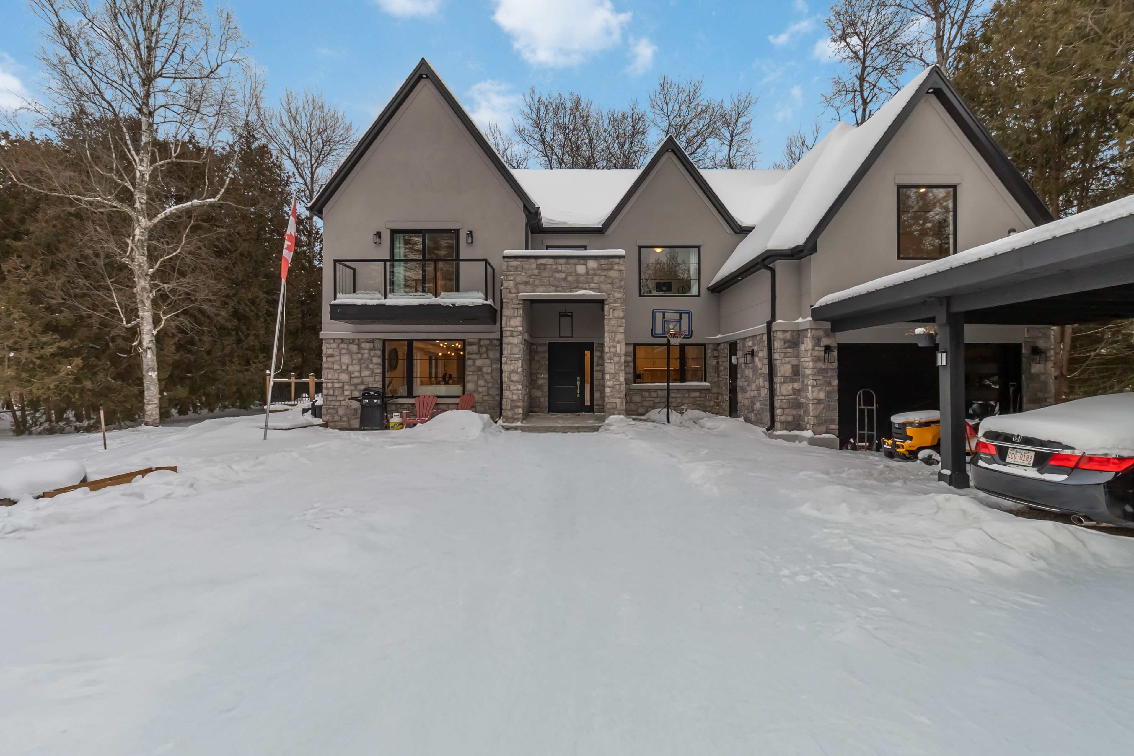 Experience unmatched luxury in this fully rebuilt two-storey estate set on 1. 37 acres of exceptional privacy, featuring a private pond and a sanctuary-like setting. Perimeter surrounded by trees for additional privacy. This stunning home offers 5 bedrooms, plus a self-contained 2-bedroom in-law suite with a separate entrance, ideal for extended family, guests, or potential rental income. High-end finishes throughout elevate both everyday living and entertaining. A dedicated indoor theatre, connected to a spacious upper-level loft, provides the perfect space for relaxing, entertaining, or use as an additional bedroom or flex space. The main floor showcases a bright, open-concept layout featuring spacious living, dining, and family rooms anchored by a fireplace and highlighted by floating stairs with glass railings. A main-floor bedroom with a private ensuite offers the perfect setup for guests or multigenerational living. Step outside to a large patio deck, ideal for summer barbecues and outdoor entertaining. Upstairs, you'll find four generously sized bedrooms, including a luxurious primary retreat with a spa-inspired 5-piece ensuite and private balcony overlooking the serene surroundings. A rare blend of modern design, privacy, and versatility, this home is truly one of a kind.