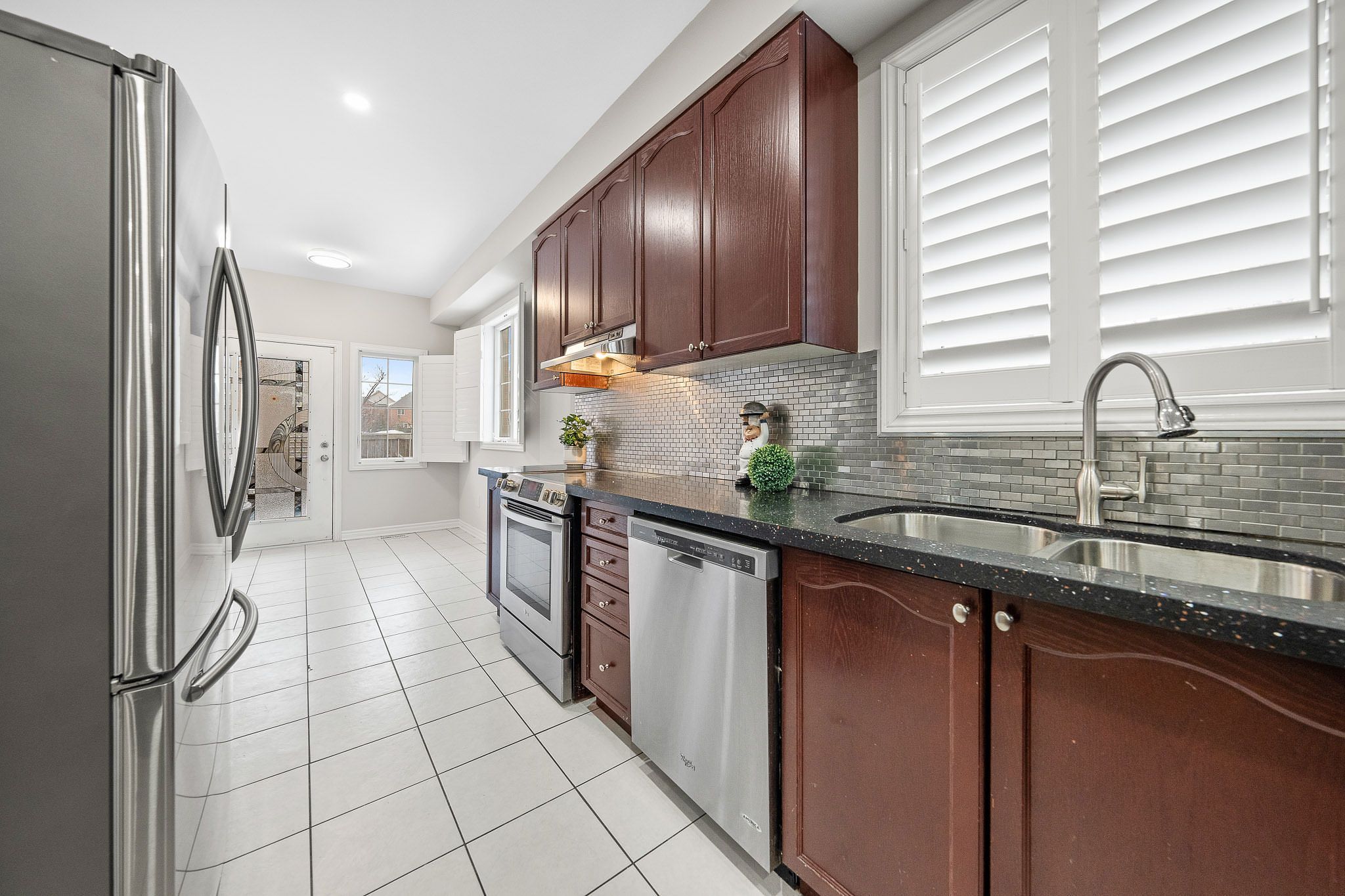 Bright modern end unit townhouse nestled in highly sought-after thornhill woods. Hardwood floor throughout the house, open concept living and kitchen area, spacious family room with ample of natural lights. Impeccably maintained with lots of upgrades. 9 ft ceiling ,granite counter tops, tiled backsplash. Professionally finished basement with engineered flooring. Some pictures are virtually staged. Perfect neighborhood, close to all commute points , just minutes away from highways 7 and 407 , as well as the vmc subway station. Dufferin viva bus and ttc bus stop at doorstep. Walking distance to community center and library.