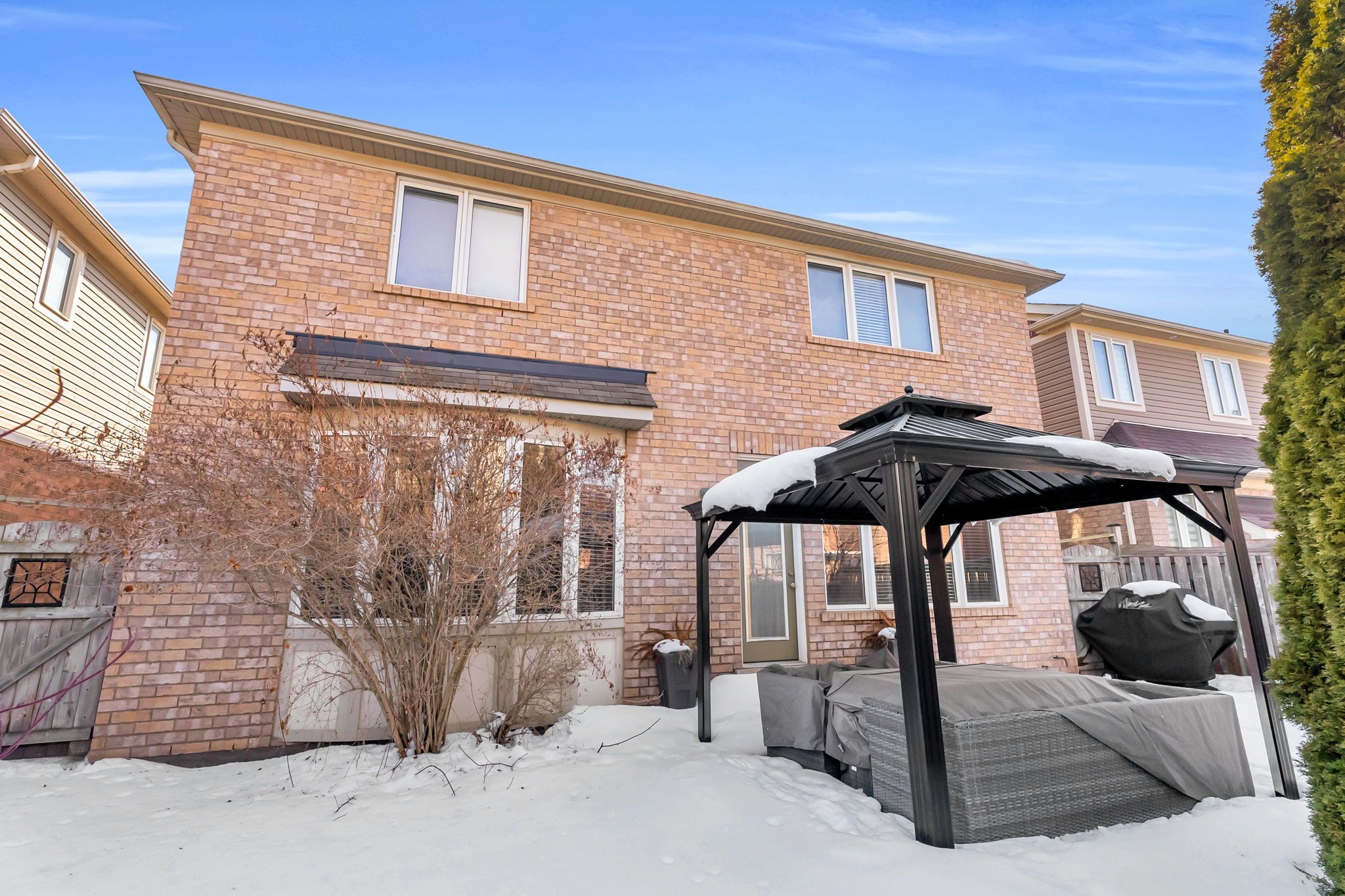 Welcome to 879 etherington way, a beautifully maintained detached home thoughtfully updated throughout and set on a landscaped lot in milton's sought-after harrison neighbourhood. This home delivers the perfect balance of space, function, and elevated finishes. From the moment you arrive, a covered front porch creates a warm welcome. Step inside to soaring ceilings, rich hardwood flooring, and light-filled layout designed for both entertaining and everyday comfort. The main level offers distinct yet connected living spaces, including a formal living room, dining room, spacious family room with a fireplace, a dedicated main floor office, and new light fixtures that elevate the space. At the heart of the home, the kitchen has been upgraded with quartz countertops, stainless steel appliances, and a bright breakfast area with direct access to the backyard, creating a seamless indoor-outdoor flow. Whether hosting friends or enjoying casual meals, this space is both functional and refined. Upstairs, four spacious bedrooms provide room for growing families. The primary suite is a true retreat, with a walk-in closet, relaxation space, and a luxurious 5-piece ensuite. An additional full bathroom completes the upper level with comfort and convenience. A professionally finished basement expands your living space, offering recessed lighting, a generous recreation room, a wet bar with a bar fridge, two additional bedrooms, and a 3-piece washroom, perfect for guests, teens, or a home gym. With over 1,300 sq ft of finished space below grade, this level adds incredible versatility. Outside, the fully fenced backyard is beautifully landscaped with mature trees and a rear patio designed for summer evenings and effortless entertaining. Ideally located near optimist park, the milton velodrome, excellent schools, and the convenient 401-tremaine interchange, this is family living at its best. Spacious, light-filled, and finished on every level, this home truly checks every box.