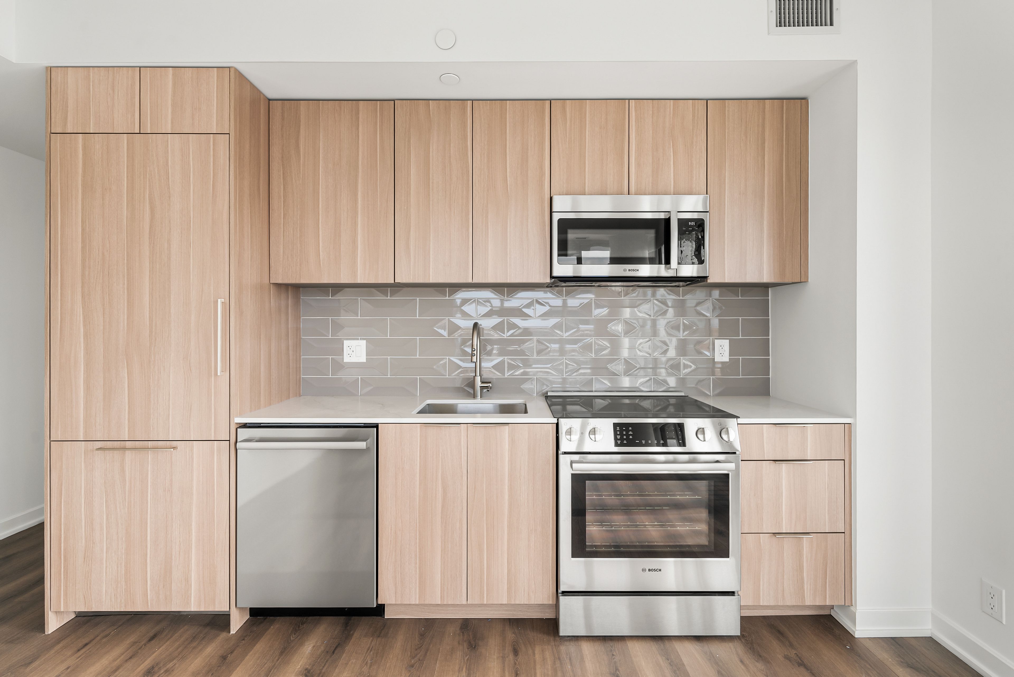 • Enjoy a large wrap-around balcony and floor-to-ceiling windows for natural light.