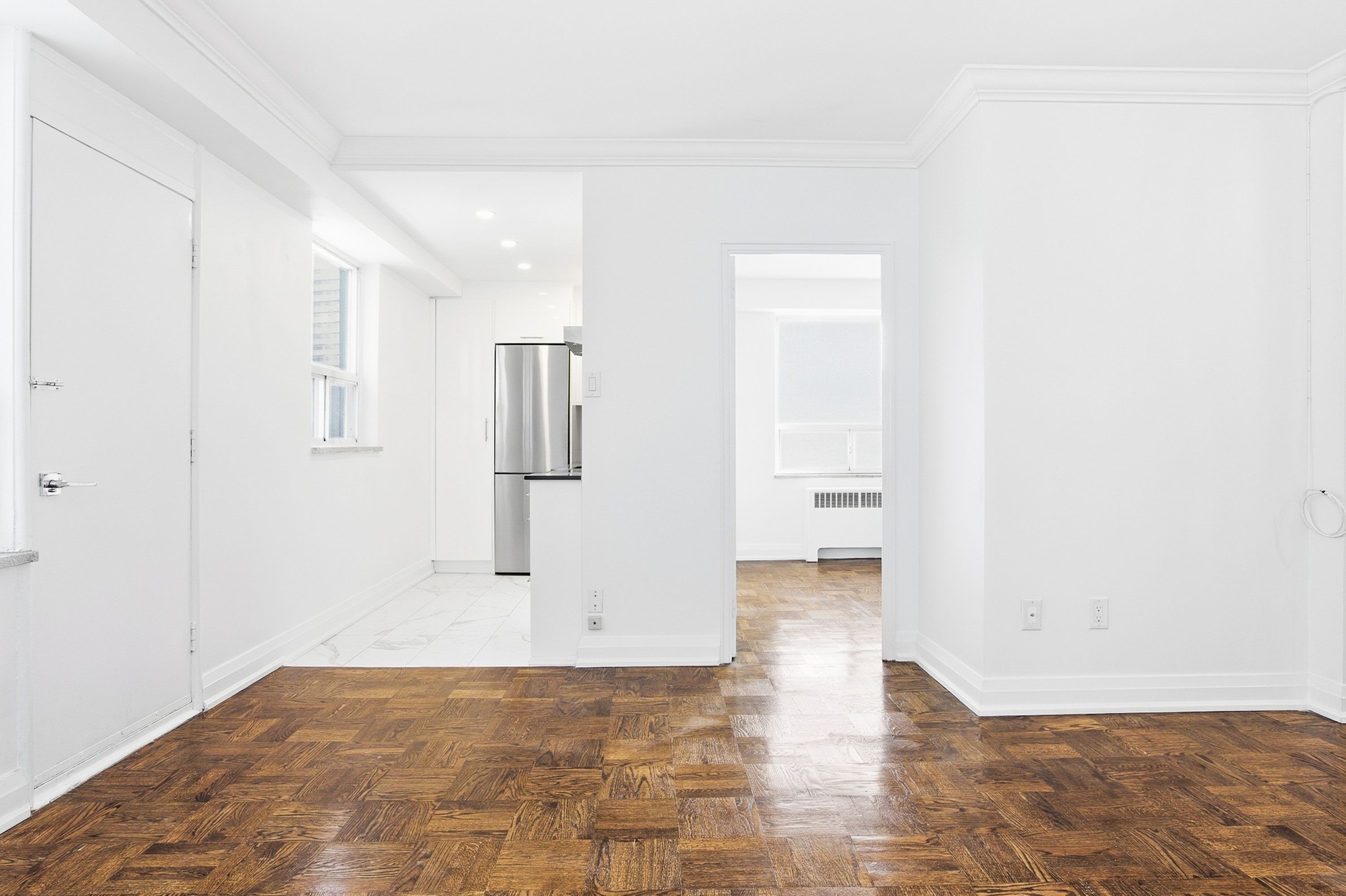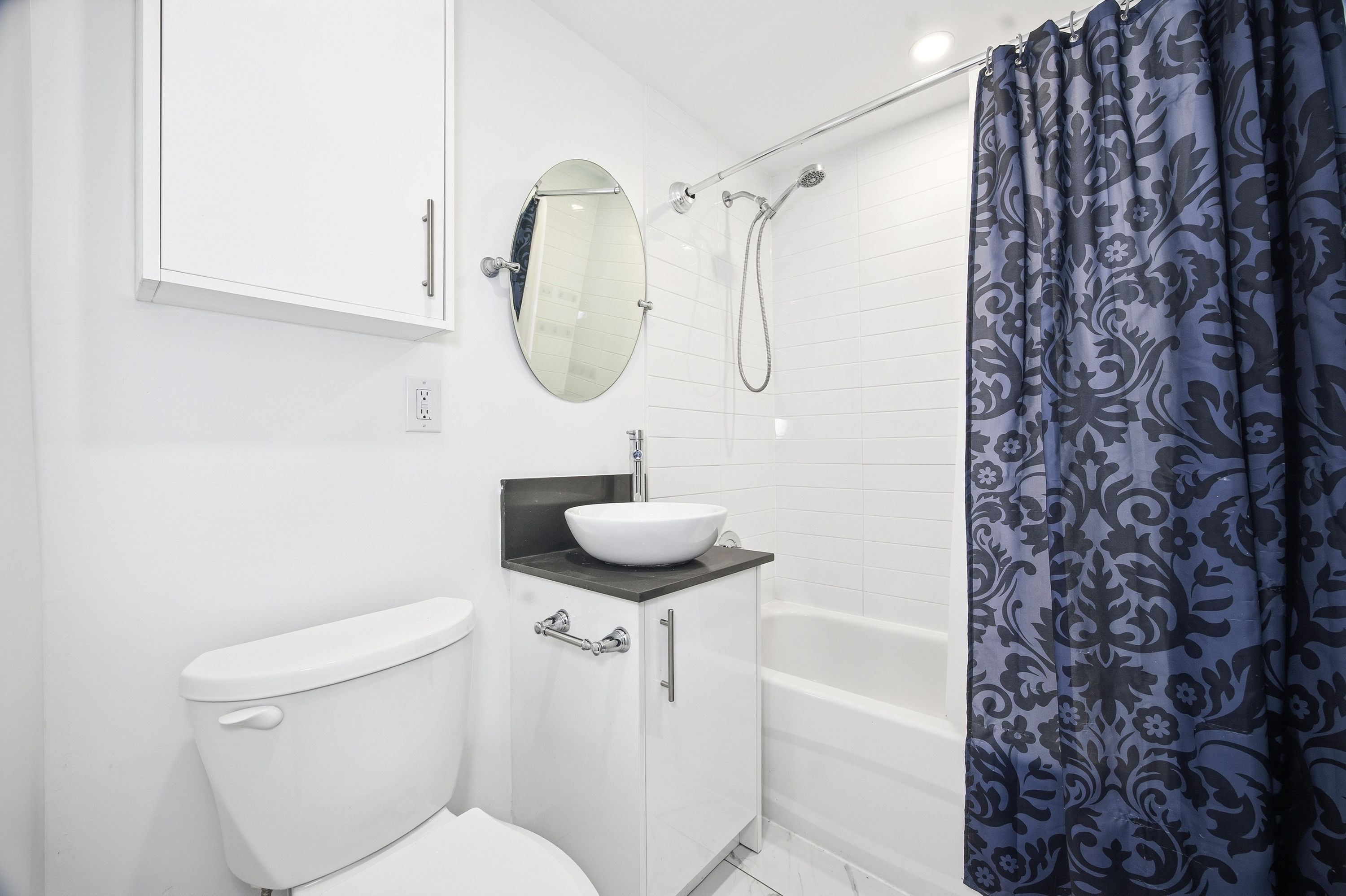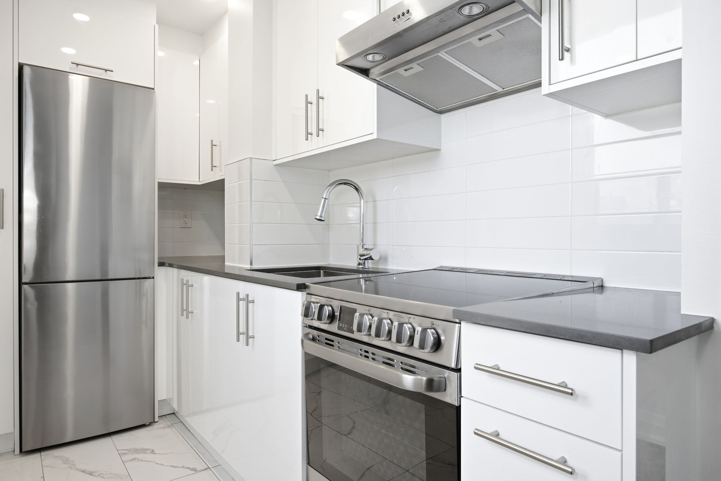 • Stylish renovated 1-bedroom apartment featuring a modern kitchen and bathroom.