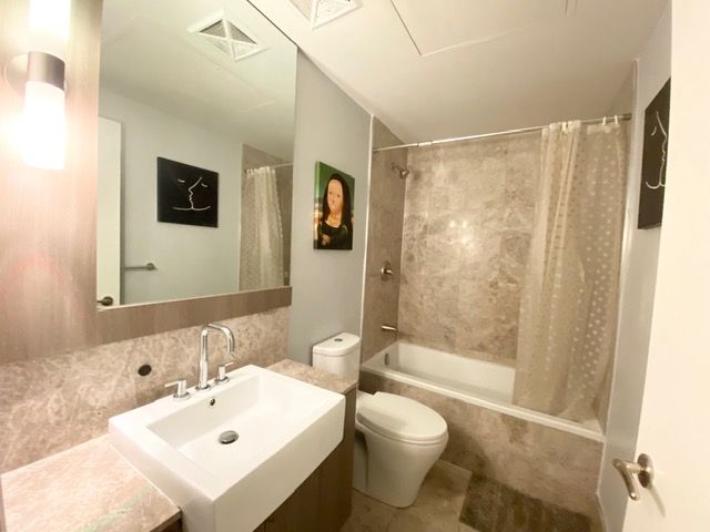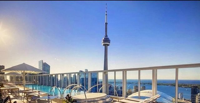 New walls to ceiling paints ! More cozy feelings ! Bisha hotel & residence. Big 1 bedroom unit with balcony, large window facing north with gorgeous city view. A private label boutique brand located in the heart of entertainment district. Close to financial district, cn tower, rogers centre, ttc, subway, restaurants, cafes, live theatres, office towers, etc. 9' ceilings, dramatic natural stone backsplash, countertops, floor to ceiling glass! Amenities includes: rooftop lounge, pool, gym, ground cafe & restaurants.