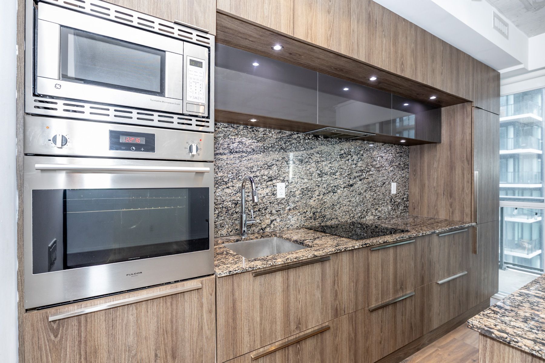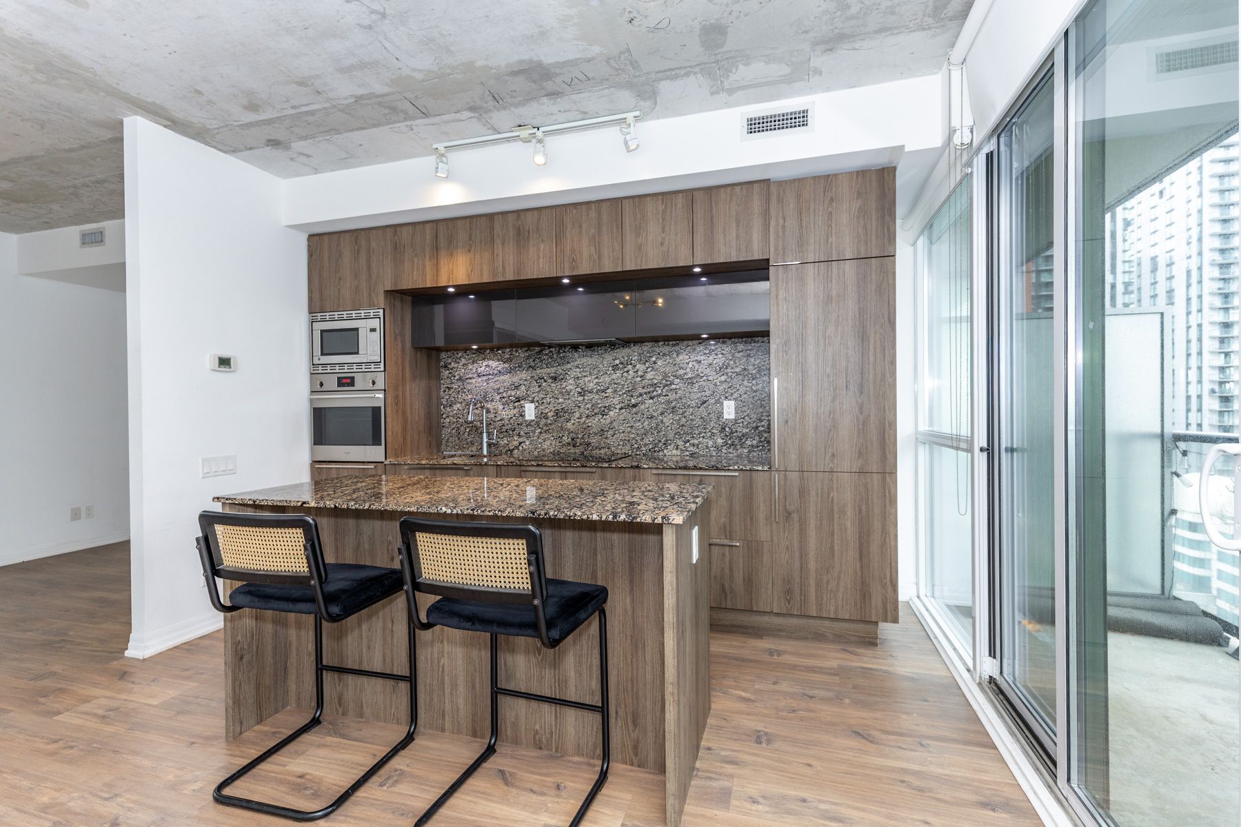 Welcome to the prestigious bisha hotel and residences. This suite is a luxurious 1+1 bedroom condo. It is the epitome of hotel-like living in the heart of downtown toronto! This stunning suite offers an unparalleled lifestyle with its exceptional amenities, breathtaking views & top-notch finishes. Featuring floor to ceiling windows that flood the suite with natural light, exposed concrete ceilings adding an industrial chic touch to the modern design & 9ft ceilings. Open concept layout creating seamless flow between living, dining & kitchen. Contemporary kitchen equipped with high-end appliances, sleek cabinetry & granite island. Good sized bedroom with walk-in closet. Incredible amenities including; 24 hour concierge, gym, valet parking, rooftop deck with infinity pool & more! Situated in the central entertainment district, walking distance to fine dining, trendy bars, rogers centre, scotiabank arena, cn tower, t. T. C., waterfront & more! Unit will be freshly painted with premium paint before closing.