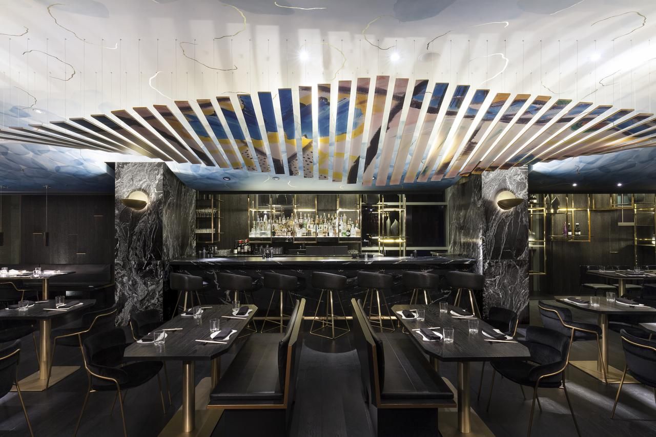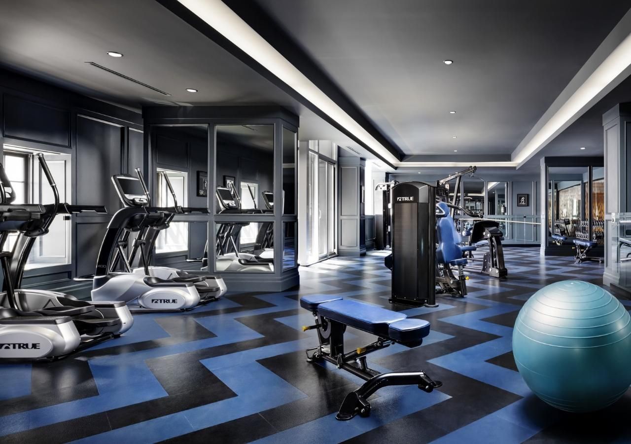 • Five-star amenities include a fitness studio, pool, and rooftop lounge.