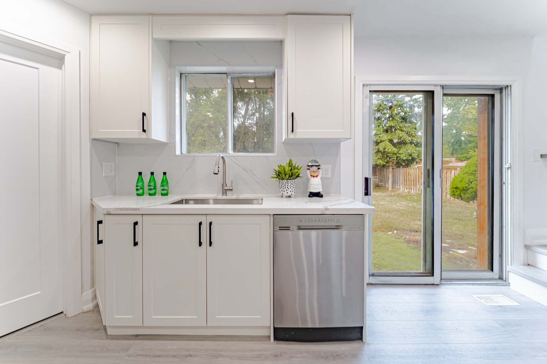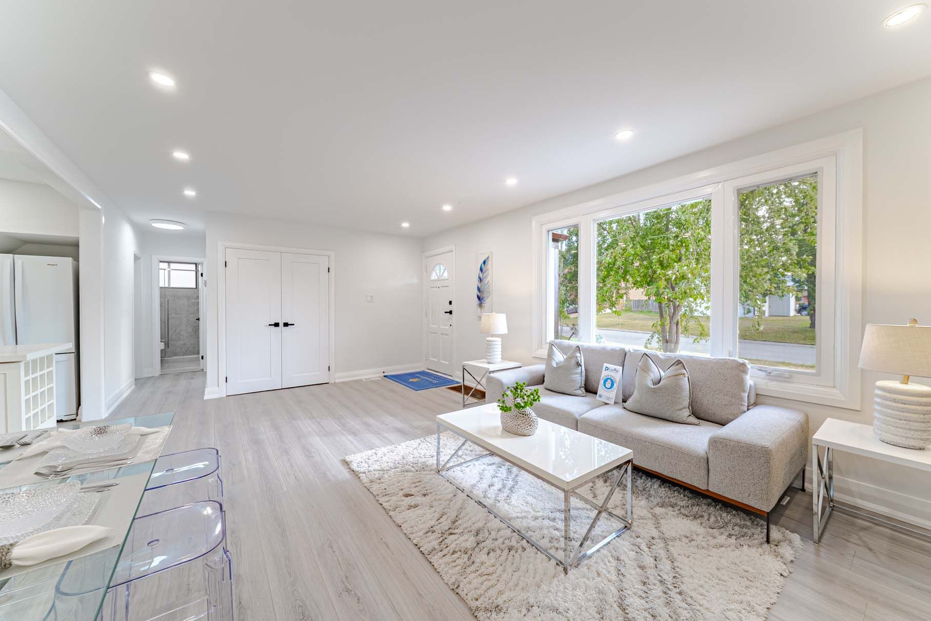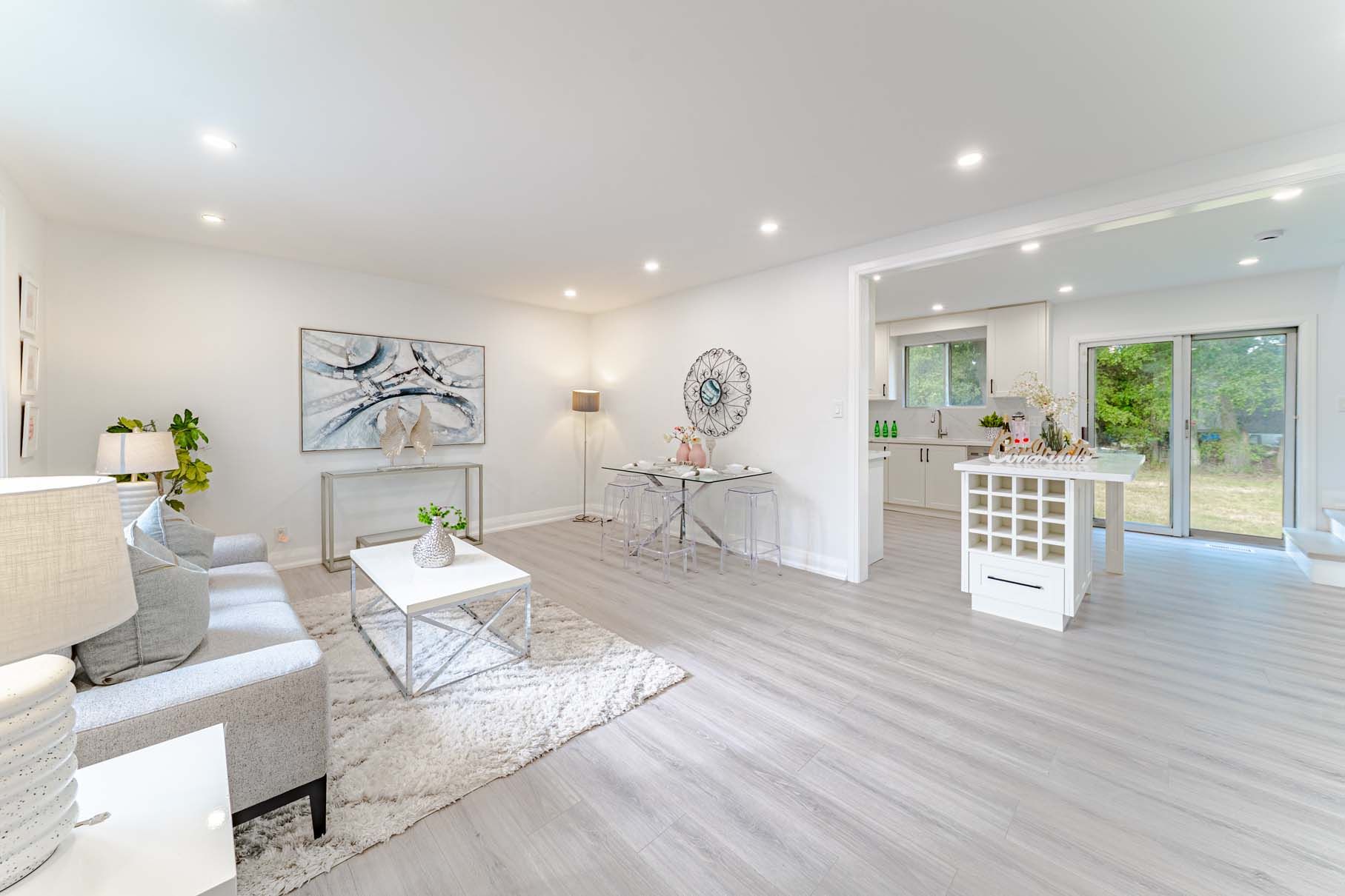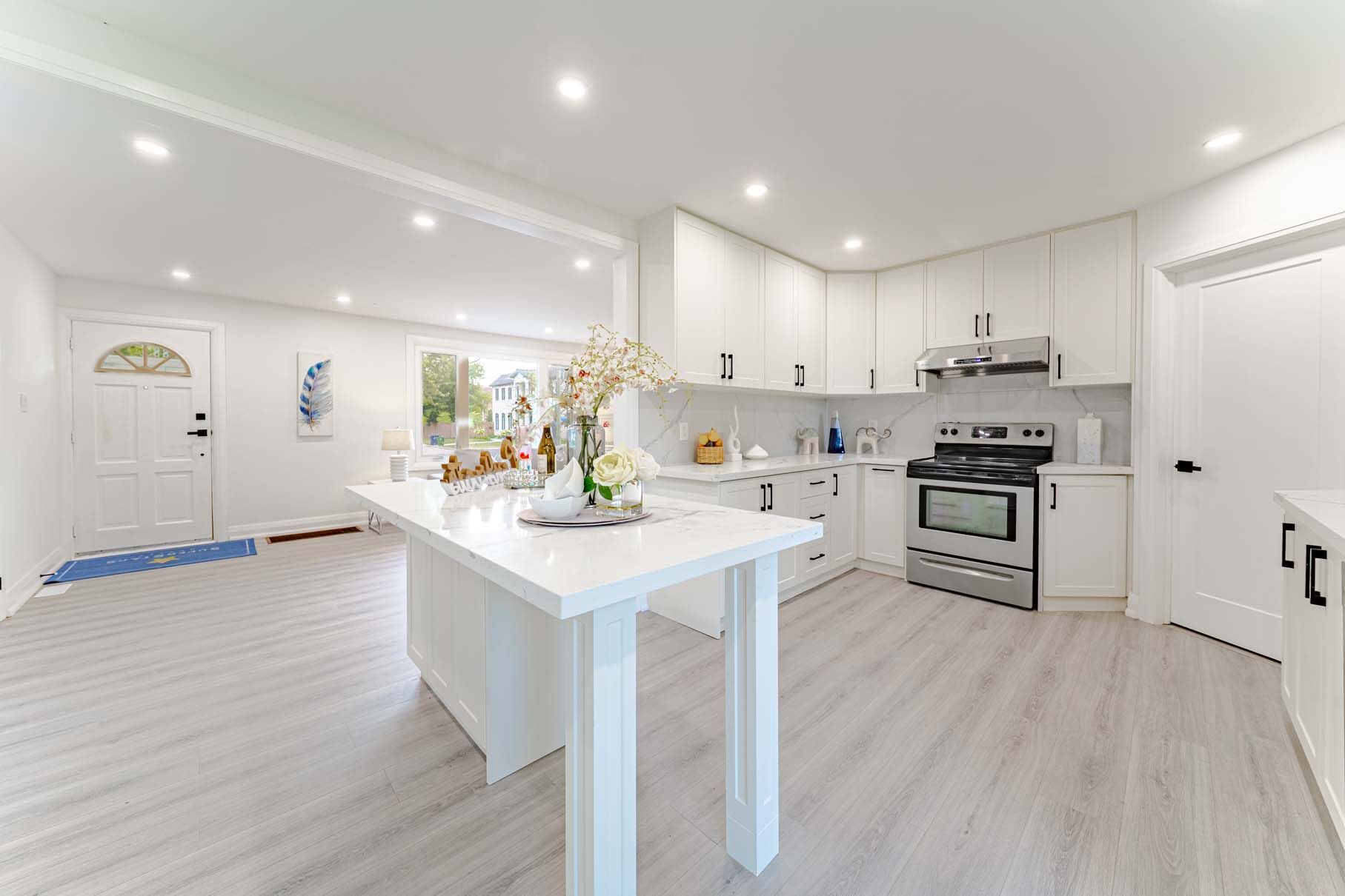 Stunning and fully renovated detached home located on a 60ft x 126. 5ft lot in a quiet street. Featuring an open-concept layout with modern design. Upgraded waterproof laminate flooring, smooth ceiling and pot lights. Good size kitchen with quartz countertop, large island with breakfast bar and wine rack, backsplash, and oversized sink. 2 bedrooms and a 3pc bathroom on the main floor, plus 2 additional bedrooms and another 3pc bathroom upstairs. Perfect for multi-generational living. Finished basement includes a separate entrance to garage, kitchen, 3 bedrooms, and 2 bathrooms. Ideal for extended family or rental income. Enjoy direct garage access and a long, sidewalk-free driveway that easily accommodates 4 vehicles. Conveniently located just minutes from hwy 404 & 401, golf courses, shopping, community centre, schools, parks, and restaurants.