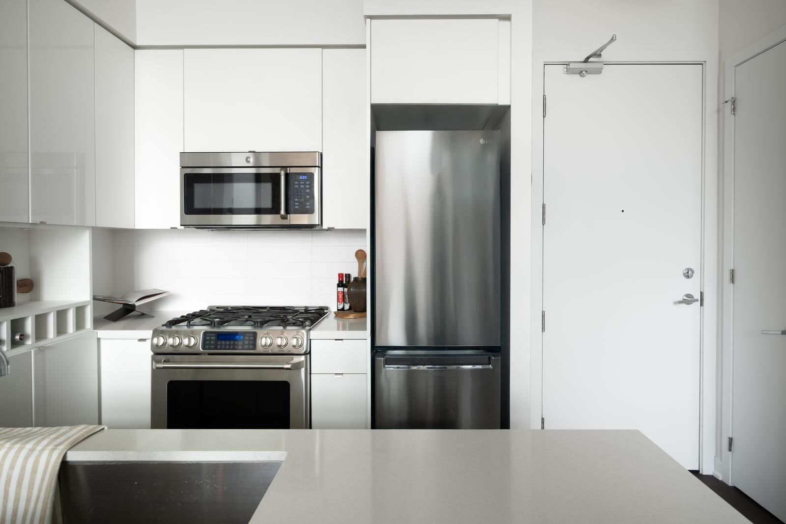 Welcome to penthouse living at showcase lofts in the heart of vibrant leslieville. This beautifully updated 1-bedroom, 1-bathroom suite offers a perfect blend of loft-style character and modern comfort, featuring eco-engineered, hardwood flooring throughout and a striking exposed brick feature wall that adds warmth and personality. The chef's kitchen is designed to impress, featuring a gas stove, oversized stainless steel undermount sink, and a large breakfast bar-perfect for cooking and entertaining. Ample kitchen cabinet space and storage throughout ensures that everything has it's place, while the spacious bedroom boasts floor-to-ceiling windows that fill the space with natural light. Located on the penthouse level, this unique suite also features a rare skylight and unobstructed west-facing views of the city skyline, creating a bright and airy living environment throughout the day. The open living room offers the perfect place to relax at the end of the day, entertain friends for dinner with room for a dining table, or have room to work from home. This condo includes a parking space, locker, and bike storage unit-an exceptional bonus for city living. Residents of showcase lofts enjoy fantastic amenities, including a large fitness centre, party room, bbq area with outdoor space, guest suite, concierge service, and guest parking. Perfectly situated in the centre of leslieville, you're just steps from incredible restaurants, local cafés, boutique shops, and the ttc, with easy access to the dvp for a quick commute. Experience the best of loft living in one of toronto's most sought-after neighbourhoods.