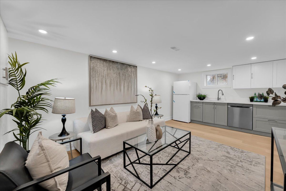 Charming, modern & tastefully renovated is how i'm going to describe this rare, solid break detached bungalow!!! Situated in the highly desirable wexford-maryvale community! Featuring beautiful 6 bedrooms & 4 modern baths, this gorgeous sun-filled home sits on an aprox. Premium 130 ft deep lot, baking onto a green space with no neighbors behind & boasts over 2,000 sqft of total upgraded living space! Delightfully renovated, top to bottom, w/luxurious finishings make this gem an absolute turnkey property! You will feel like home the minute you step in! Starting with a warm, spacious & welcoming living/dining space w/large windows & lots of sunlights! A stunning, chef's gourmet kitchen w/large island, soft closing cabinet doors, newer built-in stainless steel appliances,quartz countertops w/matching quartz backsplash & built-in washer & dryer, 3 bright bdrms w/own closets, a modern full bathroom w/bathtub, 2 pc powder room w/ceramic tiles. Hardwood flrs, pot lights, smooth ceilings & zebra blinds thru-out. Looking for a great potential rental income? Few steps down leads you to a complete delightful basement apartment w/separate entrance, featuring a cozy living rm, modern open-concept kitchen w/quartz countertops & newer appliances, 3 bdrms w/own windows & closets, washer & dryer. 2 full bathrooms w/glass shower sliding doors & ceramic tiles. Vinyl flrs, smooth ceilings & zebra blinds thru out. Step outside into a large patio deck in a treed & private backyard paradise backs onto a green space, just ideal for summer's entertainment & family's gatherings! 5 car driveway. Roof (2021), high efficiency furnace & central air (2017). Incredible location! Steps from terraview willowfield public school and willowfield park. Close to all amenities, malls, shoppings (costco, walmart, rona, home depot), restaurants, public transit, community centre, walking trails, hwys 401, 404 & dvp & much more! ***(great potential rental income!!!)***
