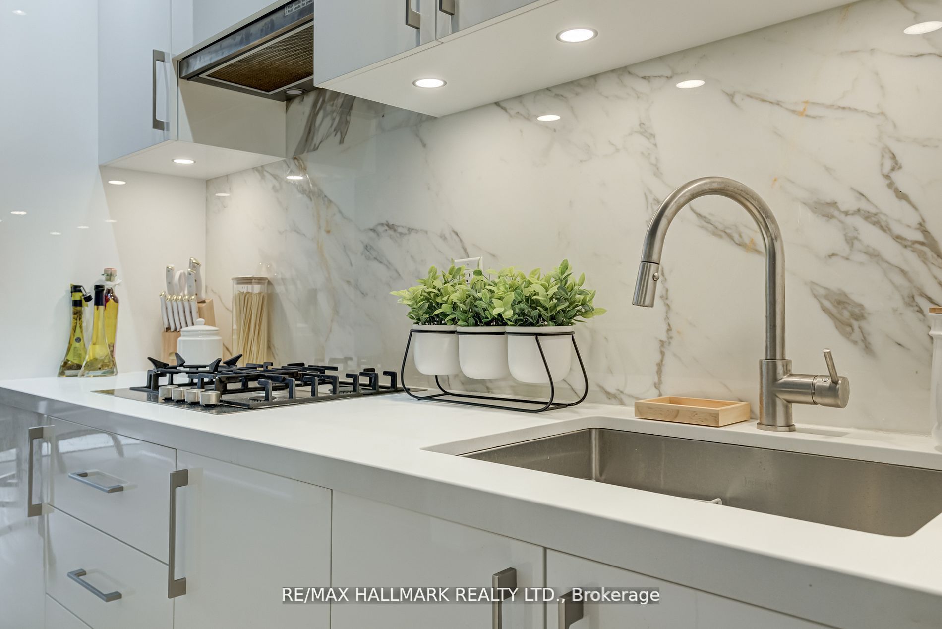 • Gourmet kitchen equipped with premium cookware and small appliances.