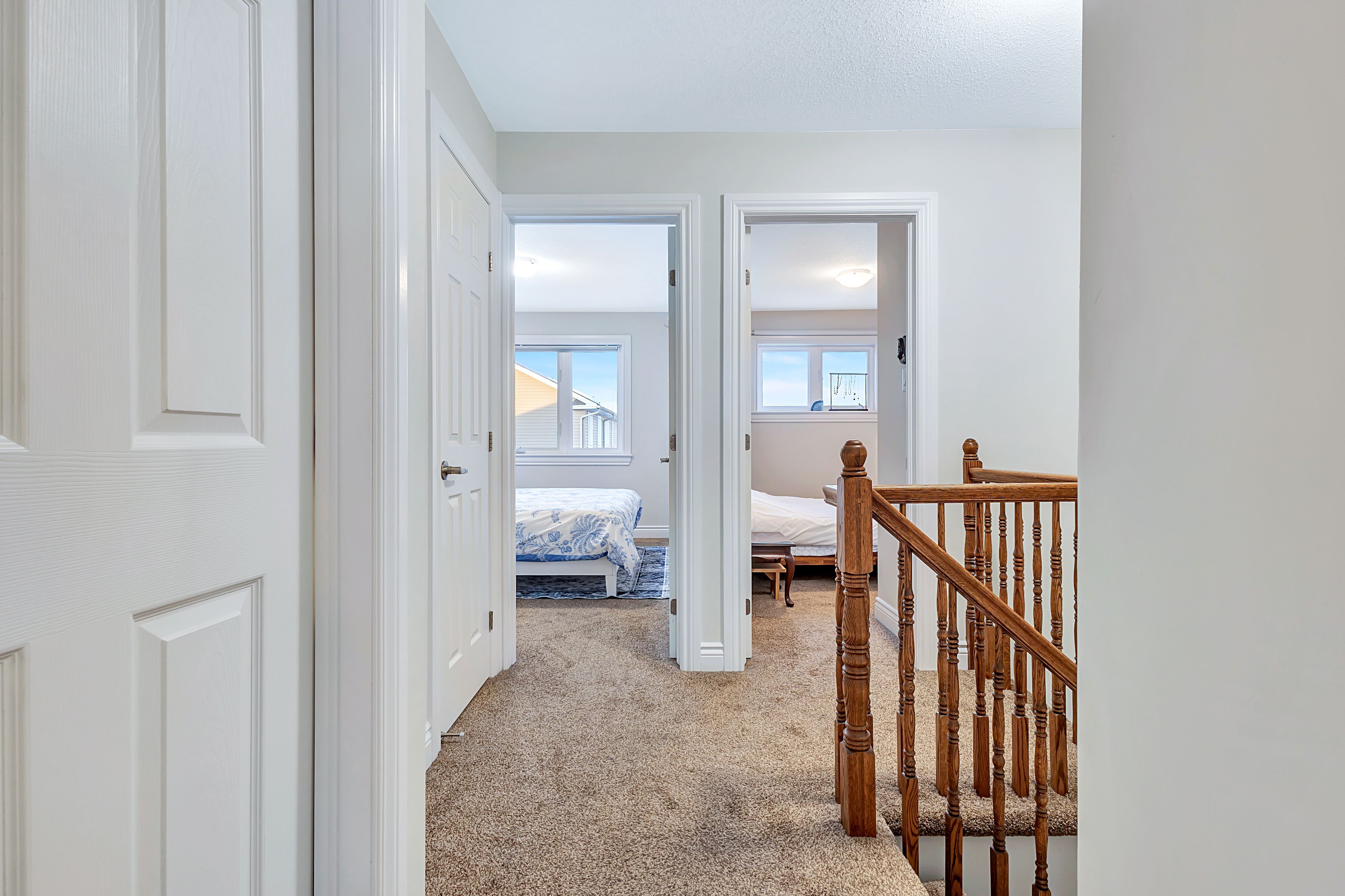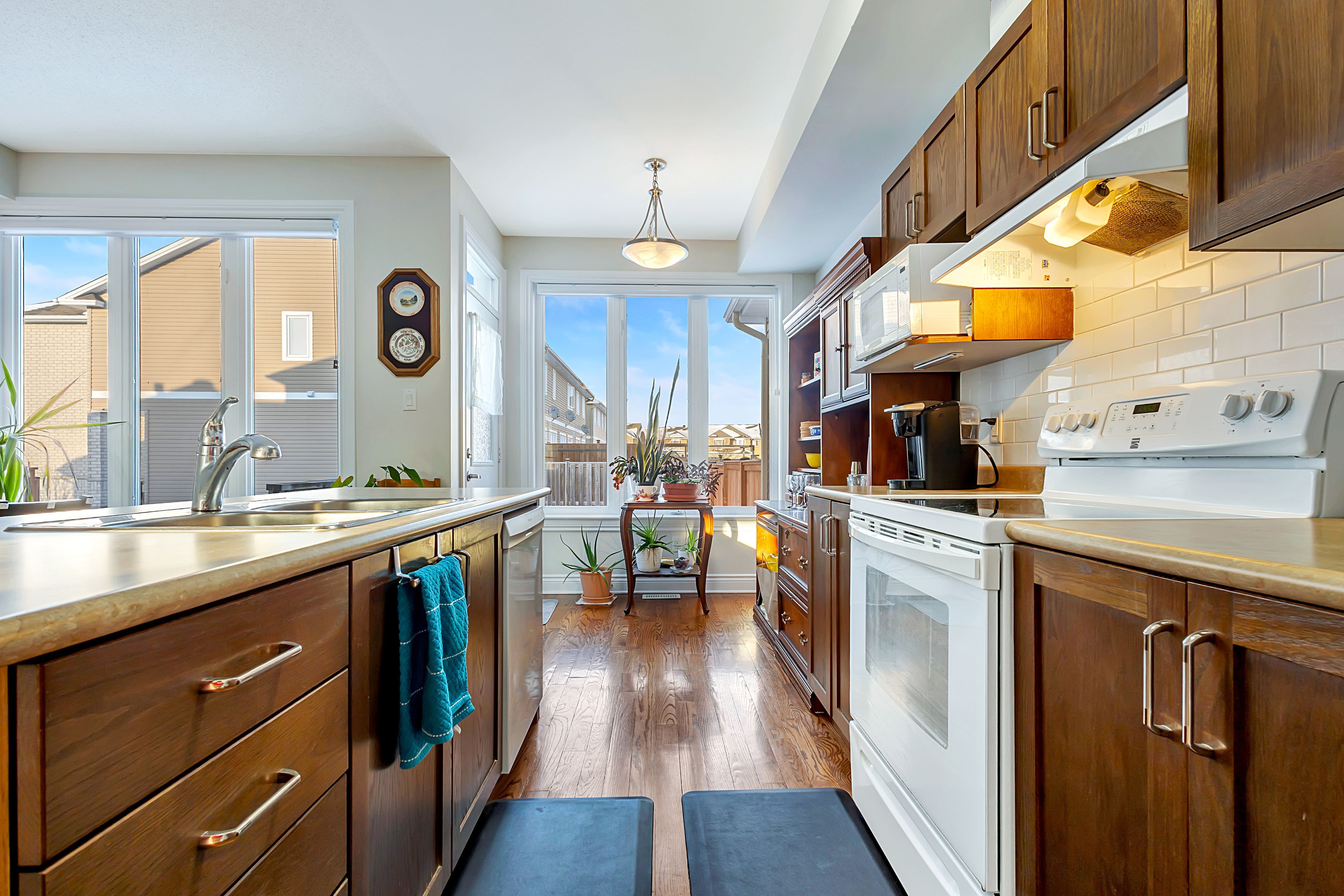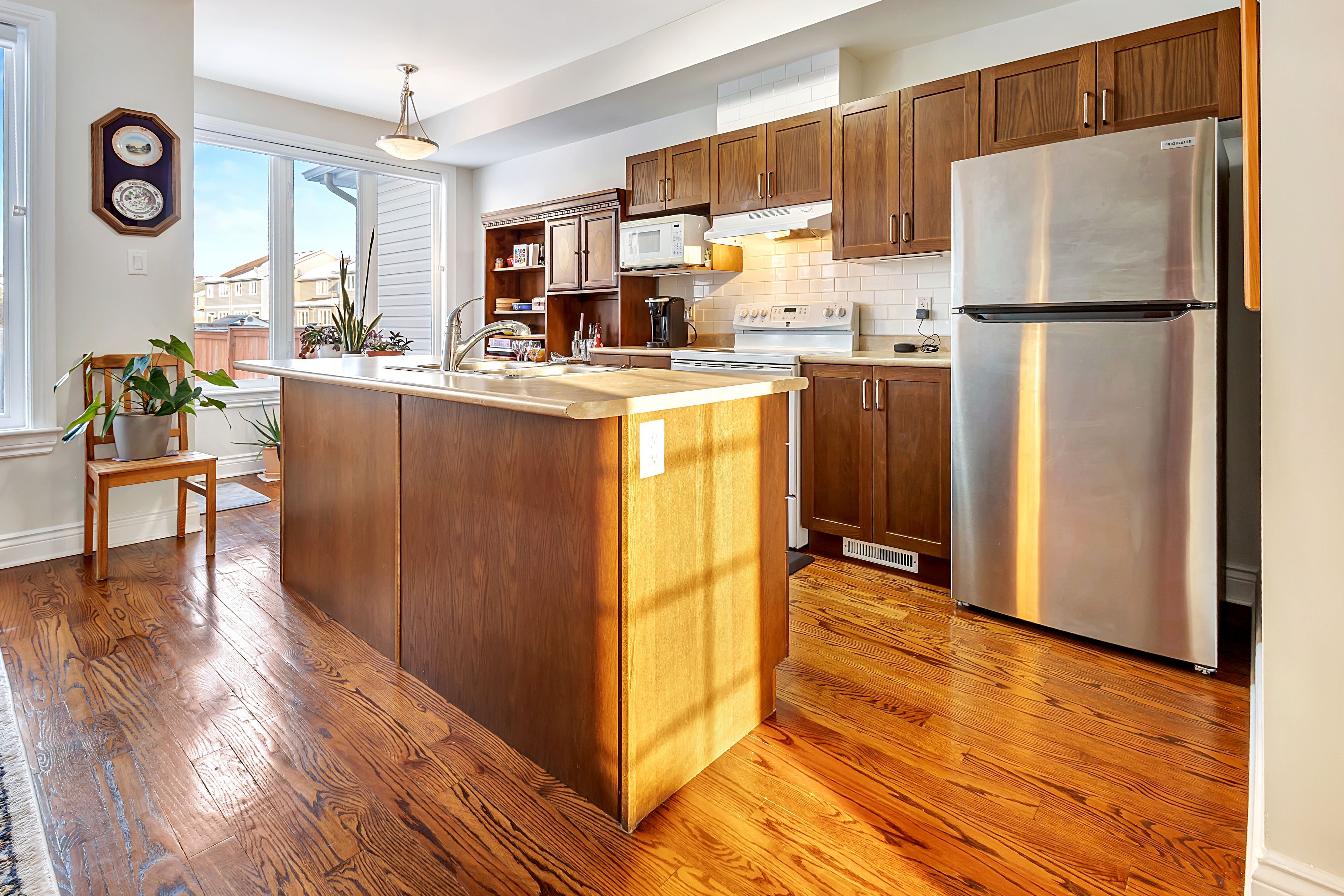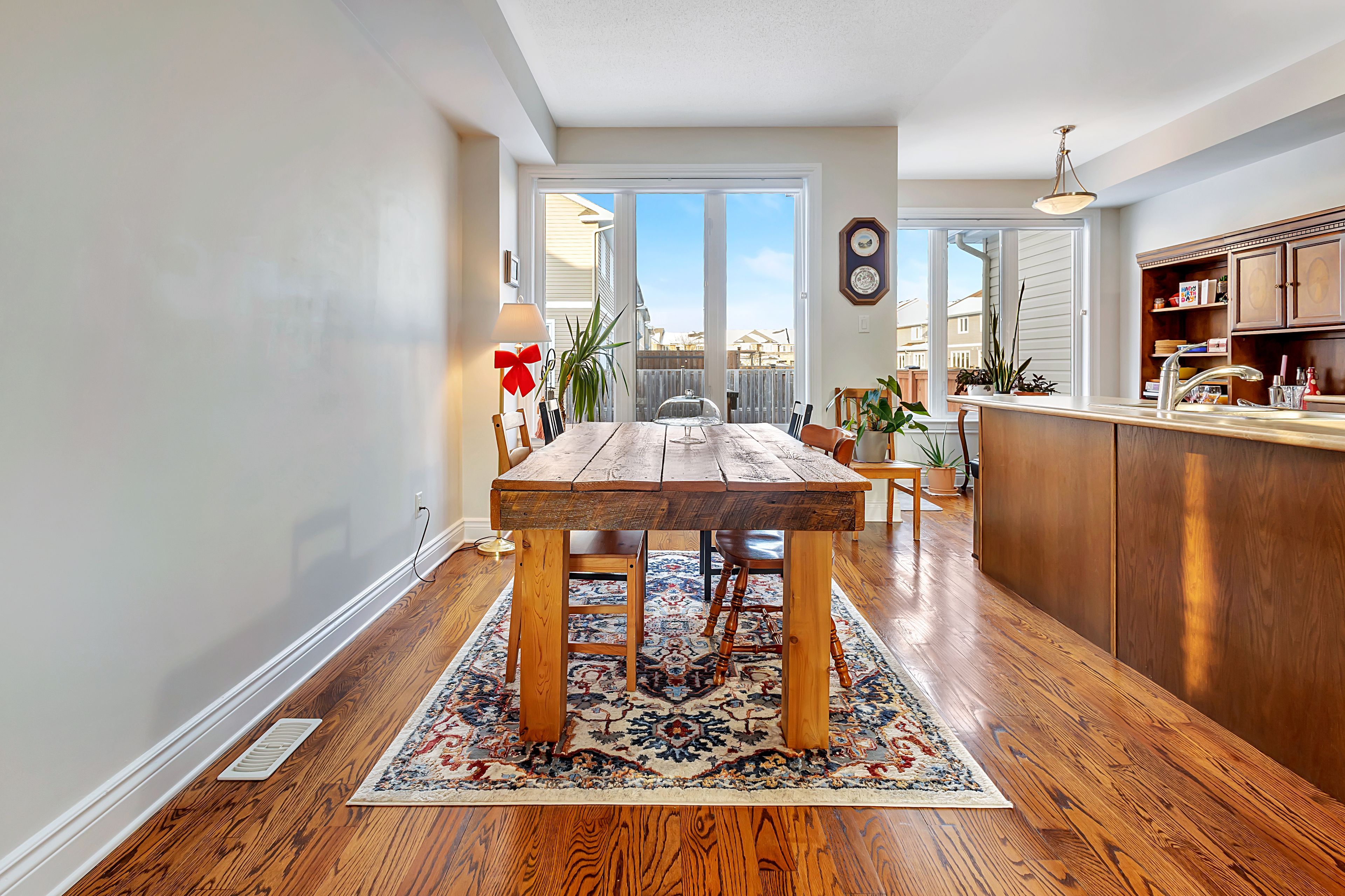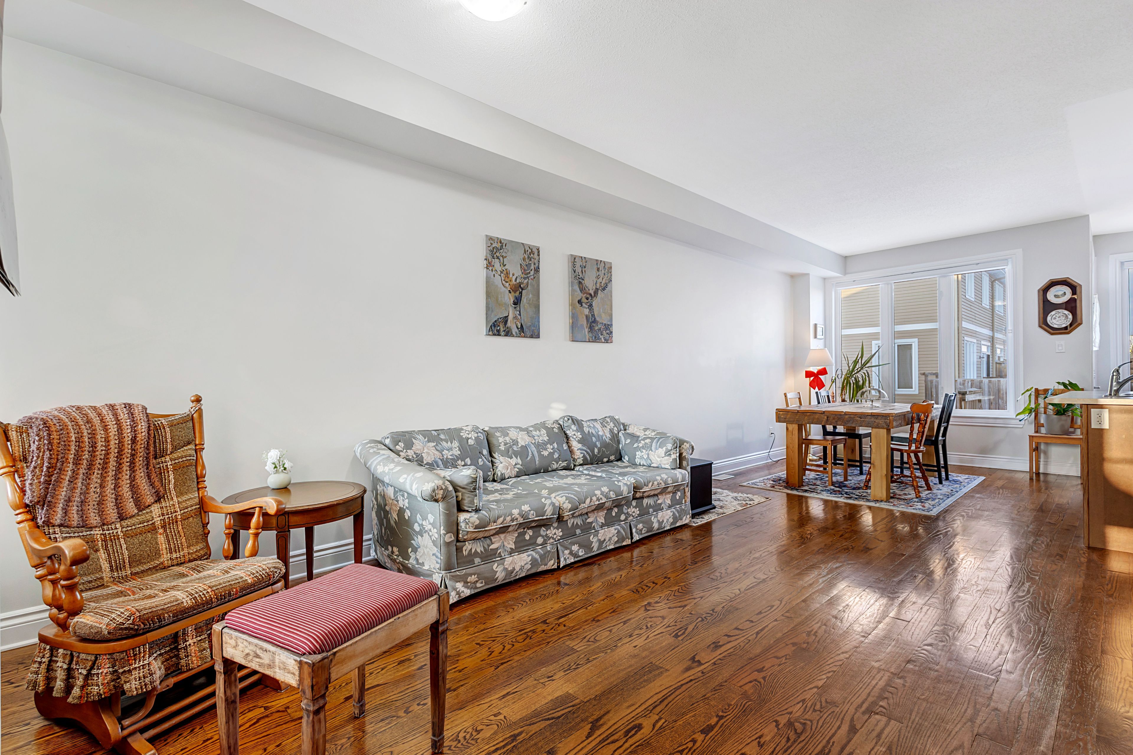 This beautifully maintained 3-bedroom townhouse offers open-concept main level, hardwood flooring on the main floor, tiled bathrooms, and extra-soft wall-to-wall carpet on the stairs and second level. The sun-filled kitchen features an island and patio door access to a backyard with plenty of natural light. The spacious bedrooms offer ample storage. The unfinished basement with a large window is perfect for storage, gym space and includes laundry with washer and dryer. Complete with all appliances, a main-floor powder room, single attached garage with automatic opener, and easy access to highway 417, parks, and amenities - this home truly has it all.
