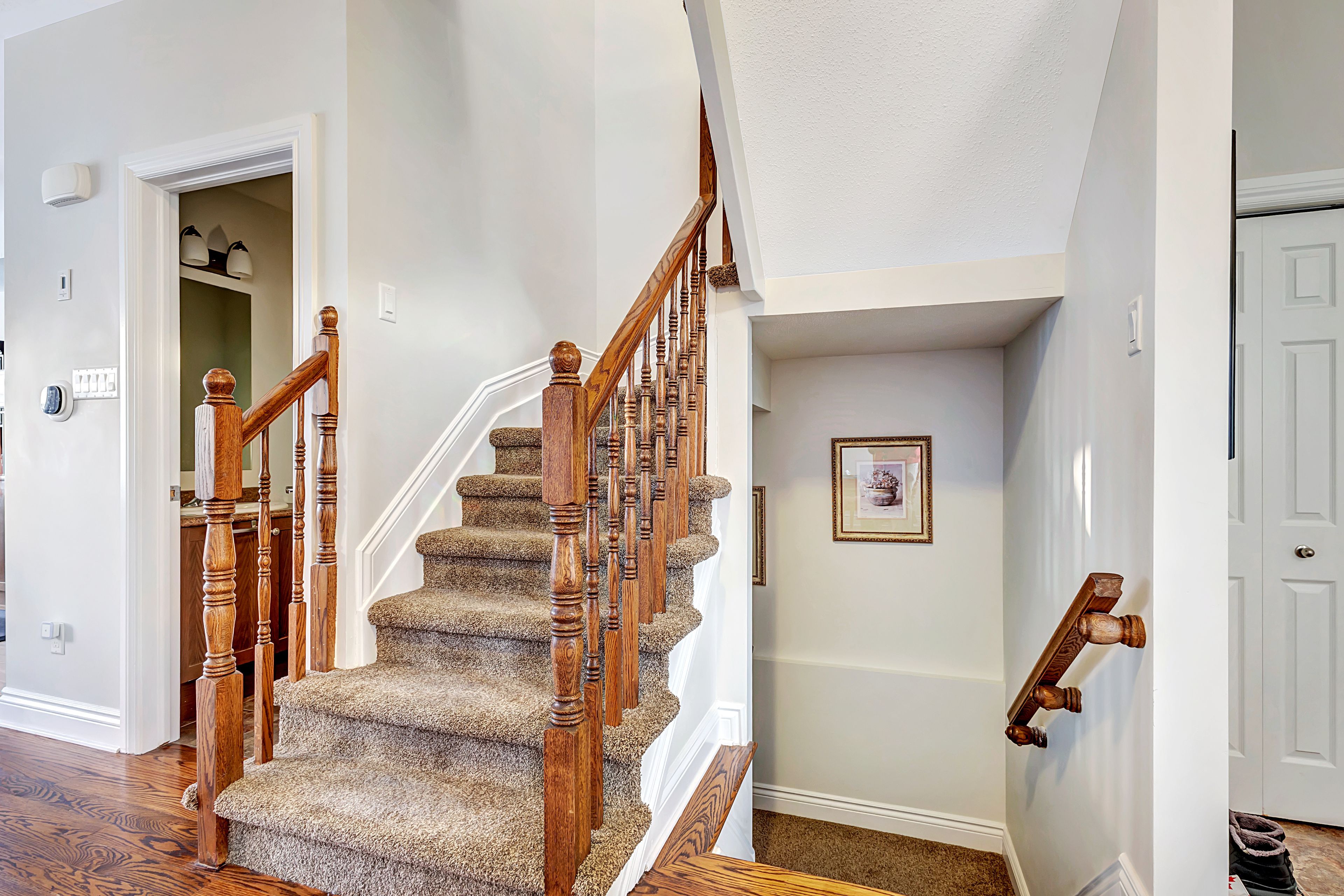 • Hardwood flooring on the main floor and soft carpet on upper levels.