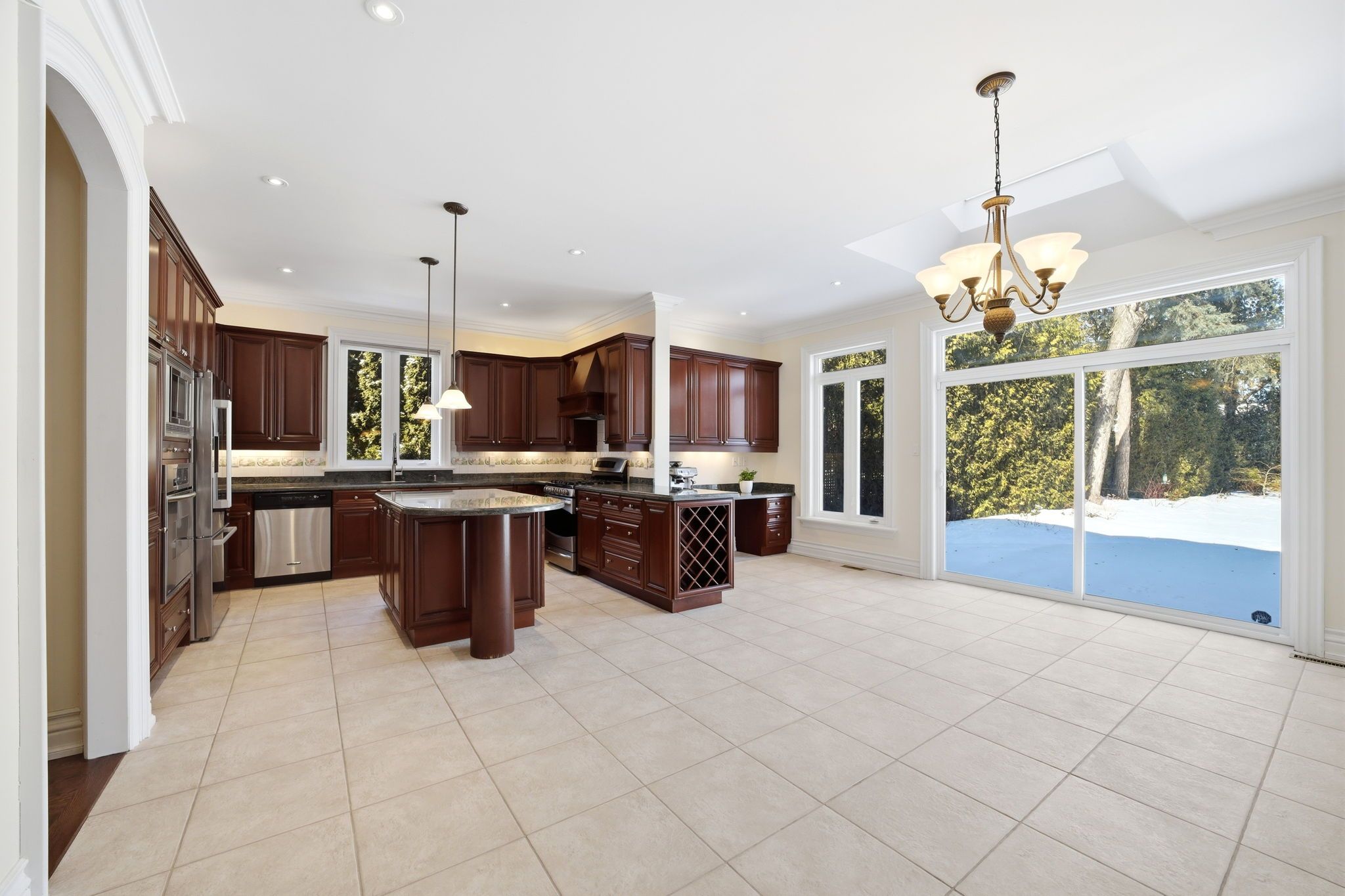 Exceptional opportunity to lease a grand stone residence on a rare 88' x 268' private lot in one of thornhill's most distinguished neighbourhoods. Offering approximately 6,413 sq ft above grade plus a fully finished 3,000 sq ft lower level, this impressive home delivers scale, privacy, and refined comfort ideal for executive living. Grand principal rooms with 9+ ft ceilings, hardwood floors, detailed millwork, and abundant natural light. Formal living and dining areas ideal for entertaining. Spacious family room overlooking mature landscaped grounds. Generous kitchen with extensive cabinetry and breakfast area. Upper level features well-proportioned bedrooms and an expansive open loft area. Elevator access between levels adds convenience and accessibility. The fully finished lower level offers exceptional additional living space including recreation areas, sauna, full bath, flexible rooms for gym/office/guest use, and a walk-up to a private patio framed by elegant retaining walls. Deep, private backyard with mature trees and seasonal landscape beauty creates a tranquil retreat rarely found in executive rentals. Oversized tandem double garage (approx. 21' x 40') with two doors provides exceptional depth for multiple vehicles and storage, plus ample driveway parking. Located near top-rated schools, parks, golf, transit, and major commuter routes. Entire home for lease. Tenant responsible for utilities and lawn/snow maintenance. Ideal for corporate executives, diplomats, and professional families seeking a distinguished long-term residence.