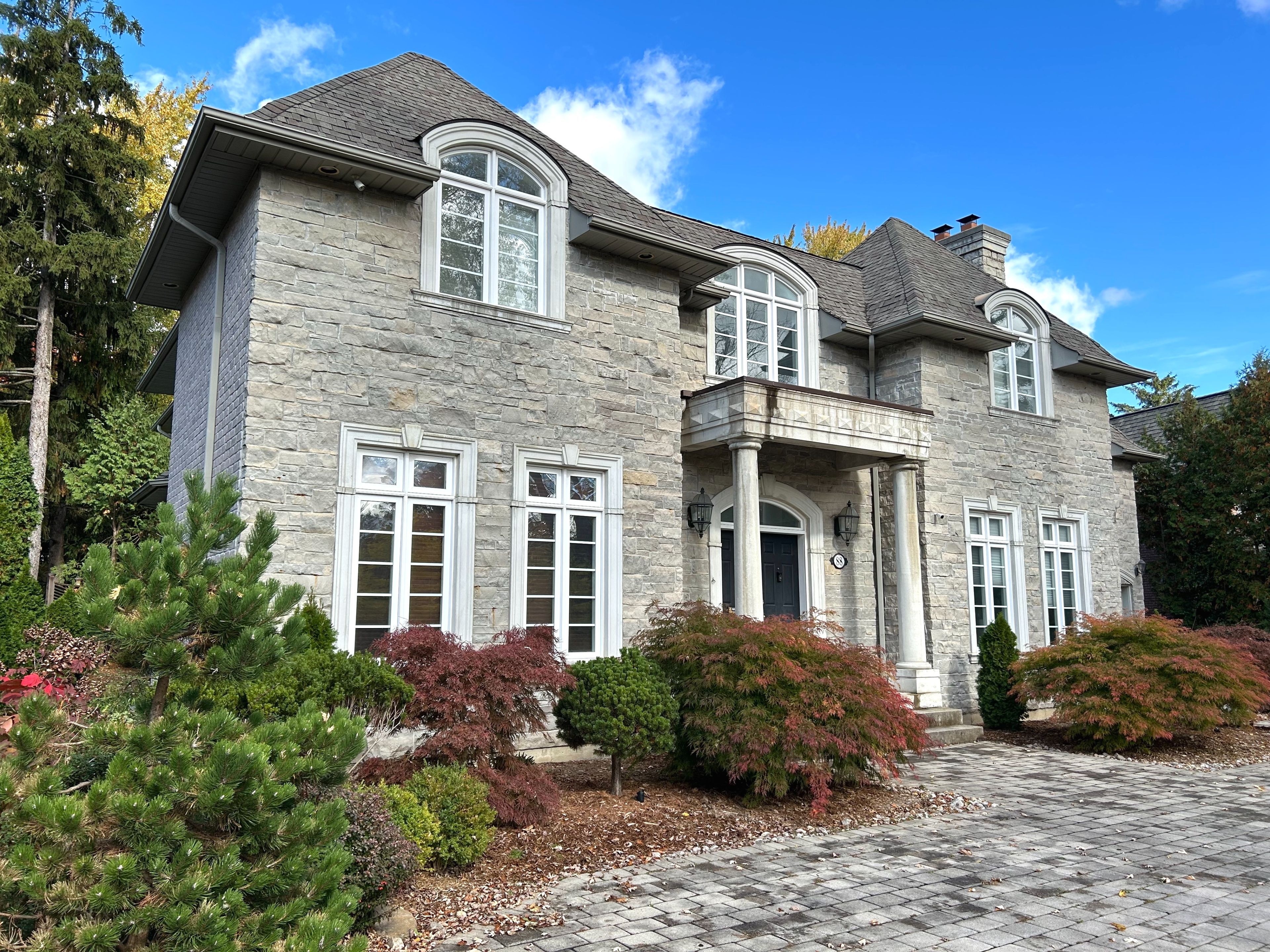 • Grand stone residence on a large private lot in a sought-after neighborhood.