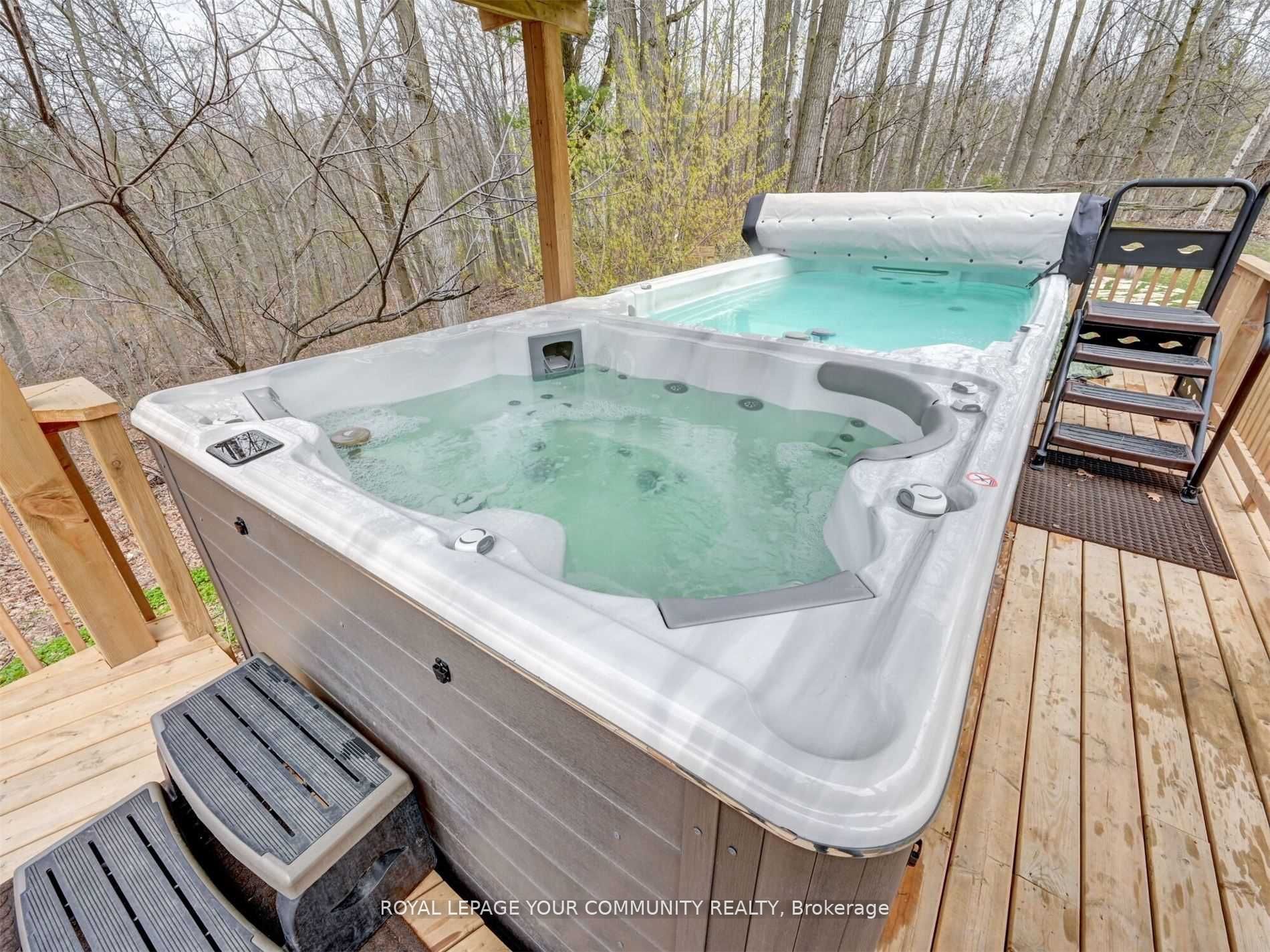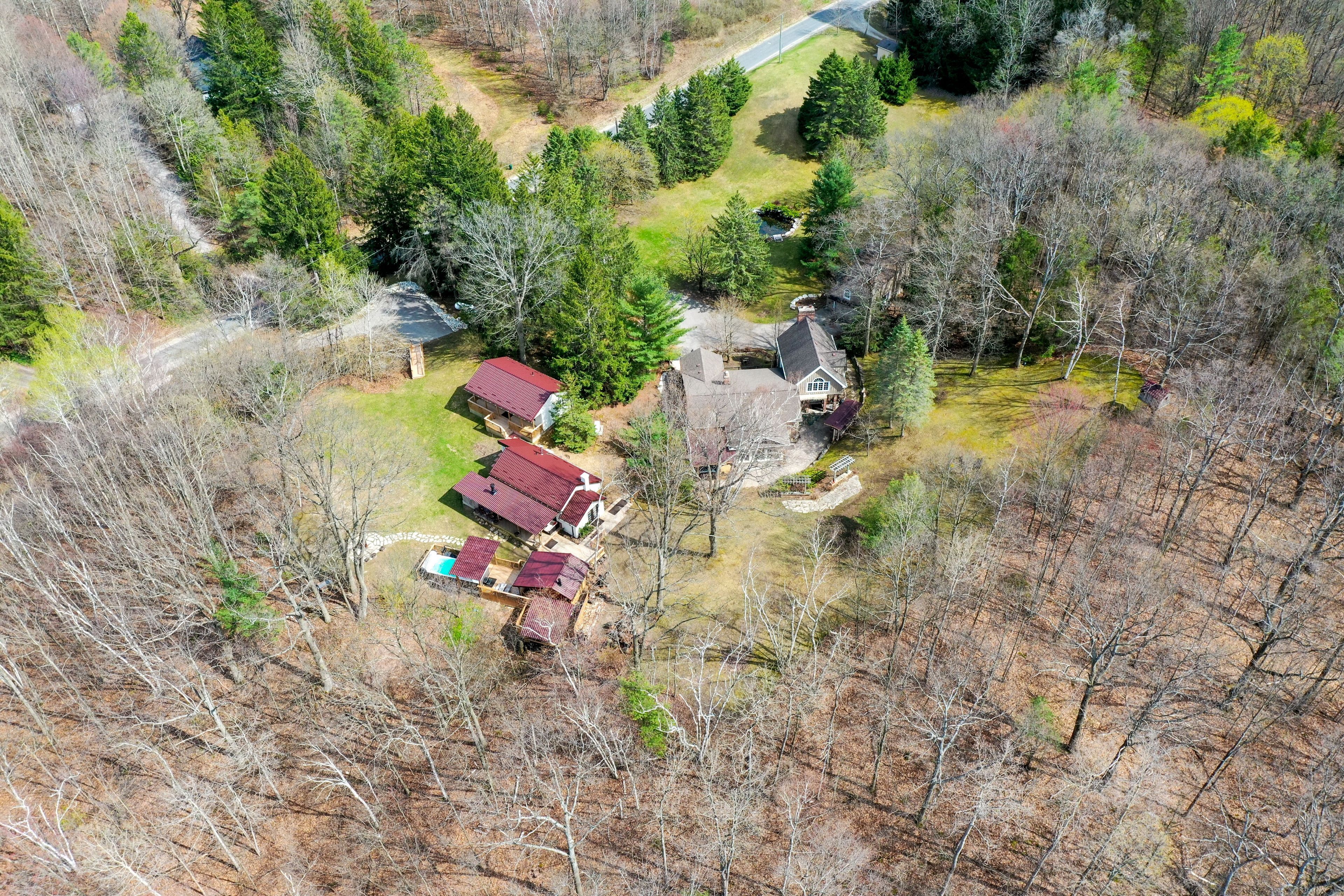 Near 6 acres! Your own resort! 6 acres of serenity with multiple building structures! A large raised bungaloft with a full walk out basement is just your starting point. You will be charmed by a luxury fully equipped guest house then followed by the four seasons nordic spa& it's fully independent cabin. A truly special retreat! A separate garage/workshop for all your toys. Built in bbq stations and pizza oven, indoor/outdoor all season lounge, multi level outdoor access from the main house.