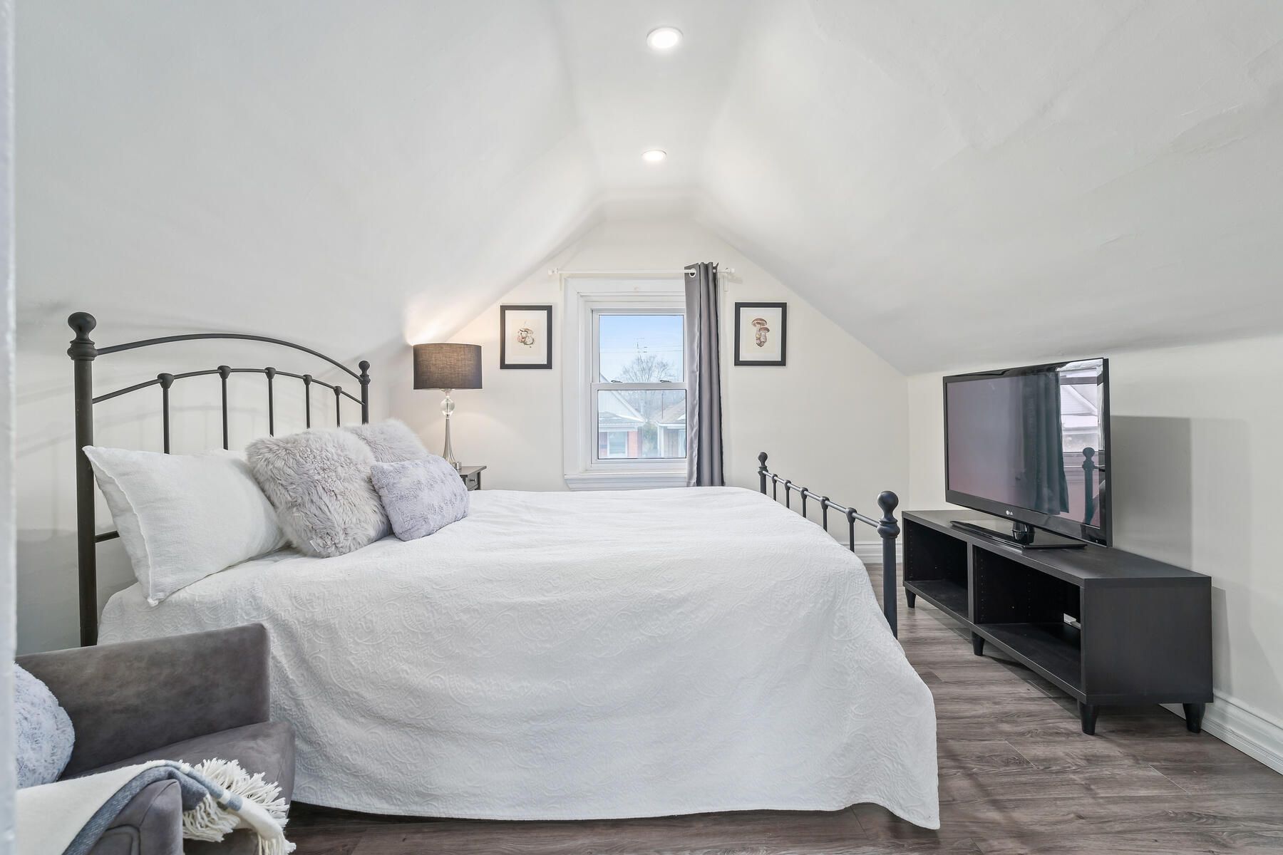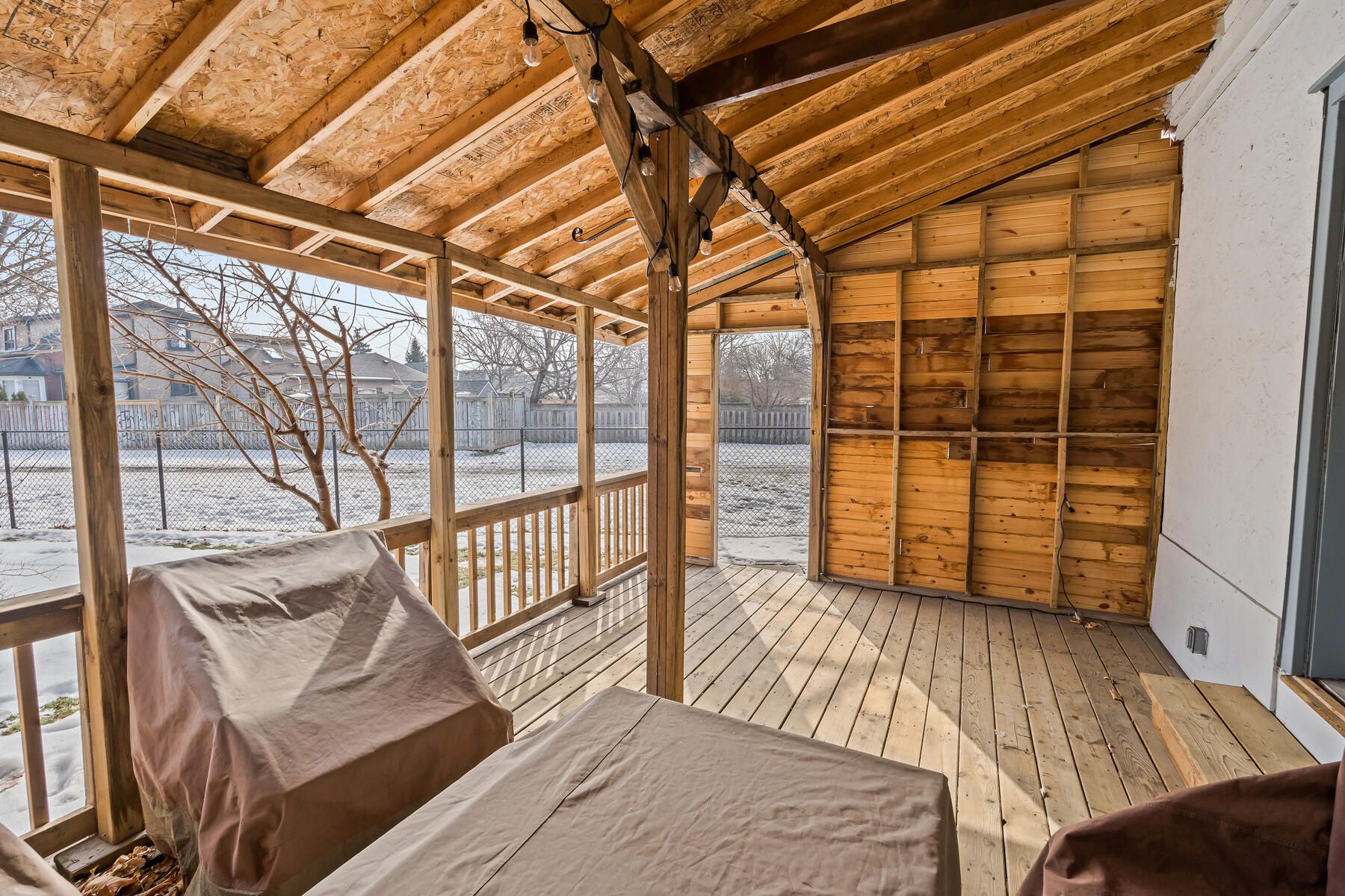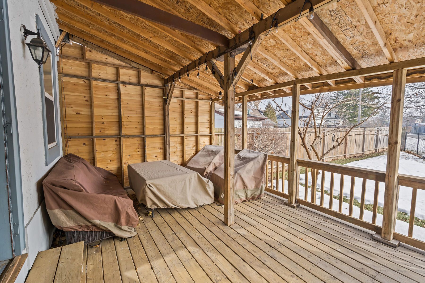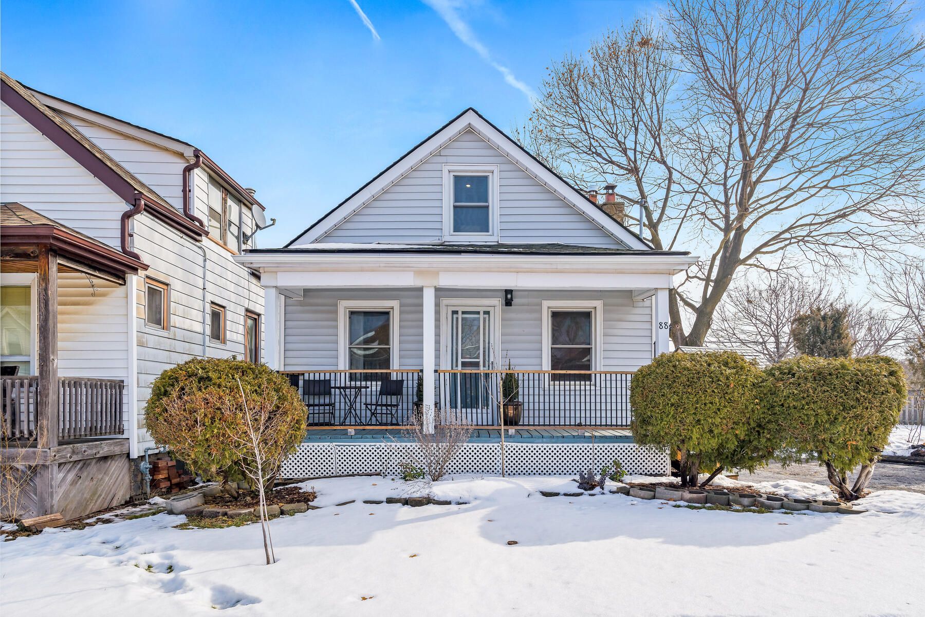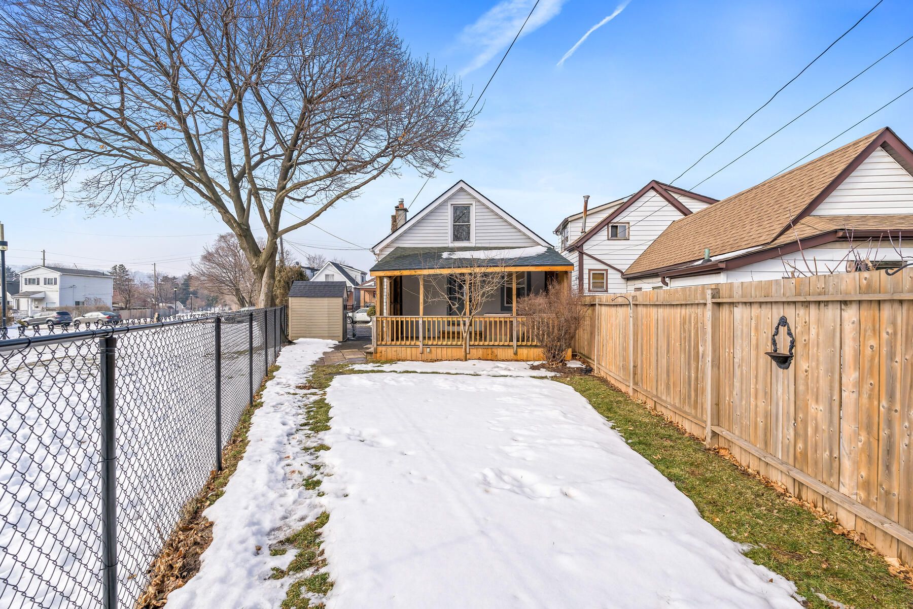 Charming, updated, and move-in ready, this detached freehold is ideal for first-time buyers or investors. This well-maintained 1. 5-storey home offers 2 bedrooms, 1 bathroom, and 2 parking spots. While preserving its original character, the home has been thoughtfully renovated with modern finishes and key mechanical updates for peace of mind. The carpet-free interior features laminate flooring throughout and a bright living area with beadboard paneling, a newer ceiling (2020), and puck lights (2020) overlooking the covered, updated front porch (2025). The refreshed kitchen offers newer cabinetry (2021), a breakfast area, updated countertops (2021), a ceramic backsplash, a double sink, and a walkout to the updated covered rear deck (2025) with a new chain-link fence (2021) and a storage shed (2023). The main floor also includes a bedroom with a newer closet and front yard view, a convenient 3-piece bathroom, and a laundry area. Upstairs is a private primary bedroom beside a versatile sitting room perfect for a home office, reading nook, or dressing space, complete with an added double closet (2022) and updated puck lighting (2020). The full basement provides excellent storage along with numerous infrastructure improvements. The driveway comfortably fits two vehicles with bonus flexible space. Extras: updated wiring (esa certified - 2020), upgraded water pipes (2022), pvc sewer stack (2023), regrading (2025), and furnace (2020). Located beside the pipeline trail, and minutes to shops, cafés, schools, gage park, quick access to downtown hamilton, the beach, and the qew.
