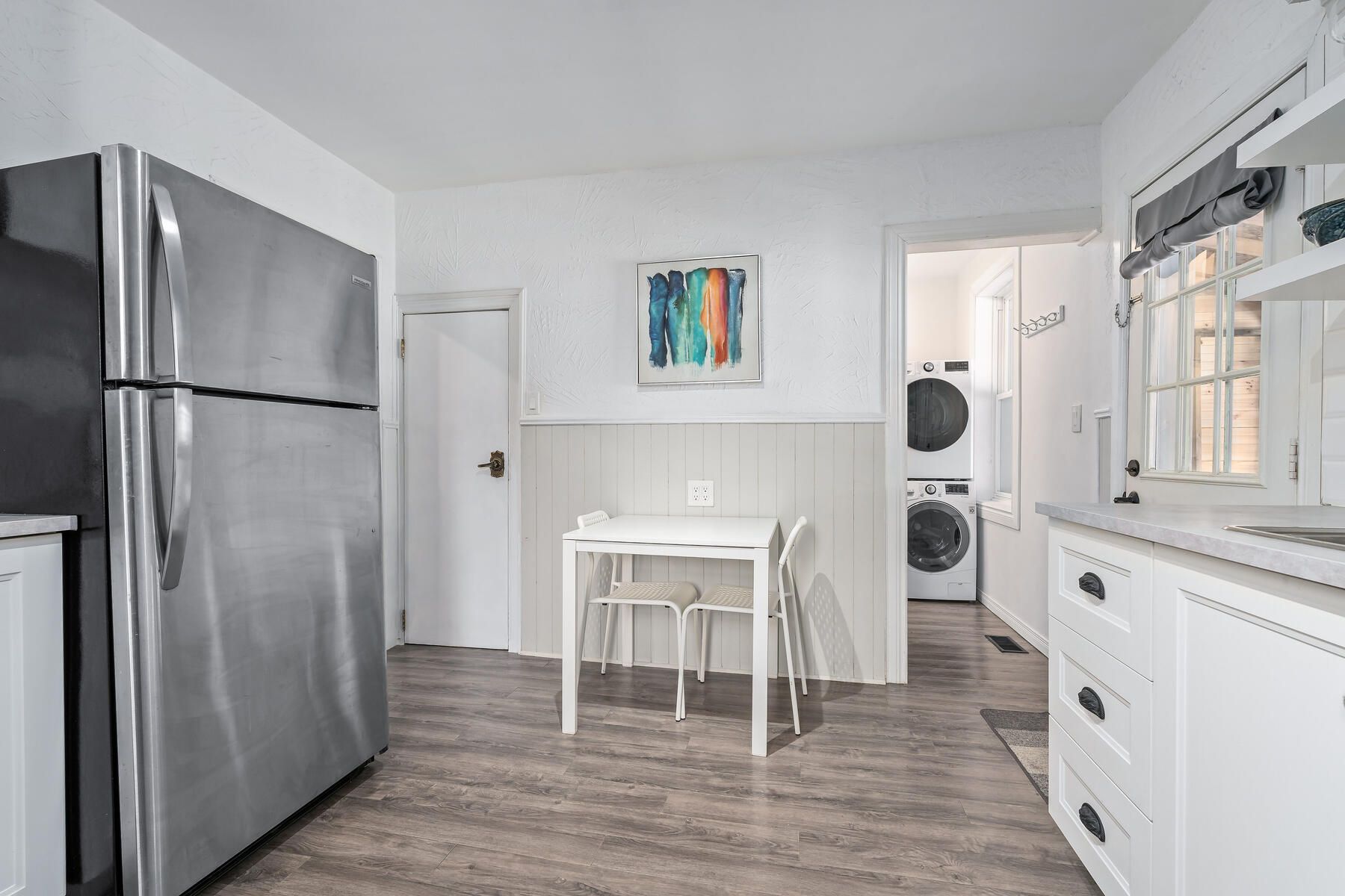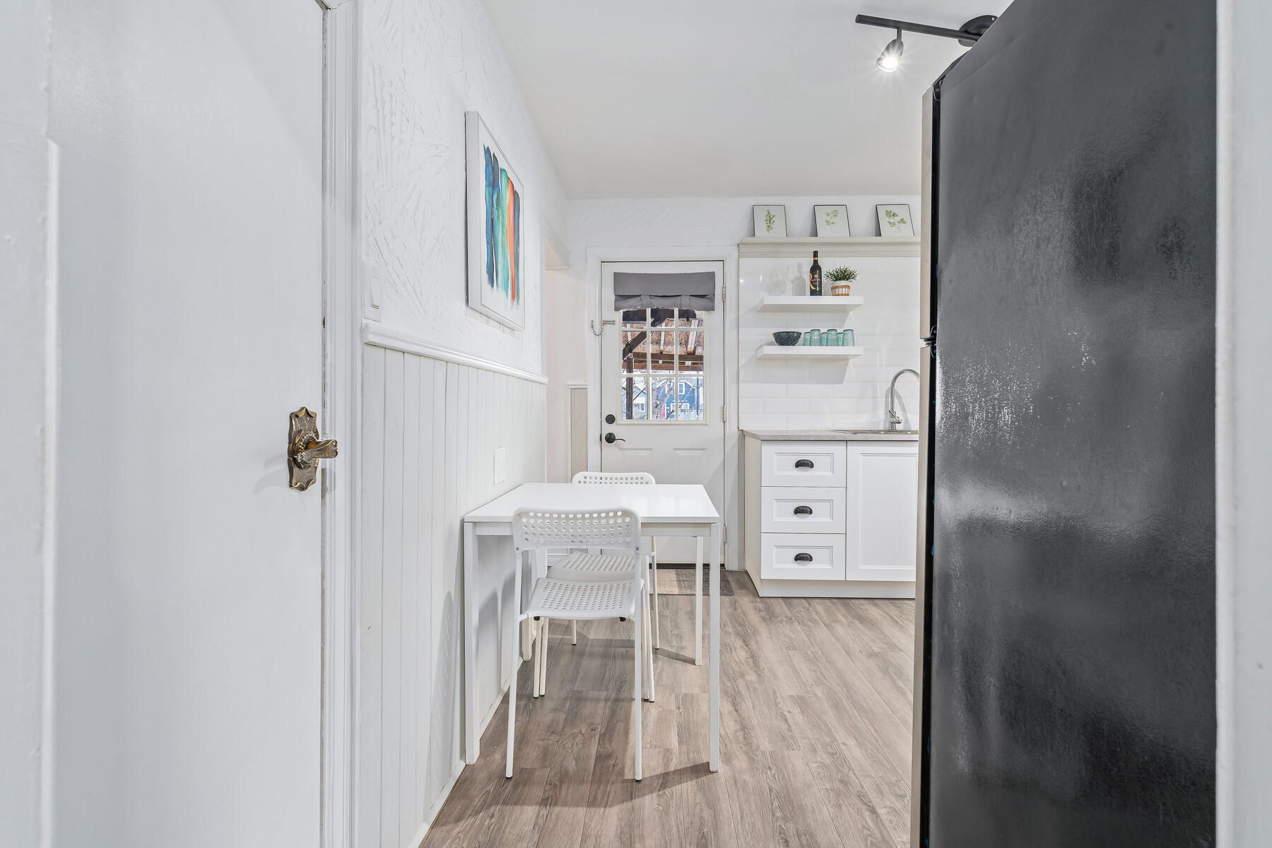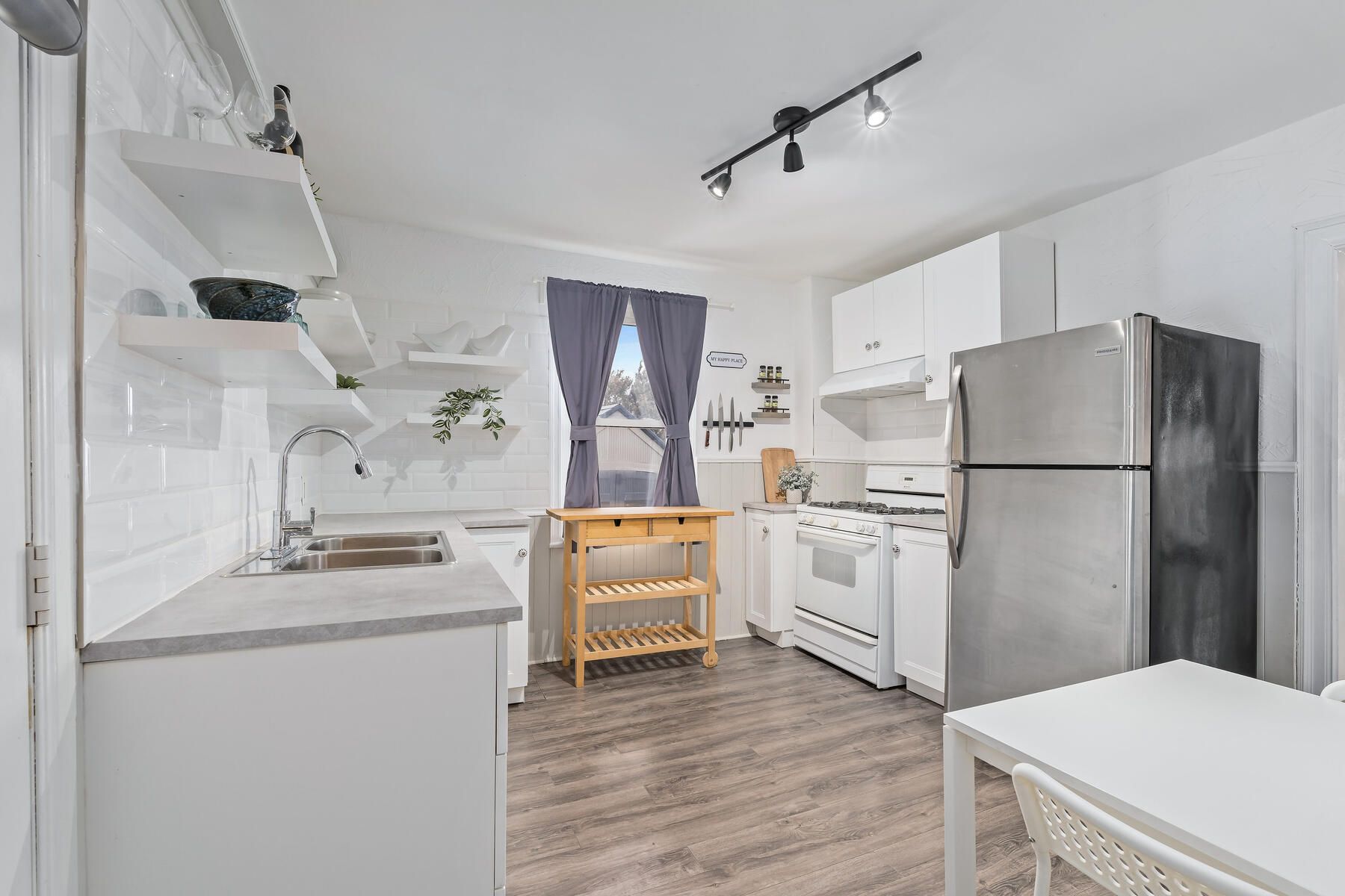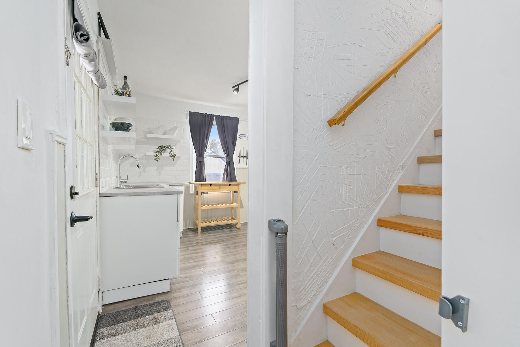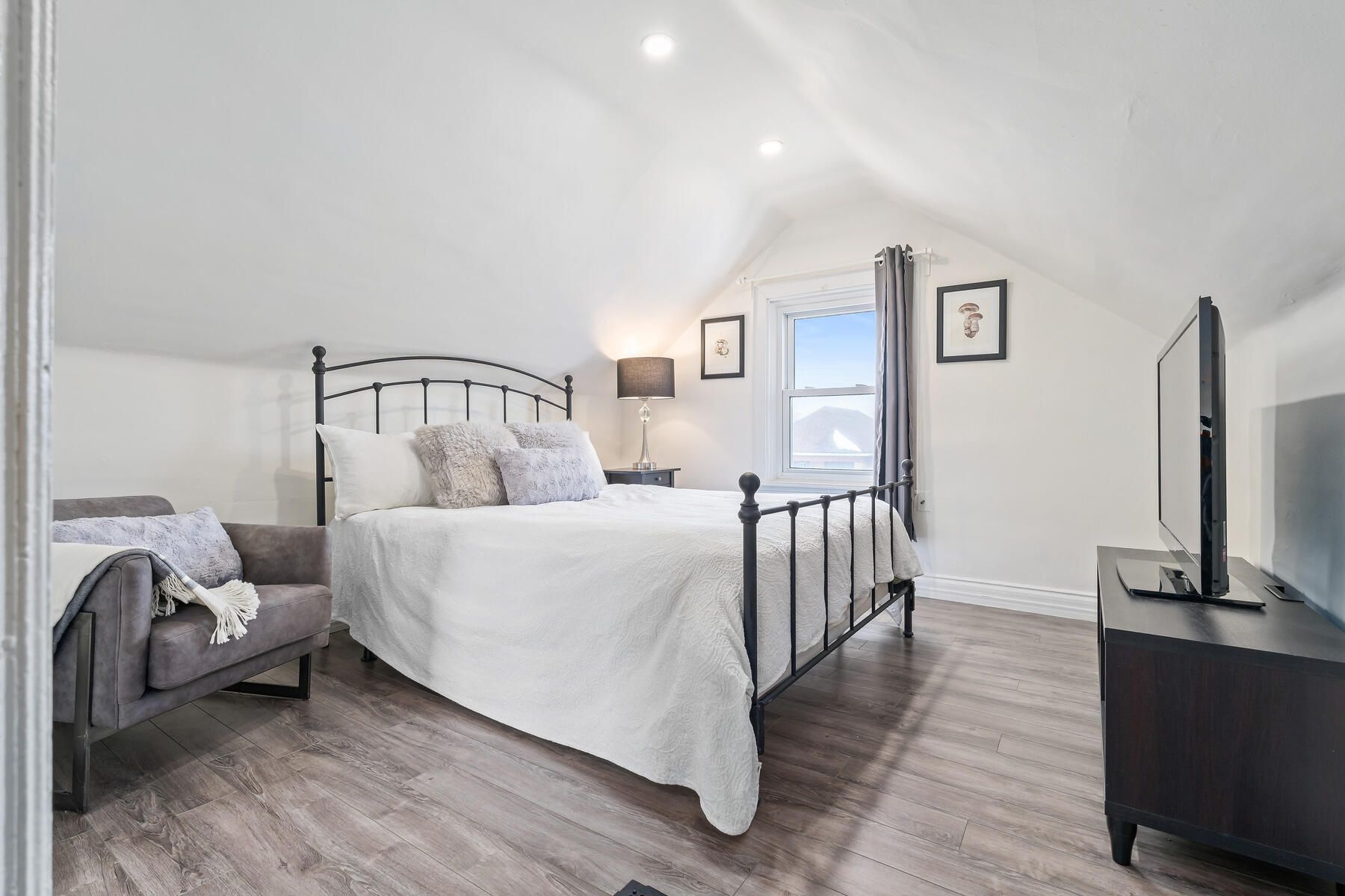 Charming, updated, and move-in ready, this detached freehold is ideal for first-time buyers or investors. This well-maintained 1. 5-storey home offers 2 bedrooms, 1 bathroom, and 2 parking spots. While preserving its original character, the home has been thoughtfully renovated with modern finishes and key mechanical updates for peace of mind. The carpet-free interior features laminate flooring throughout and a bright living area with beadboard paneling, a newer ceiling (2020), and puck lights (2020) overlooking the covered, updated front porch (2025). The refreshed kitchen offers newer cabinetry (2021), a breakfast area, updated countertops (2021), a ceramic backsplash, a double sink, and a walkout to the updated covered rear deck (2025) with a new chain-link fence (2021) and a storage shed (2023). The main floor also includes a bedroom with a newer closet and front yard view, a convenient 3-piece bathroom, and a laundry area. Upstairs is a private primary bedroom beside a versatile sitting room perfect for a home office, reading nook, or dressing space, complete with an added double closet (2022) and updated puck lighting (2020). The full basement provides excellent storage along with numerous infrastructure improvements. The driveway comfortably fits two vehicles with bonus flexible space. Extras: updated wiring (esa certified - 2020), upgraded water pipes (2022), pvc sewer stack (2023), regrading (2025), and furnace (2020). Located beside the pipeline trail, and minutes to shops, cafés, schools, gage park, quick access to downtown hamilton, the beach, and the qew.
