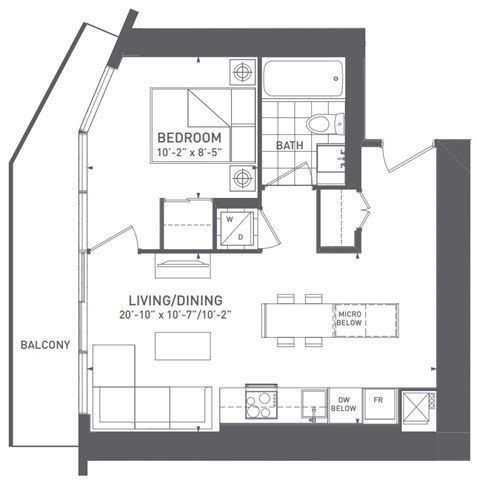 • Spacious 1 bedroom unit with a practical 518 sq ft layout.