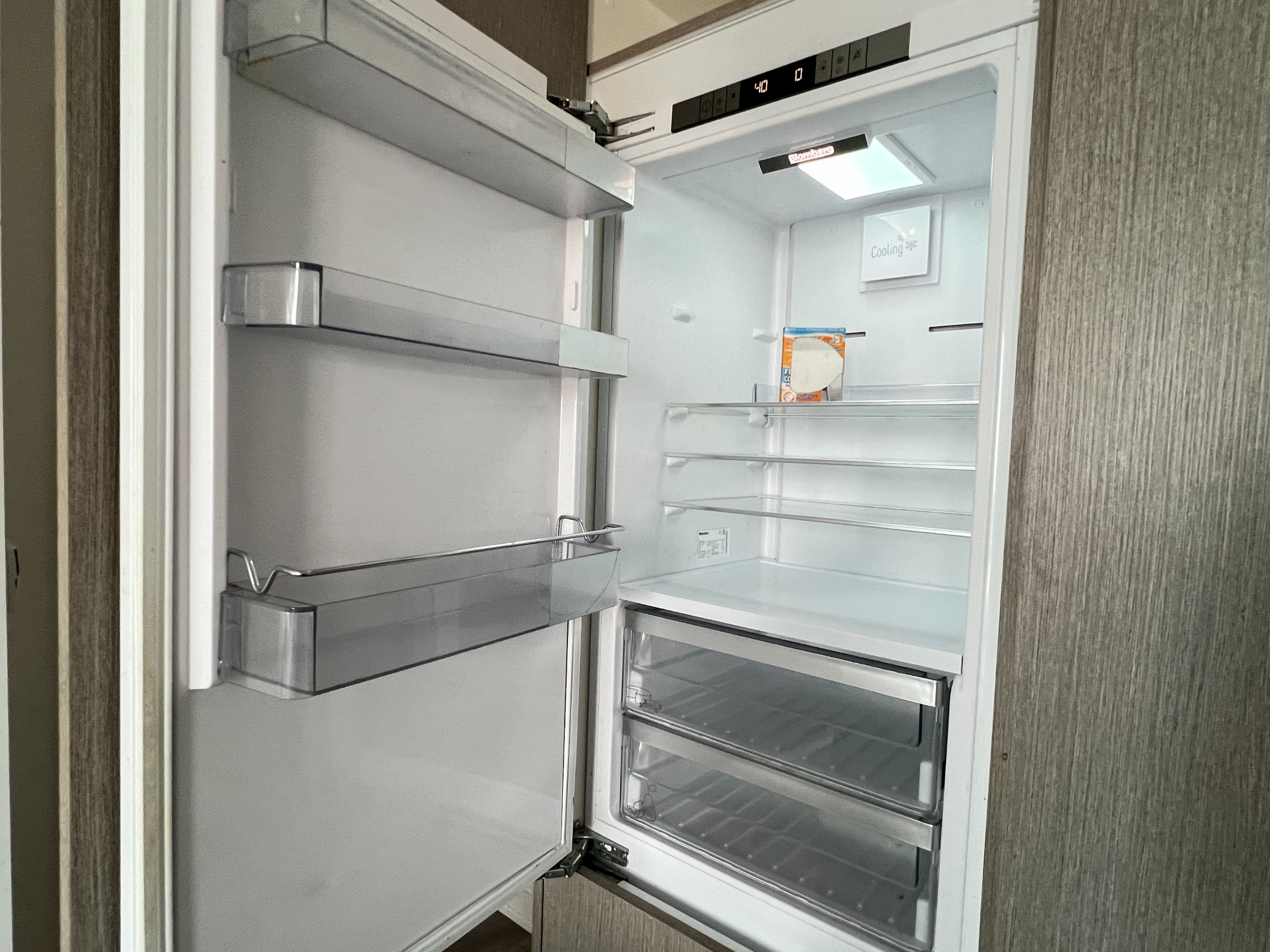 • Modern kitchen featuring granite countertops and built-in stainless steel appliances.
