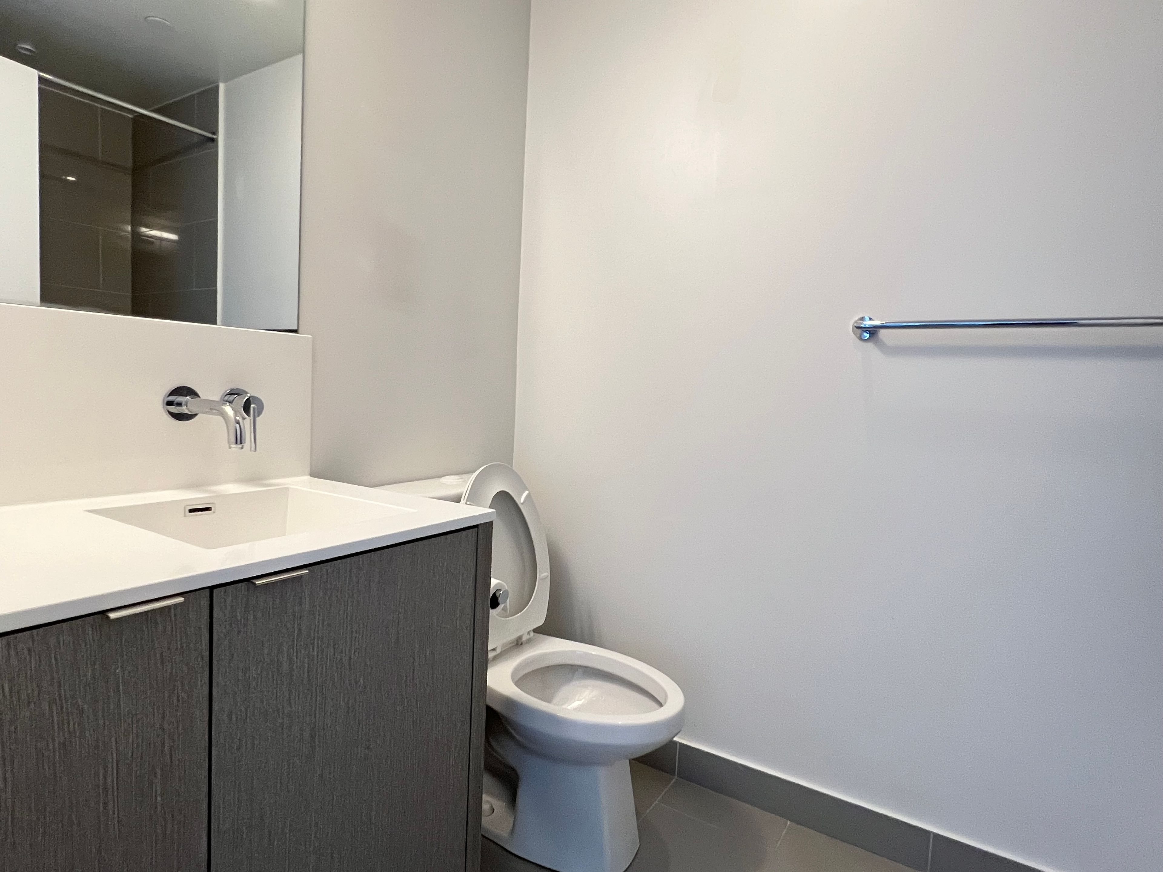 • Bright and airy with floor-to-ceiling windows, no carpeting.