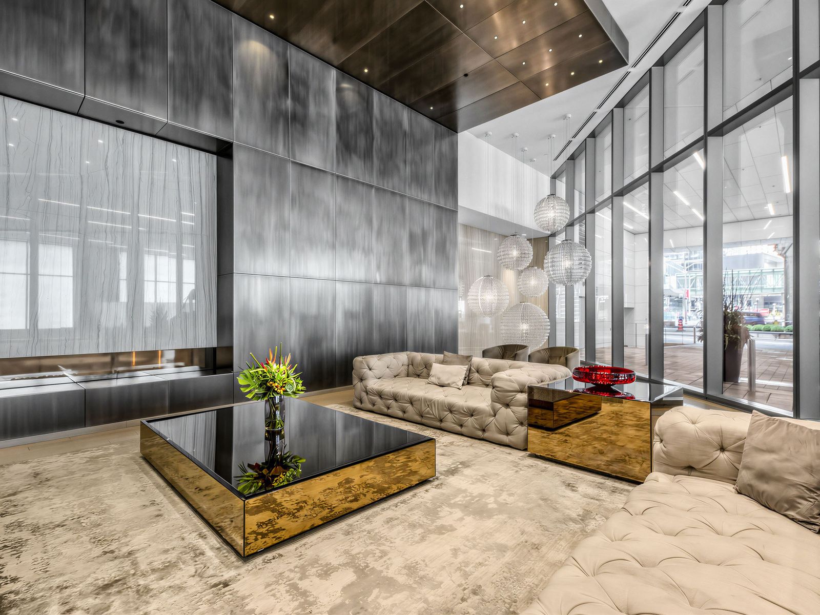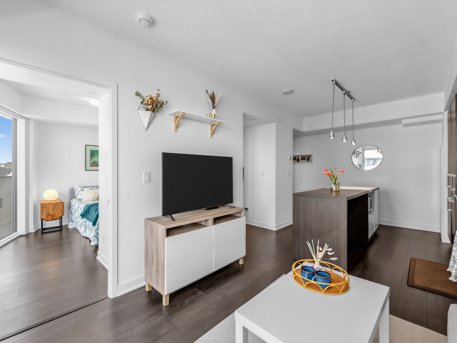 • Bright open-concept one-bedroom suite with floor-to-ceiling windows.