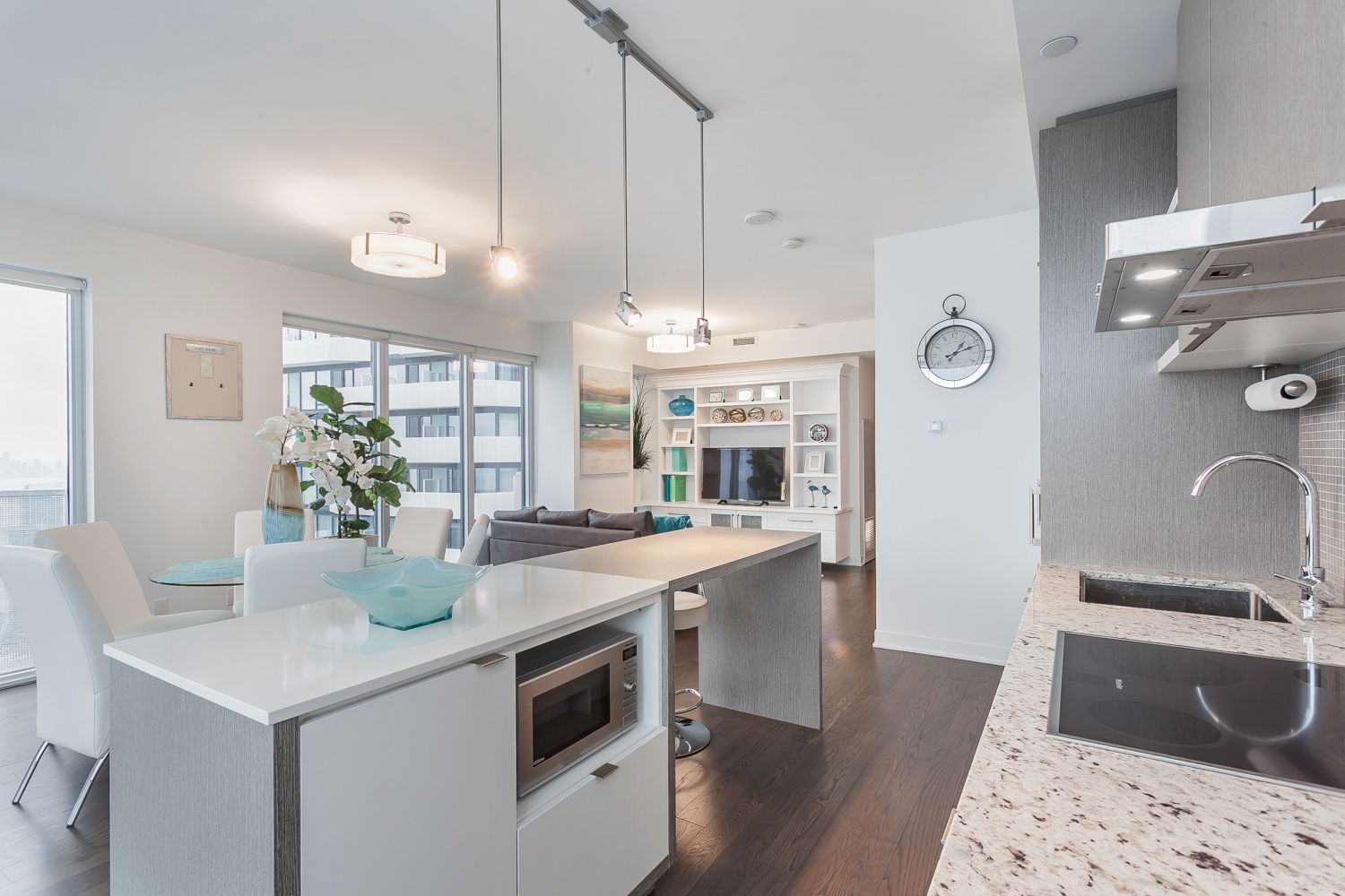• Open concept design with modern finishes and stainless steel appliances.