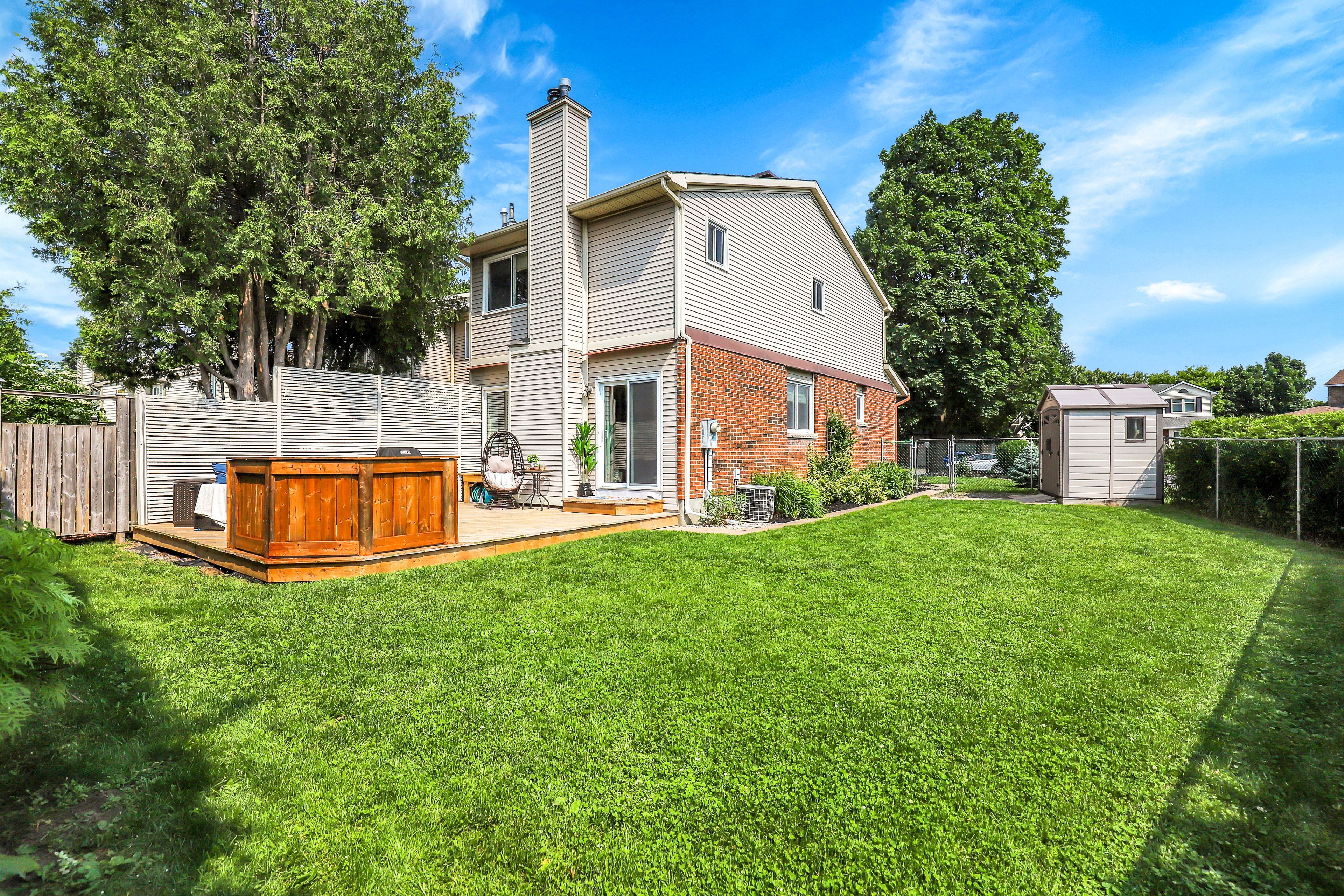 A stunner! Show stopper! Absolutely magnificent! This beautiful 3 bedroom, 3 bathroom end unit home sits on a quiet street in a lovely neighbourhood. Boasting one of the largest lots you'll see on a townhome, it's like a park in your own backyard. The summertime flowers and hedges provide beauty and privacy. Inside you'll see the breathtaking new kitchen (2024), the ideal spot for entertaining or some serious cooking. The main floor living space features a wood burning fireplace and access to the backyard oasis. A formal dining space, 2pc bathroom, and foyer with inside entry to the garage complete the main level. Upstairs is the huge primary bedroom with 2pc ensuite and walk in closet. An additional 2 bedrooms and full bathroom completes the upper level. On the lower level there is a gorgeous family room, practical and functional laundry room, and great storage. This one is a must see! 48hr irr