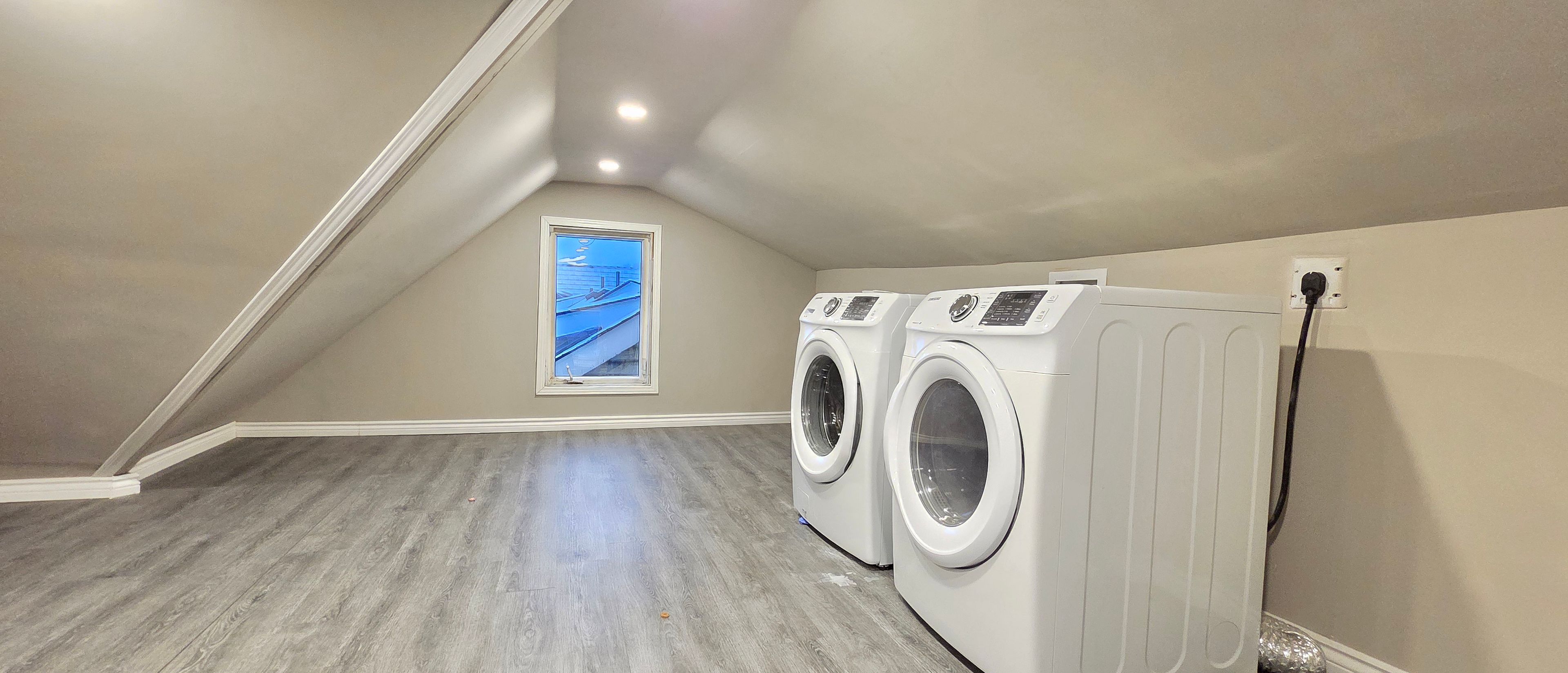 This stunning detached home is located in the heart of the crown point neighbourhood in east hamilton. Featuring 3+1 bedrooms and 3 bathrooms, including a finished 3rd-floor loft, this beautifully updated residence offers ample space and modern amenities. The open-concept living/dining room flows into a fully modernized kitchen with porcelain-tiled floors, granite countertops, and stainless steel appliances. The main floor boasts hardwood floors, while the upper-level features laminate flooring. Enjoy outdoor entertaining on the large deck in the fully fenced backyard. The basement, with a separate entrance, kitchen, and 3-piece bathroom, includes separate laundry for additional income. The finished 3rd-floor loft can be used as an additional bedroom or office space. With 3-car parking & paved driveway, this home offers plenty of parking.