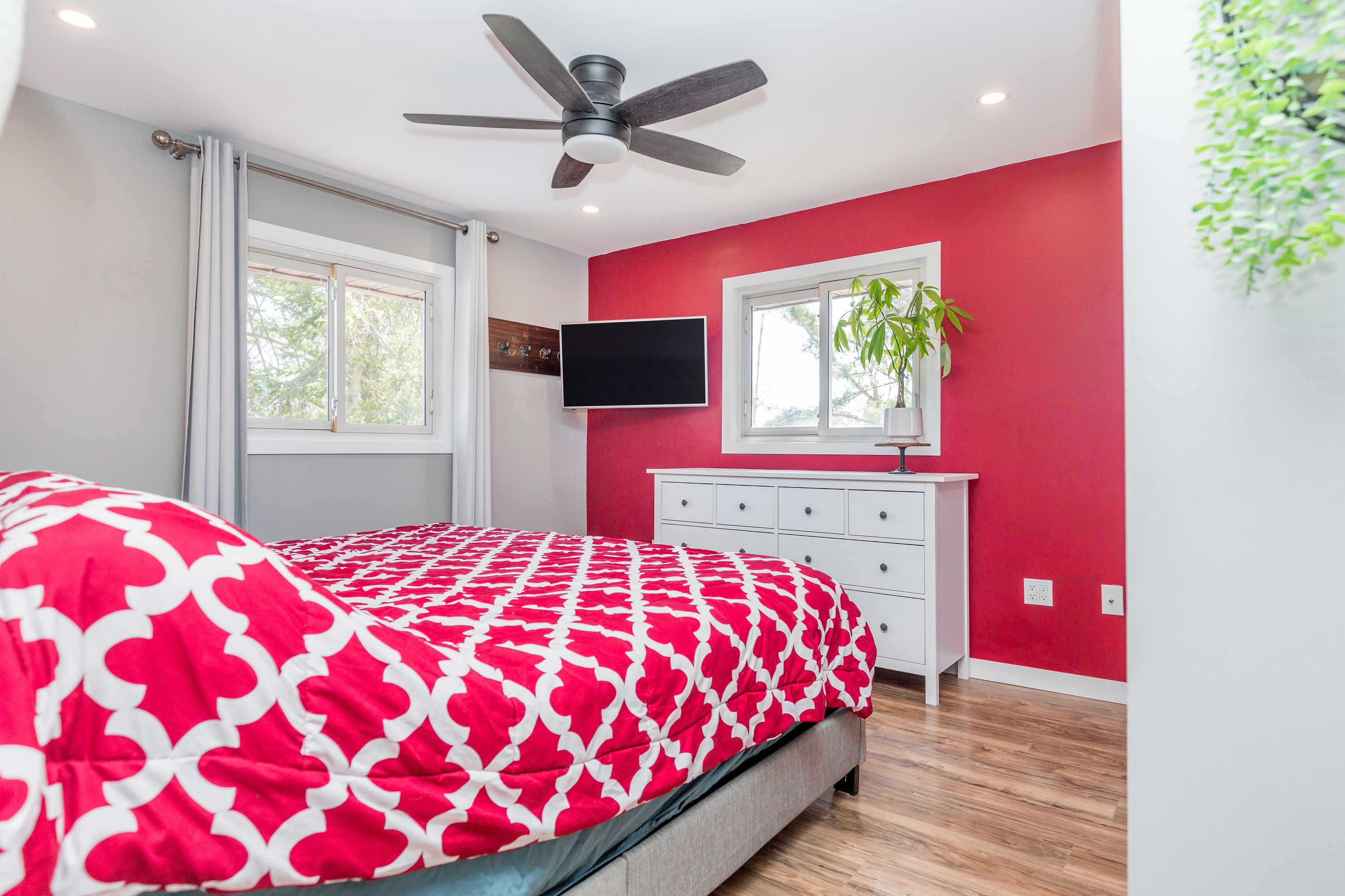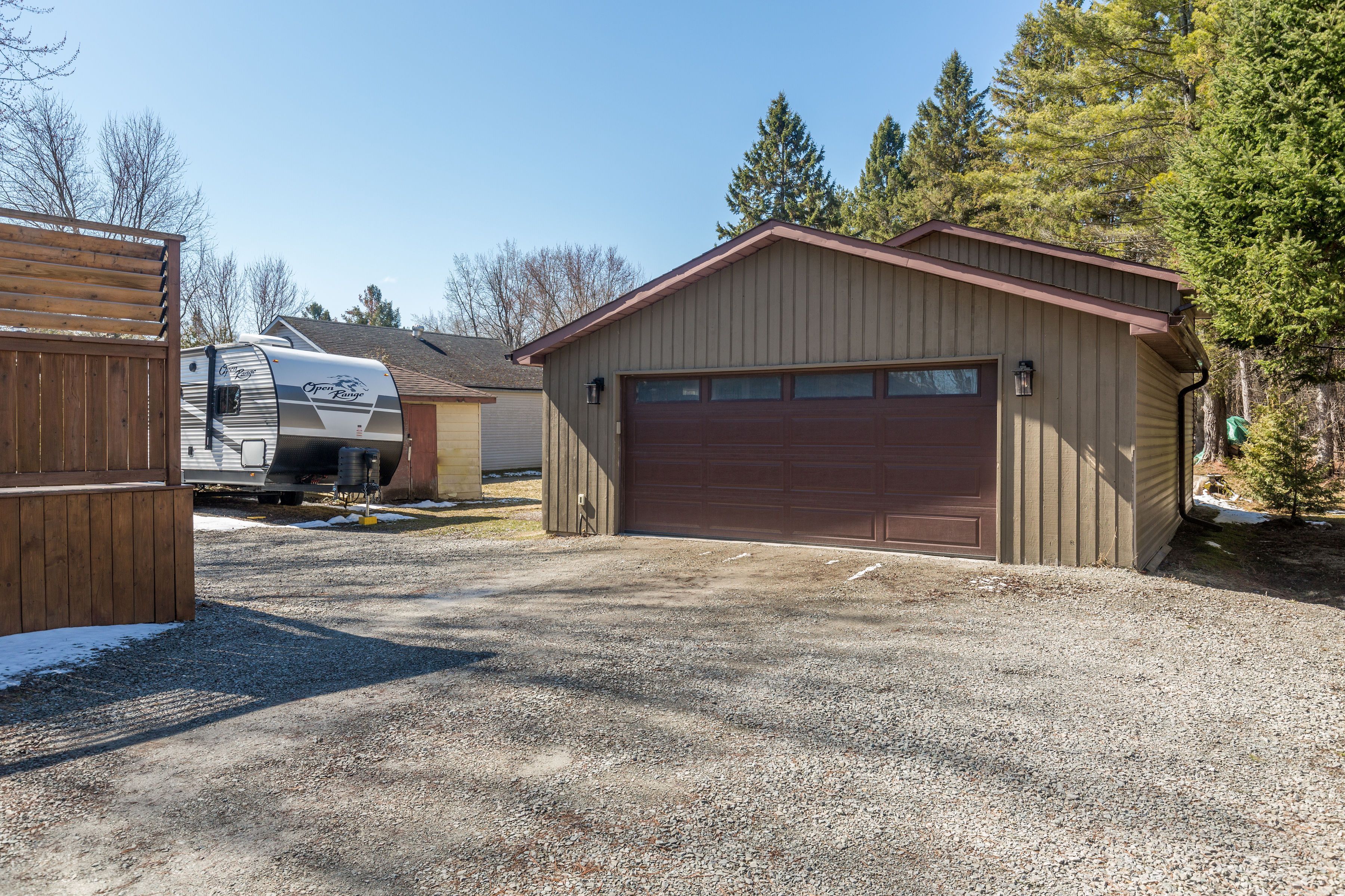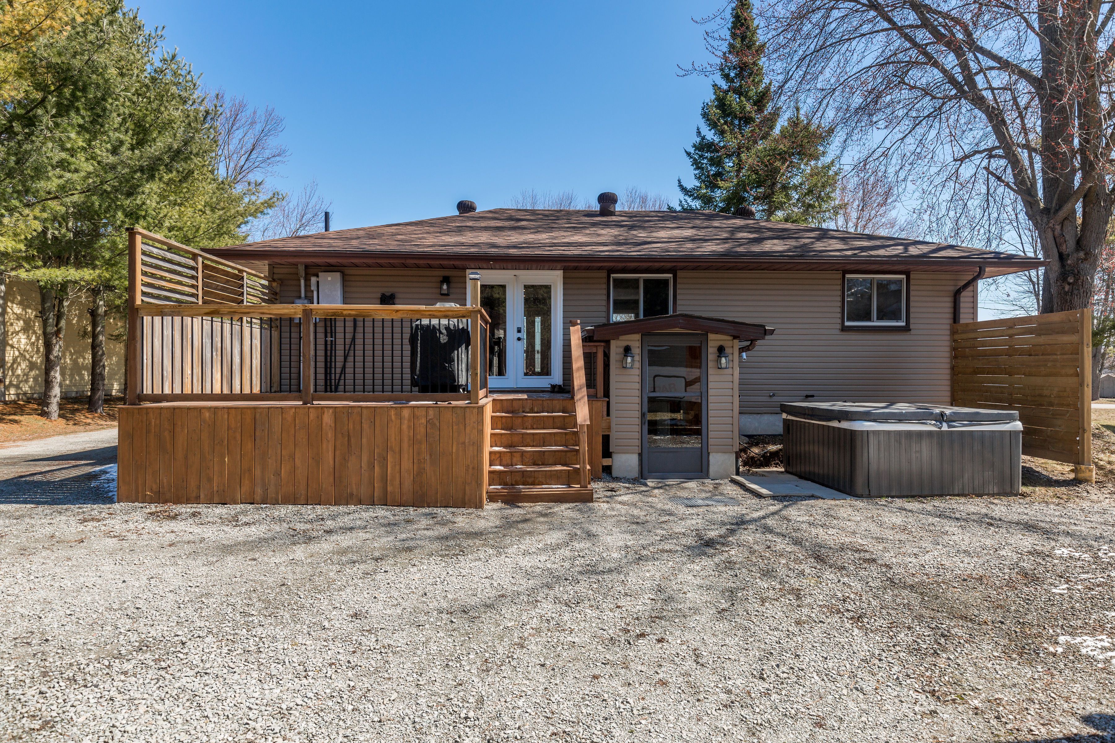 • Large treed lot with a fire pit and deck for entertaining.