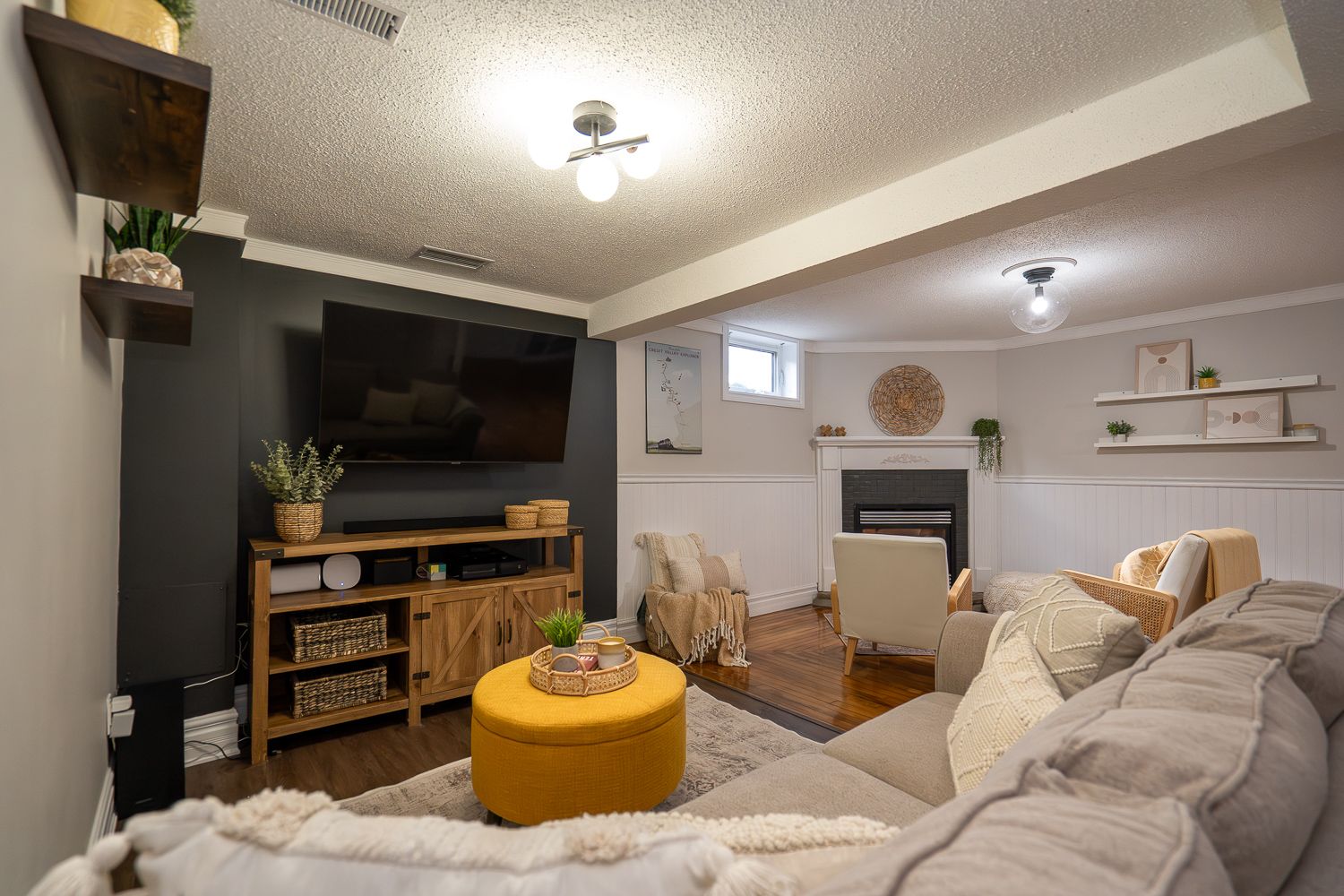 • Cozy family room downstairs with a gas fireplace and additional bedrooms.
