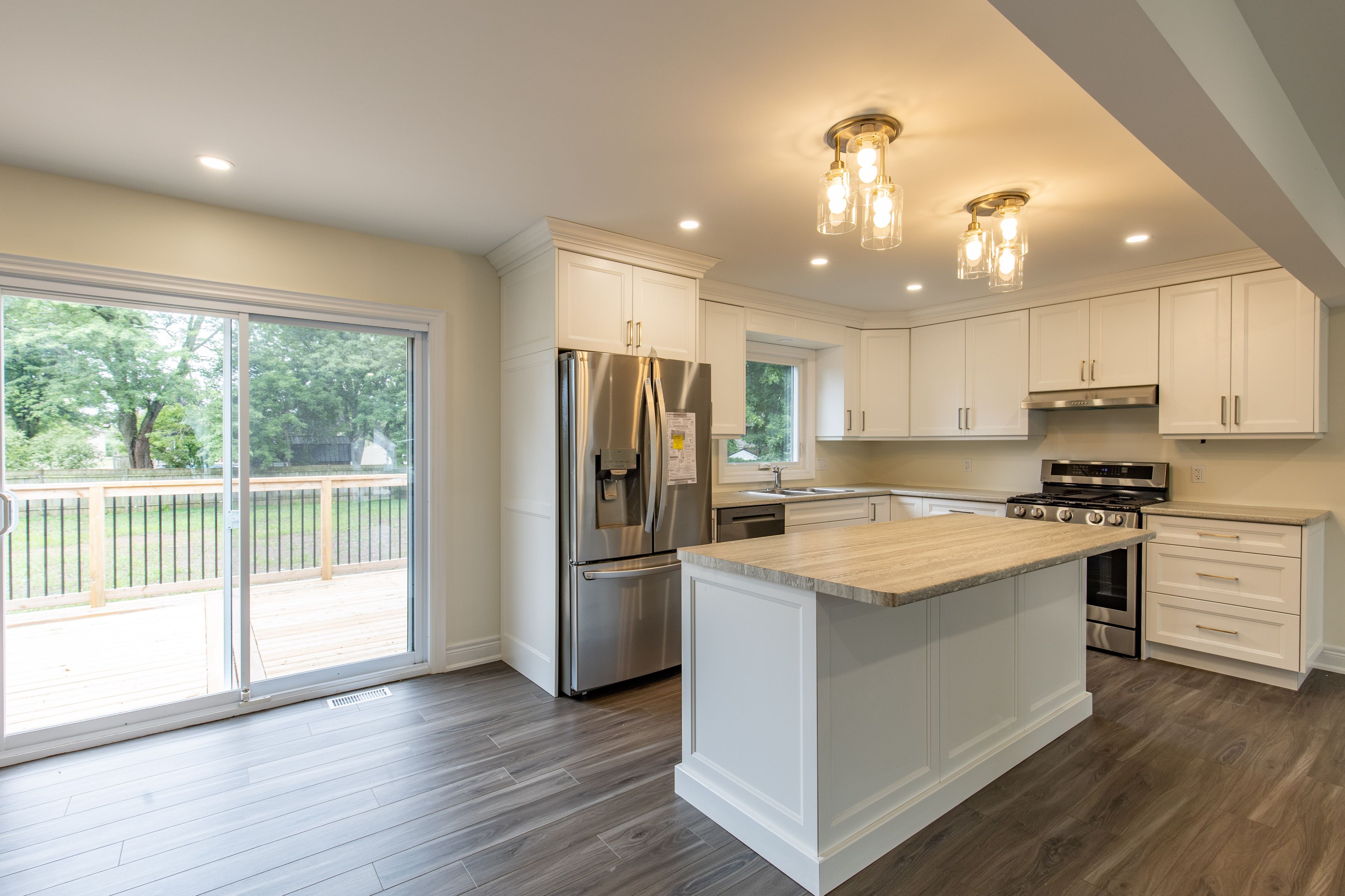 Just like new!!! Fabulous renovated home finished top to bottom. You are going to love the natural flow of this home. The main floor open concept kitchen/livingroom/dining area with a centre island allows for conversation while prepping your meals or keeping an eye on the kids! Brand new appliances and luxury flooring. Note that this main floor great room has been divided by cubicasa measuring to give you an idea of sizes for each area. There are 2 bedrooms and a 3 pc bath on this level. Off of the kitchen there is a spacious 17' x 11'6 deck overlooking the awesome 173' deep pool sized yard. Upstairs there is a large bedroom with a gorgeous ensuite offering a soaker tub! What an oasis! The lower level has a large recreation room, den, 2 pc and spacious bright laundry room. This home is in a wonderful location within walking distance to two shopping centres that offer groceries, shopping and restaurants. There are two elementary schools close by too! Nothing to do buy move in!