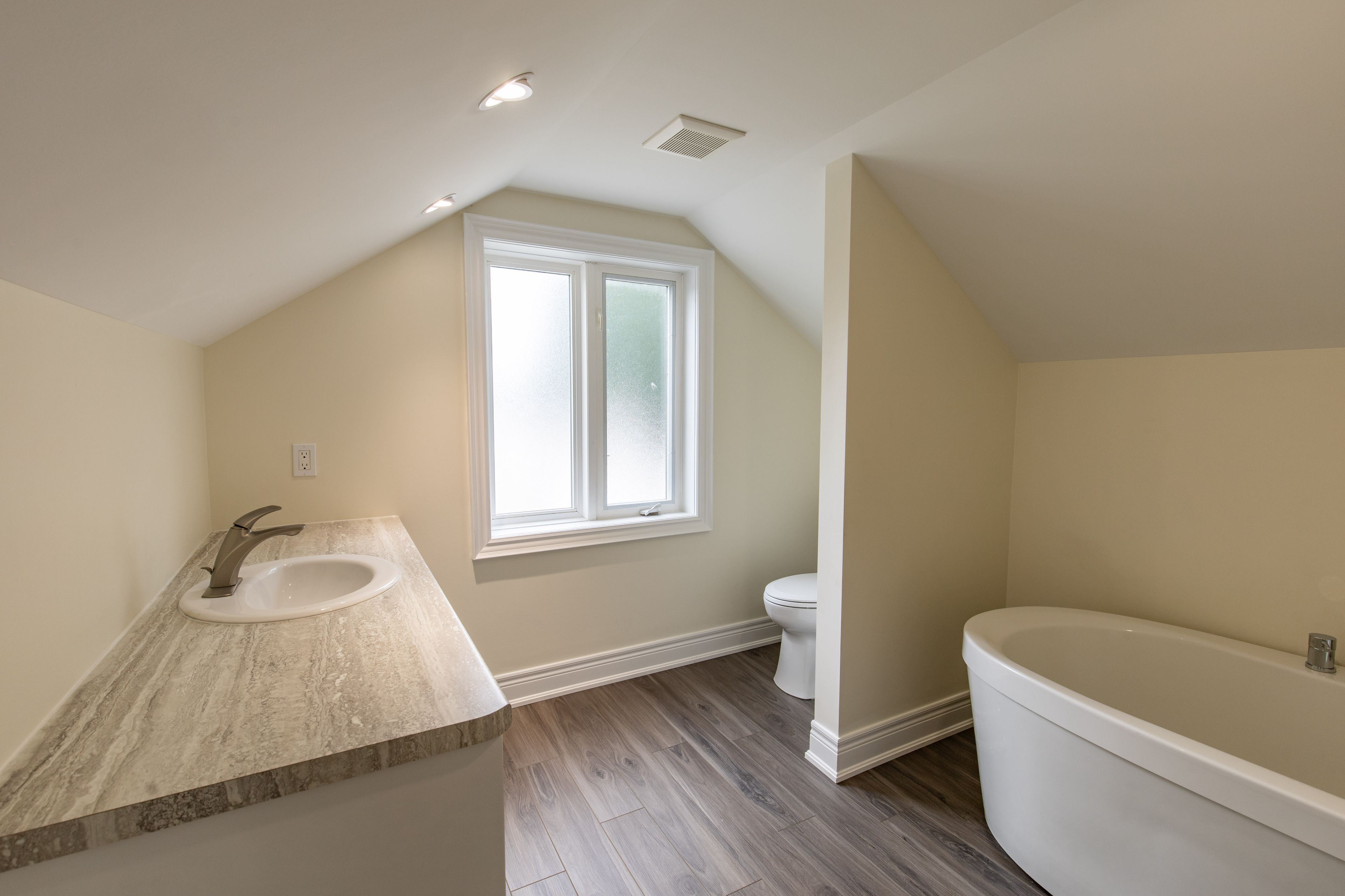 • Upstairs bedroom with a luxurious ensuite and soaker tub for relaxation.