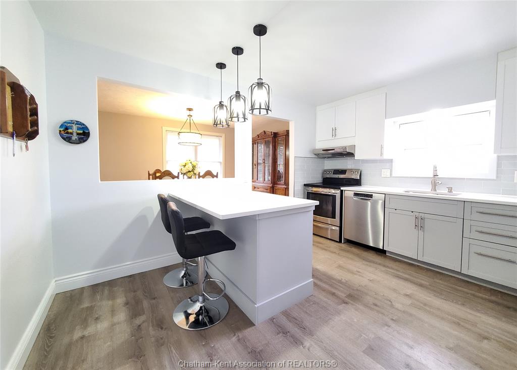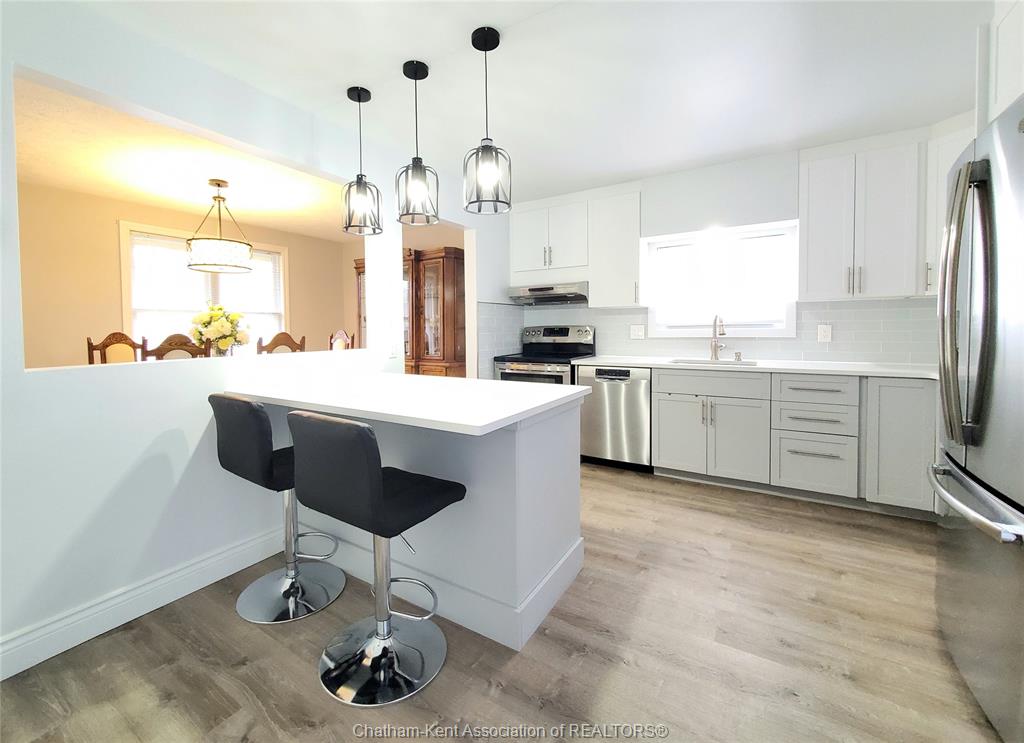 Welcome to this beautifully updated 3+1 bedroom, 2-bath raised rancher, situated in a desirable northside neighborhood close to all amenities, scenic walking trails, and recreation. This move-in-ready home offers the ideal blend of style, functionality, and comfort for today’s modern family. The bright and inviting main level features durable vinyl plank flooring, new trim and interior doors, and a thoughtfully designed layout. The spacious living room flows seamlessly into a formal dining area—perfect for hosting family gatherings or entertaining guests. The kitchen is both stylish and practical, complete with quartz countertops, a central island, and ample cabinetry. Upstairs, you’ll find three generous bedrooms and a beautifully updated 4 pc bath, while the lower level offers incredible flexibility with an additional bedroom, full 3 pc bath and a welcoming living space, ideal for multi-generational living, guests, a private retreat, or additional income. Large windows and a well-designed outside entry provide plenty of natural light and a warm, inviting feel throughout. Major updates include furnace, central air, and shingles, offering peace of mind for years to come. Outside, enjoy a fully fenced rear yard, perfect for kids, pets, or outdoor entertaining. Spacious double-car garage for added convenience. A truly turn-key home in a fantastic location—just move in and enjoy!