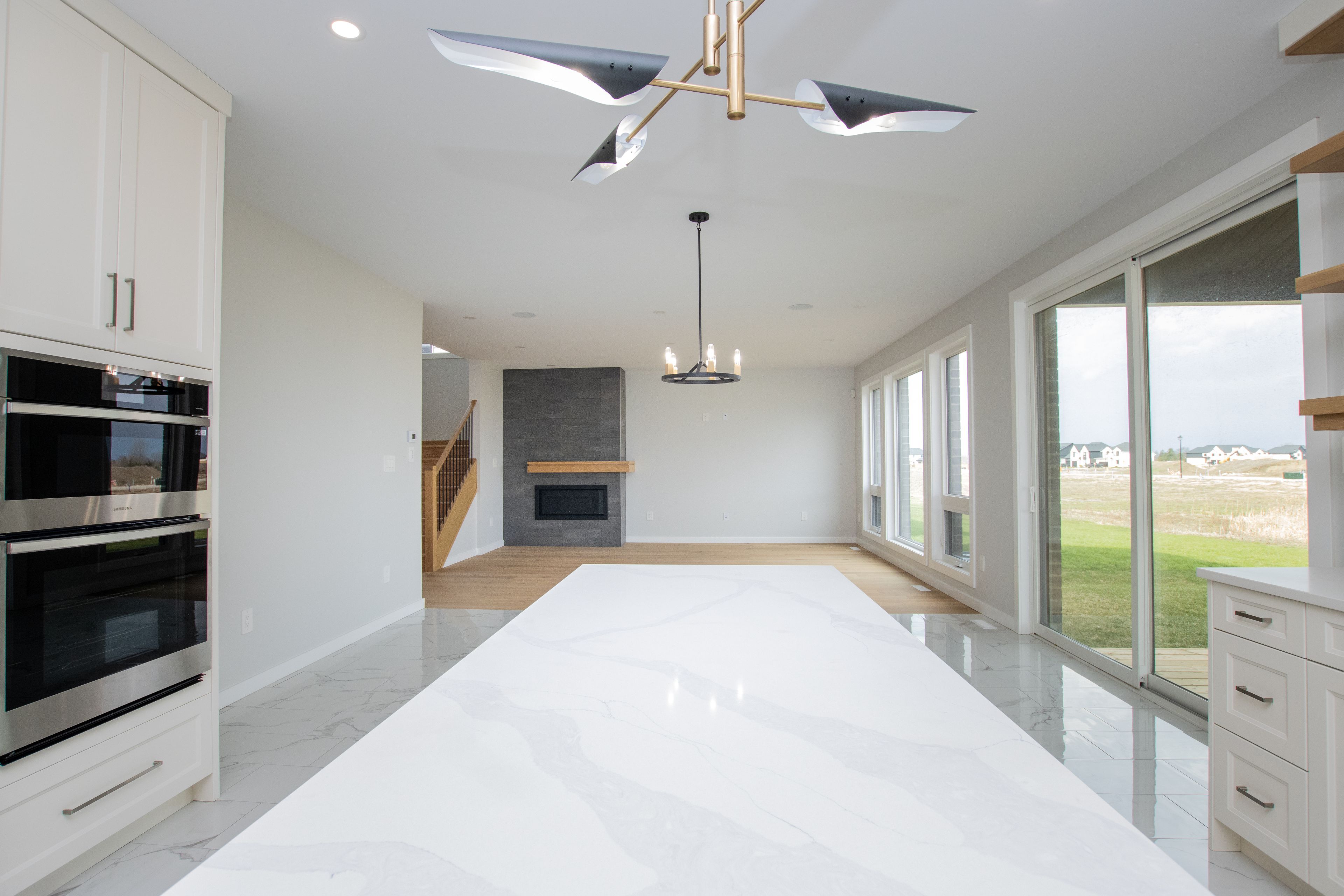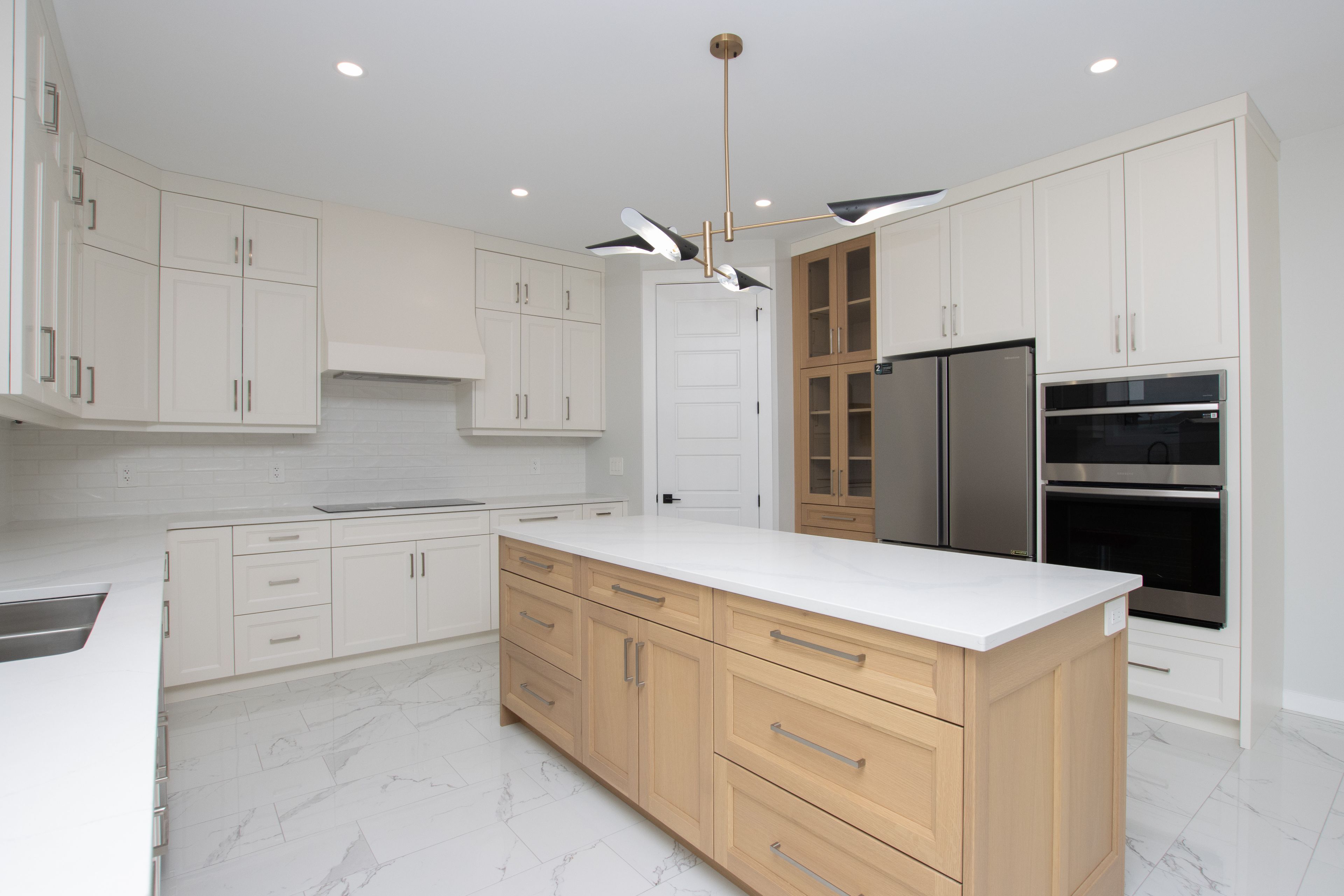 • Modern kitchen features quartz counters, walk-in pantry, and appliances included.