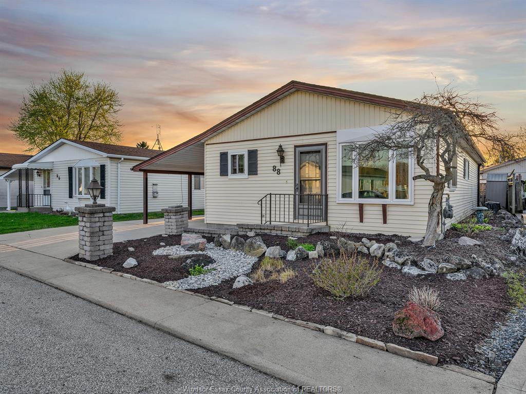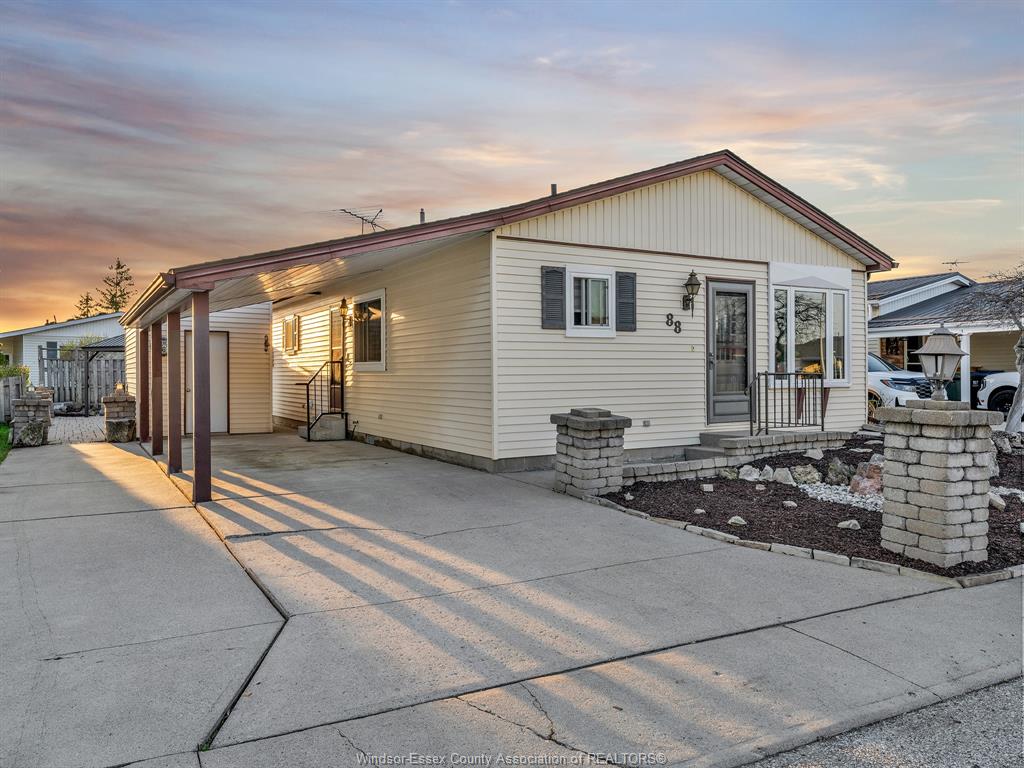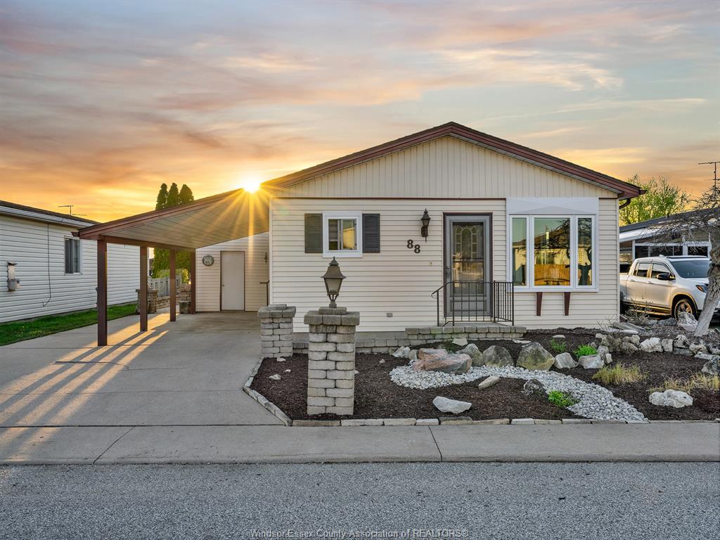 Welcome to 88 parkside drive in hidden creek. Ideal for first-time buyers or downsizers, this home offers low-maintenance living with a fully landscaped yard, attached carport, and powered shed. Inside features an updated kitchen and three spacious bedrooms, including a primary suite with walk-in closet and access to a private sunroom. Monthly fees of $155 cover snow removal, garbage, water, and park amenities.
