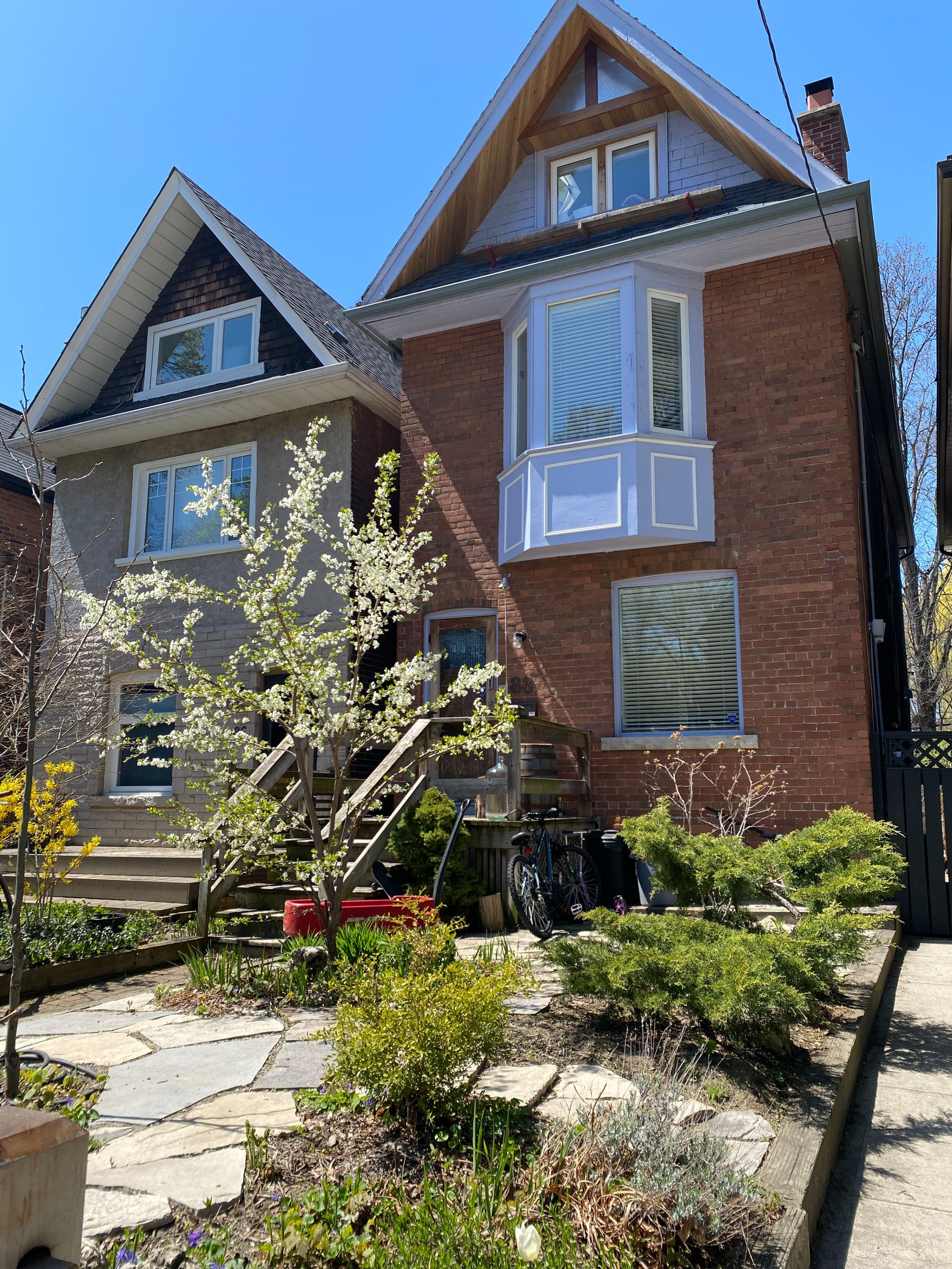 Welcome to 88 prust an updated, detached gem in the heart of leslieville. This impressive 2. 5-storey home is tucked away on one of the neighbourhood's most cherished tree-lined streets and offers the perfect blend of charm, character, and modern living. A beautifully landscaped front yard with interlocking stone and a plum tree creates wonderful curb appeal and a warm welcome home. Inside, the open-concept main floor is designed for effortless entertaining, featuring seemless flow between the living and dining spaces. At its heart, a cozy wood-burning fireplace creates a warm and inviting atmosphere for gatherings with family and friends. The second floor offers two well-proportioned bedrooms, while the third floor boasts a stunning loft-style space with cathedral ceilings and a walk-out to an oversized private deck overlooking the backyard, ideal as a primary retreat, office, or additional living area. A separate entrance to the finished basement provides potential for extra rental income or an in-law suite. Enjoy outdoor living with a custom brazilian hardwood deck that overlooks a lush, private, fully enclosed garden, perfect for relaxing or entertaining. Located close to excellent schools, parks, and the vibrant shops, cafés and amenities of leslieville. This home offers an exceptional lifestyle with everyday convenience on a quiet, family-friendly street. Blake street public school features a well-established french immersion program, now in its 10th year. Just steps to the trendy jones & gerrard corridor and popular local spots like left field brewery. Enjoy nearby greenwood park, offering year-round programming including swimming, skating, a figure-eight skating trail, shinny hockey, a dog park, and a playground.
