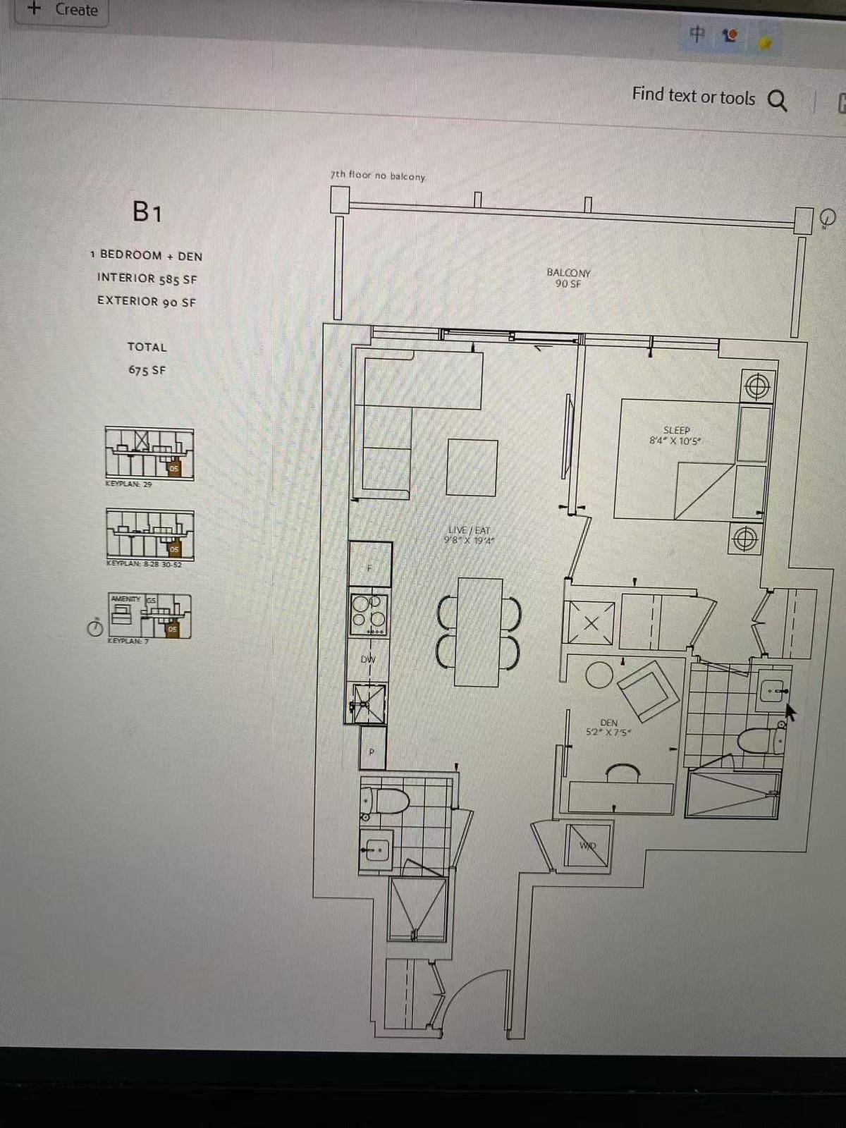 • 1 bedroom plus den, 2 bathrooms in a spacious 585 square foot unit.
