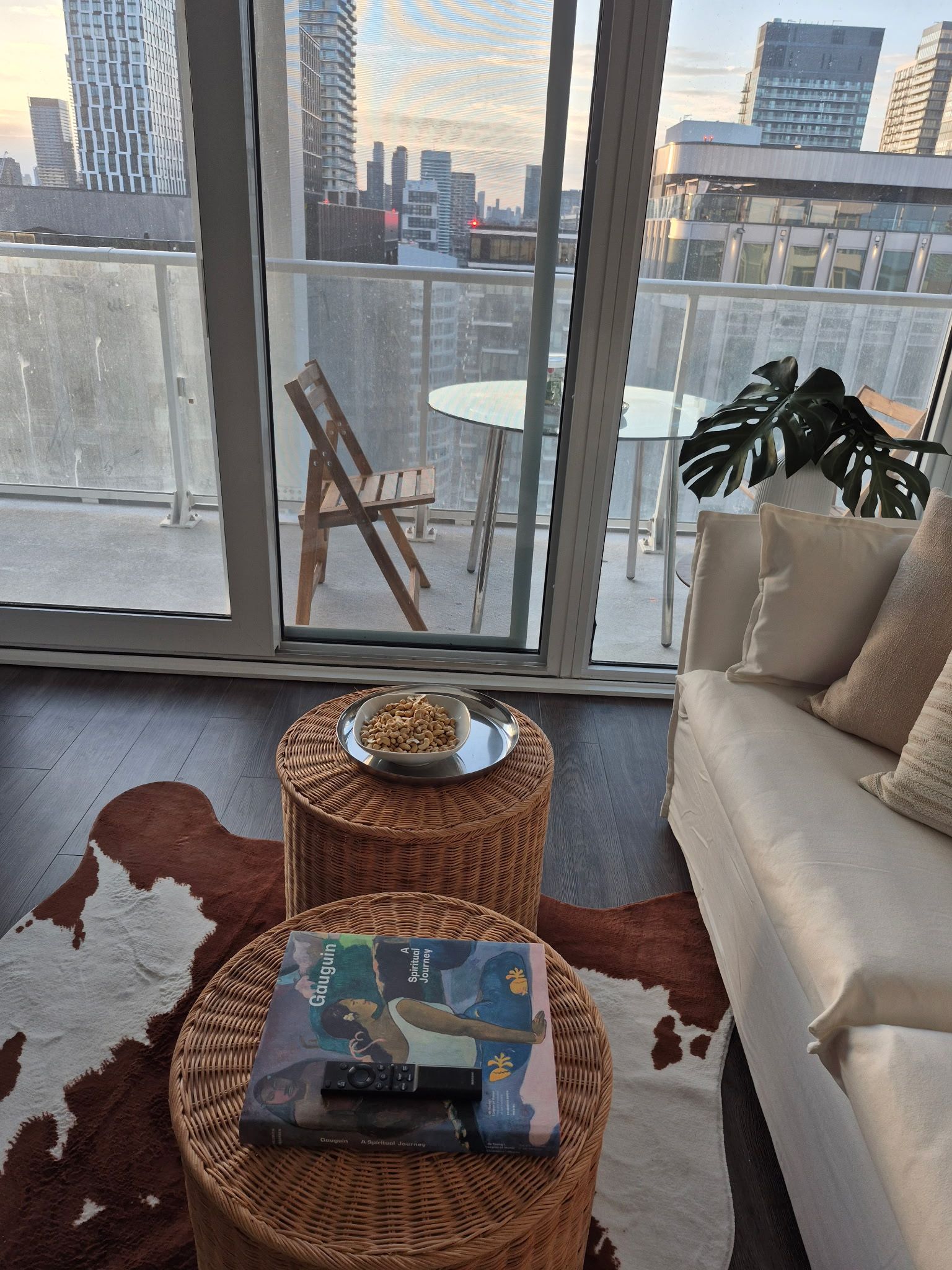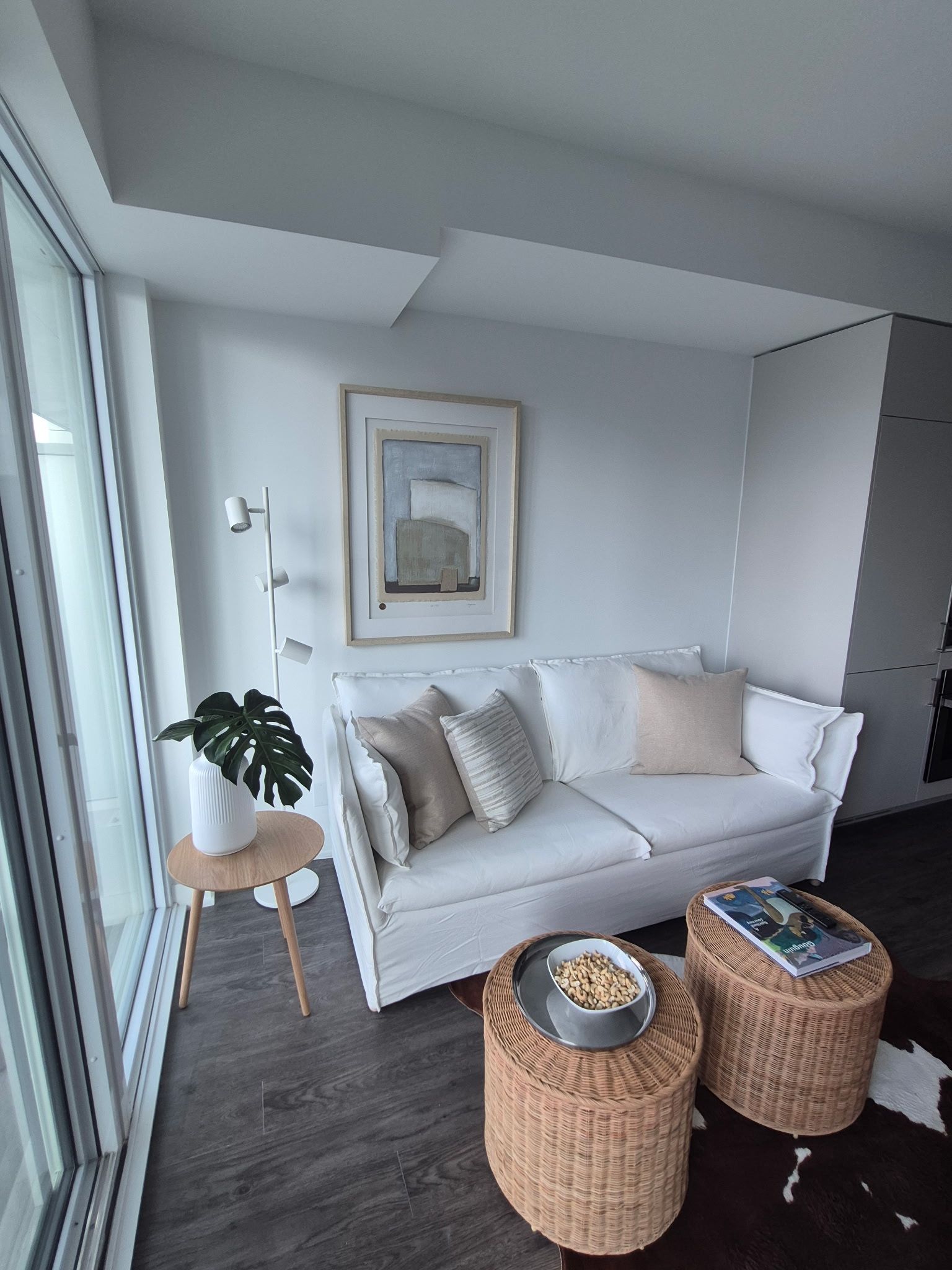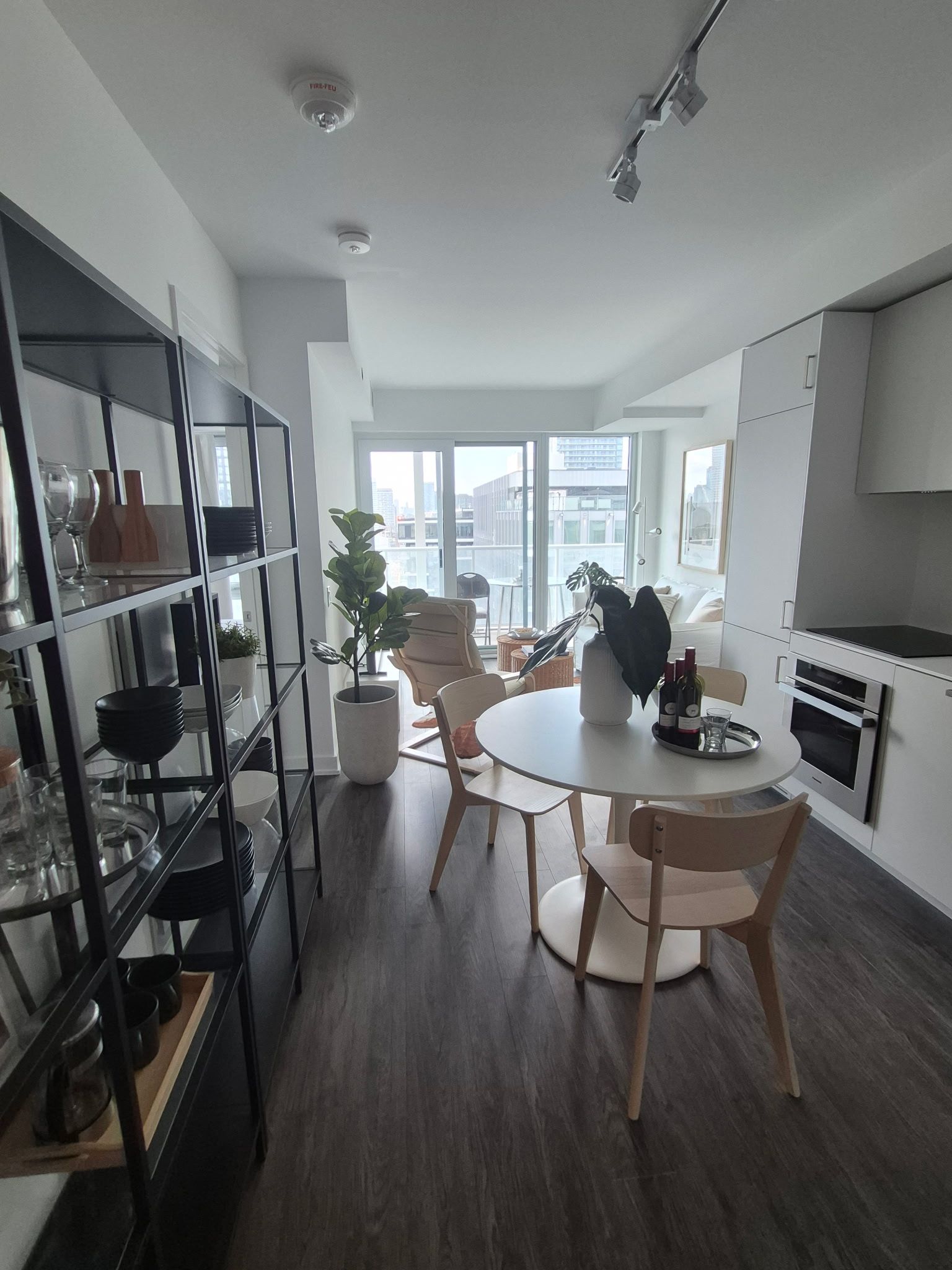 • Bright, open-concept living space with floor-to-ceiling windows and a balcony.
