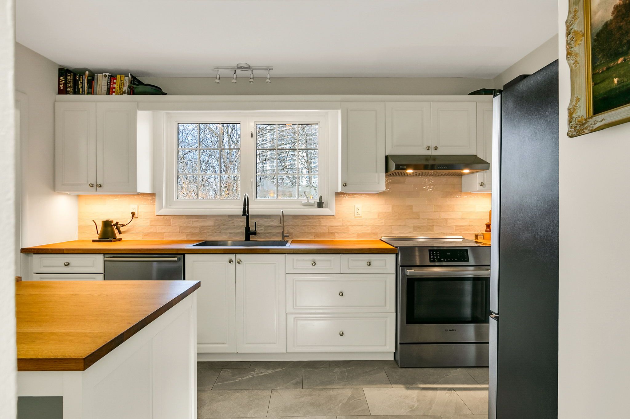 • Renovated kitchen with high-end appliances and updated bath with heated floors.