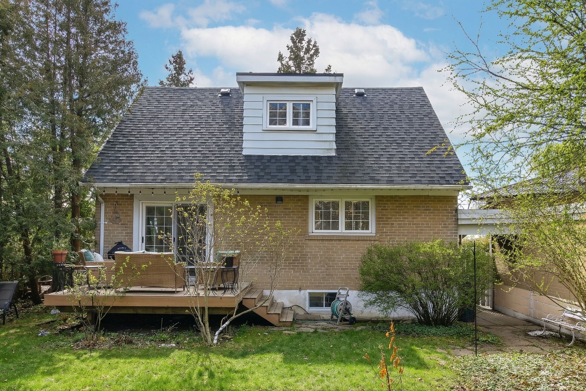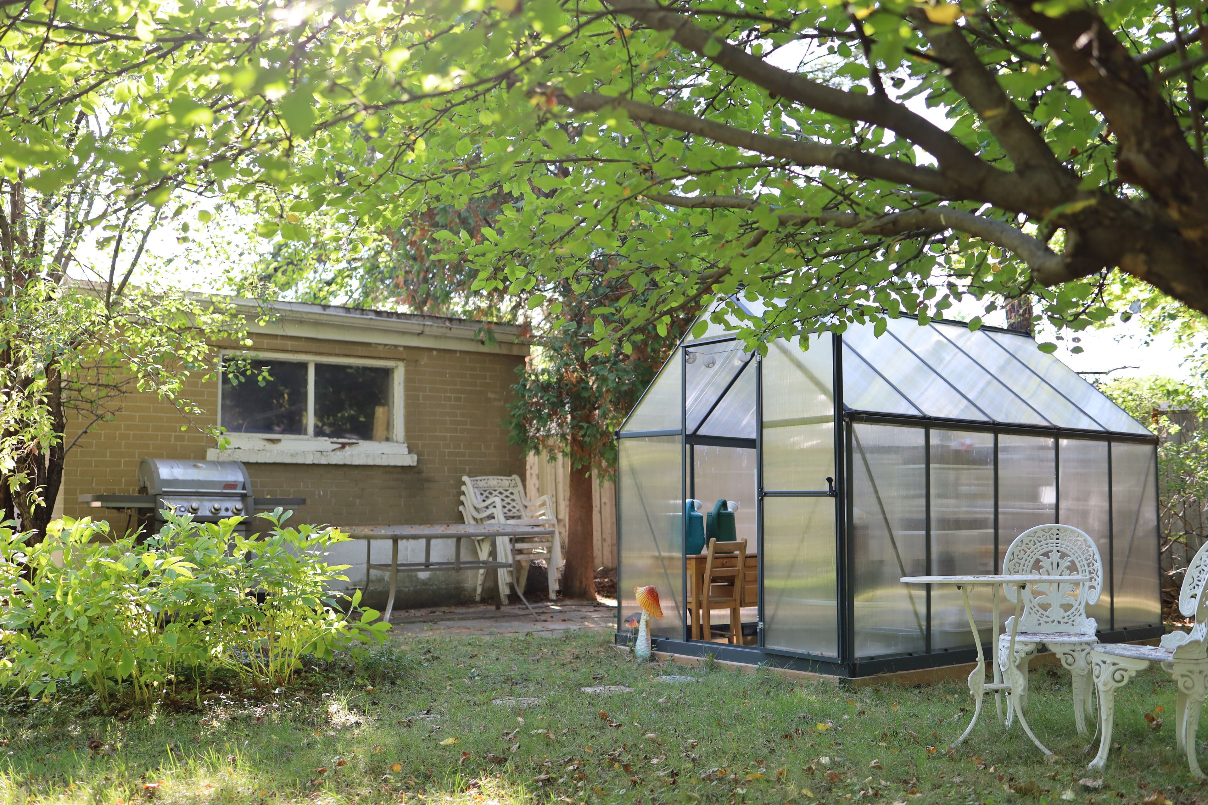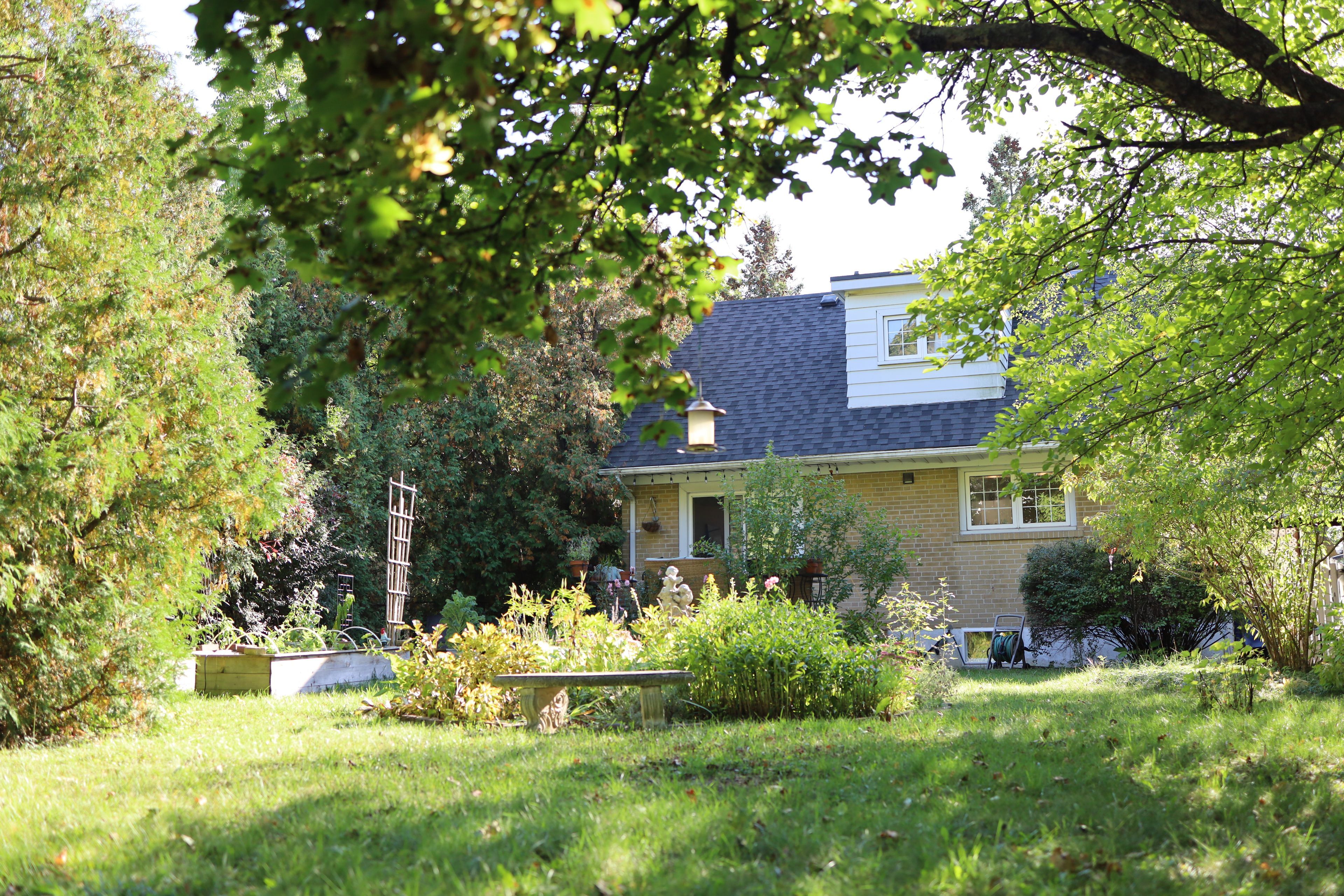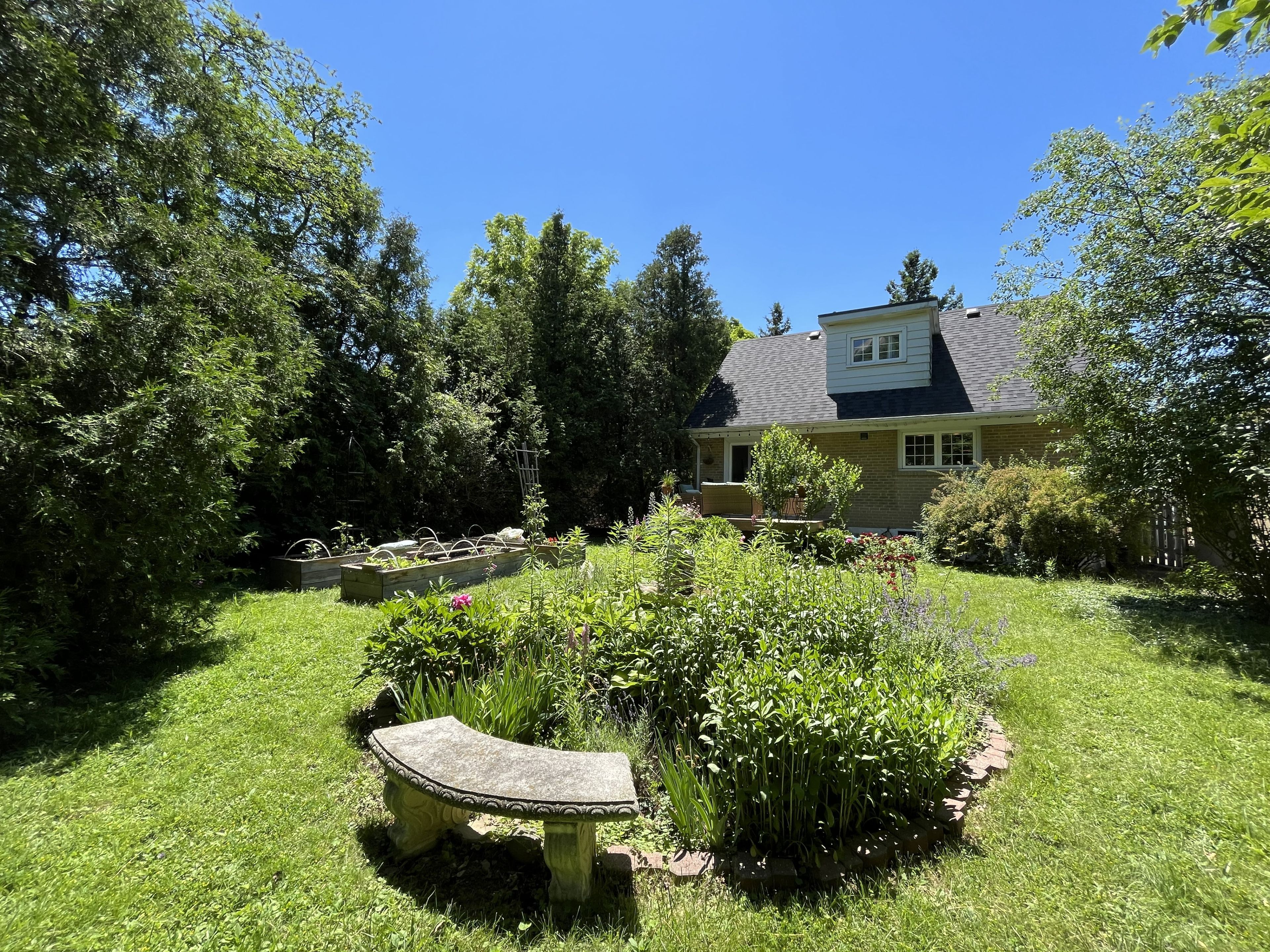 • Spacious backyard with gardening options, greenhouse, and mature perennial gardens.