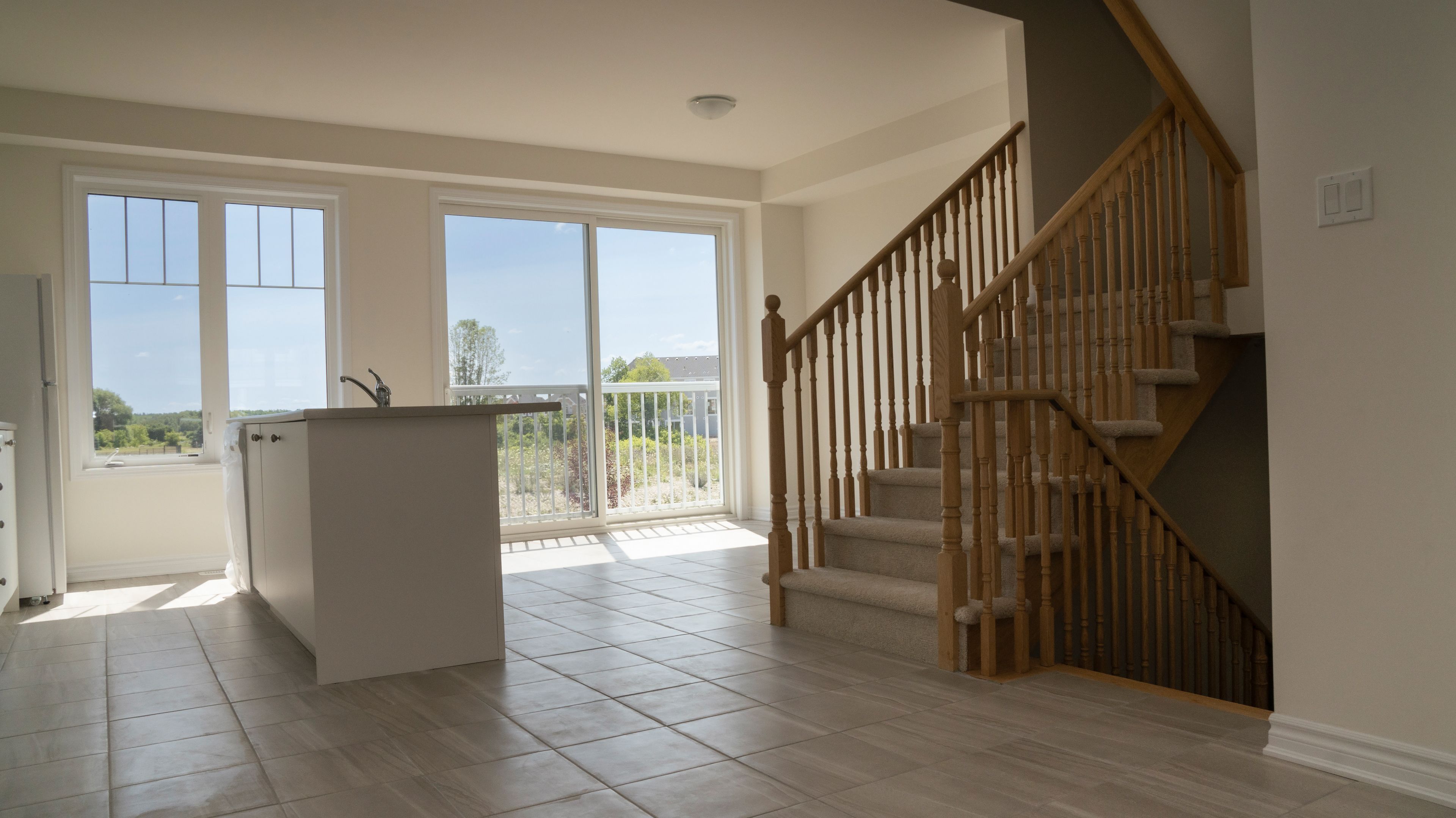 • Bright open-concept second floor with 9-foot ceilings and expansive windows.